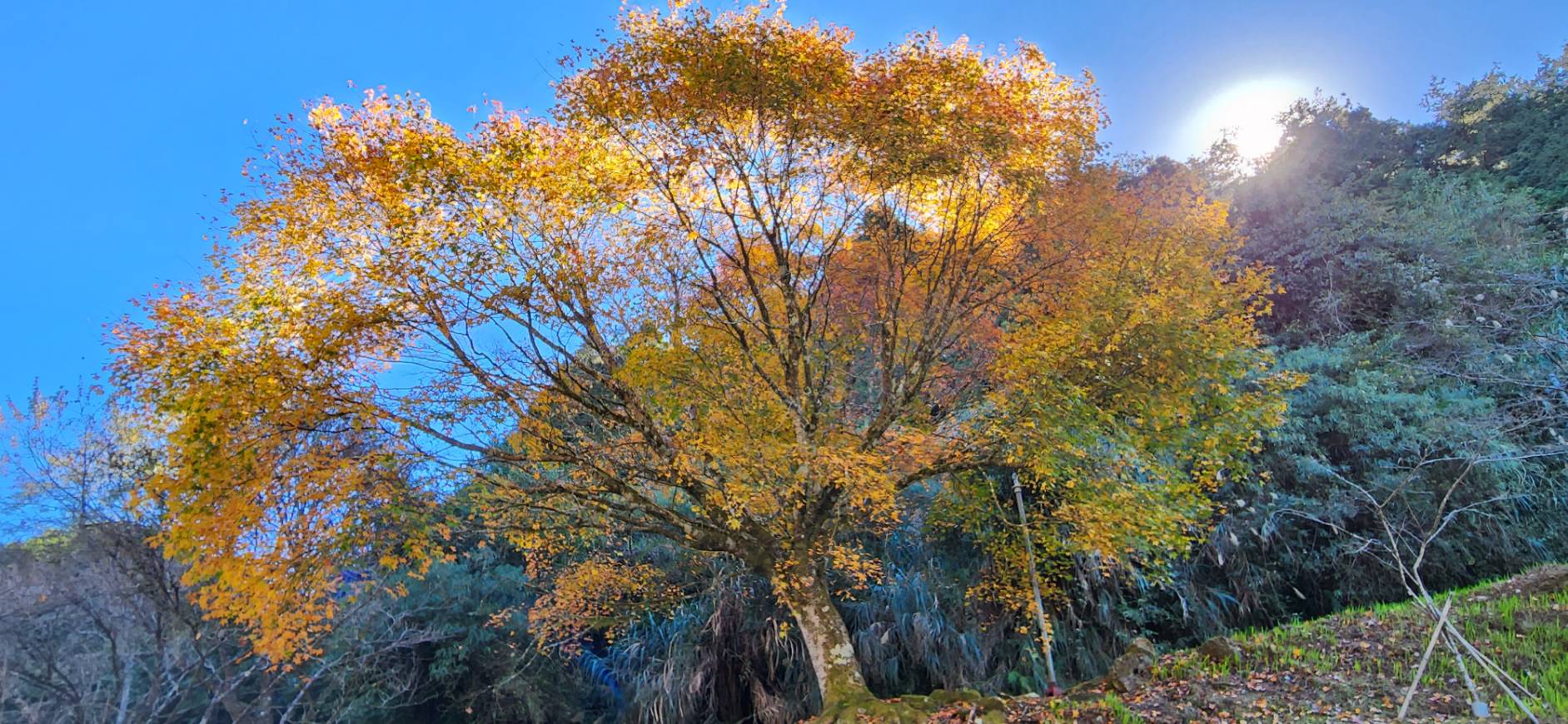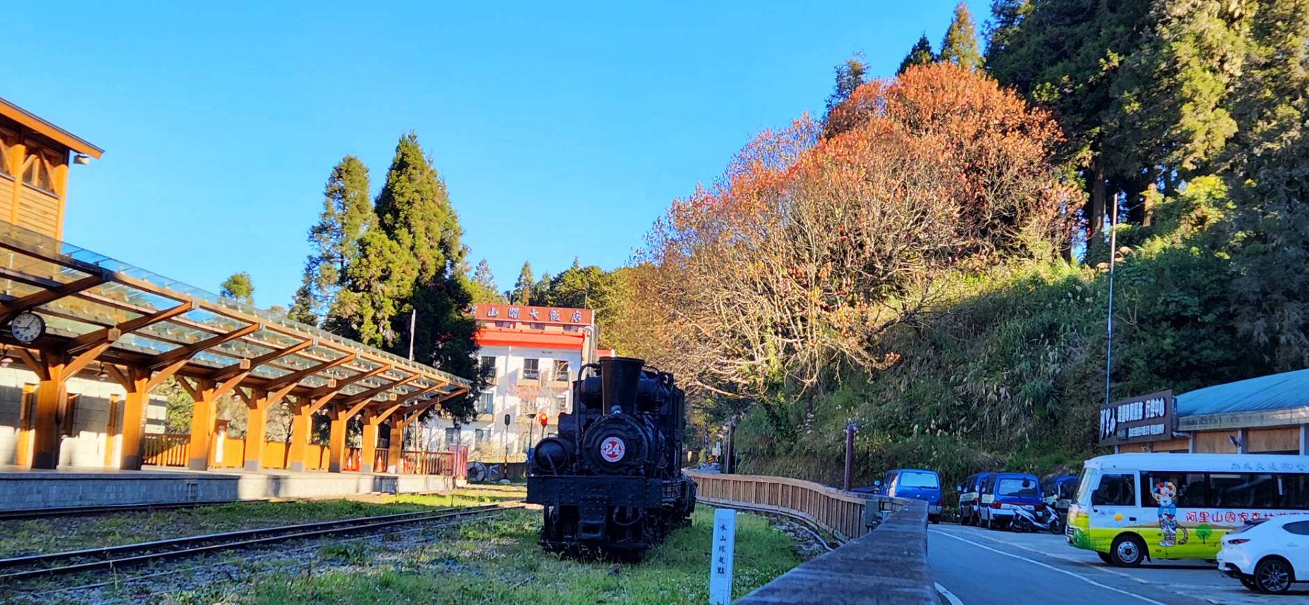 入冬以來,寒流次次發威,林務局嘉義林區管理處所轄阿里山國家森林遊樂區氣溫已降至5度以下,清晨甚至出現0度低溫。因氣候乾燥寒冷,晴朗無雲,藍天楓紅相映。遊樂區慈雲寺前不只有金黃銀杏、古鐘樓前青楓透著陽光映照出綠黃橙紅漸變色彩,為阿里山美拍秘境。目前遊樂區內楓紅已近八成,除慈雲寺外,推薦觀葉景點包括小笠原觀景平台(臺灣紅榨楓)楓紅已近八成,落葉鋪成精緻紅毯、大客車迴轉區前方斜坡(青楓)及祝山平台(臺灣紅榨楓、青楓)均轉黃紅,為遊樂區妝點歡慶金色耶誕節。