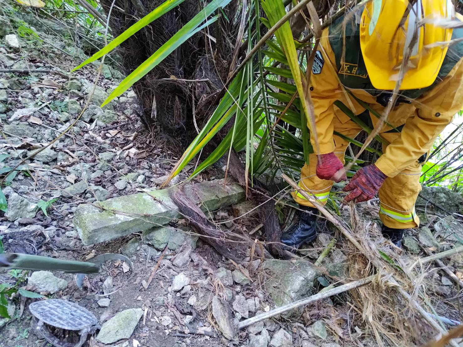 林務局嘉義林區管理處觸口工作站昨(23)日於大埔事業區第158林班辦理森林火災防火演練,森林護管員於演練期間發現一隻山羌受困山豬吊陷阱,經同仁協力解救,山羌順利救援成功野放。