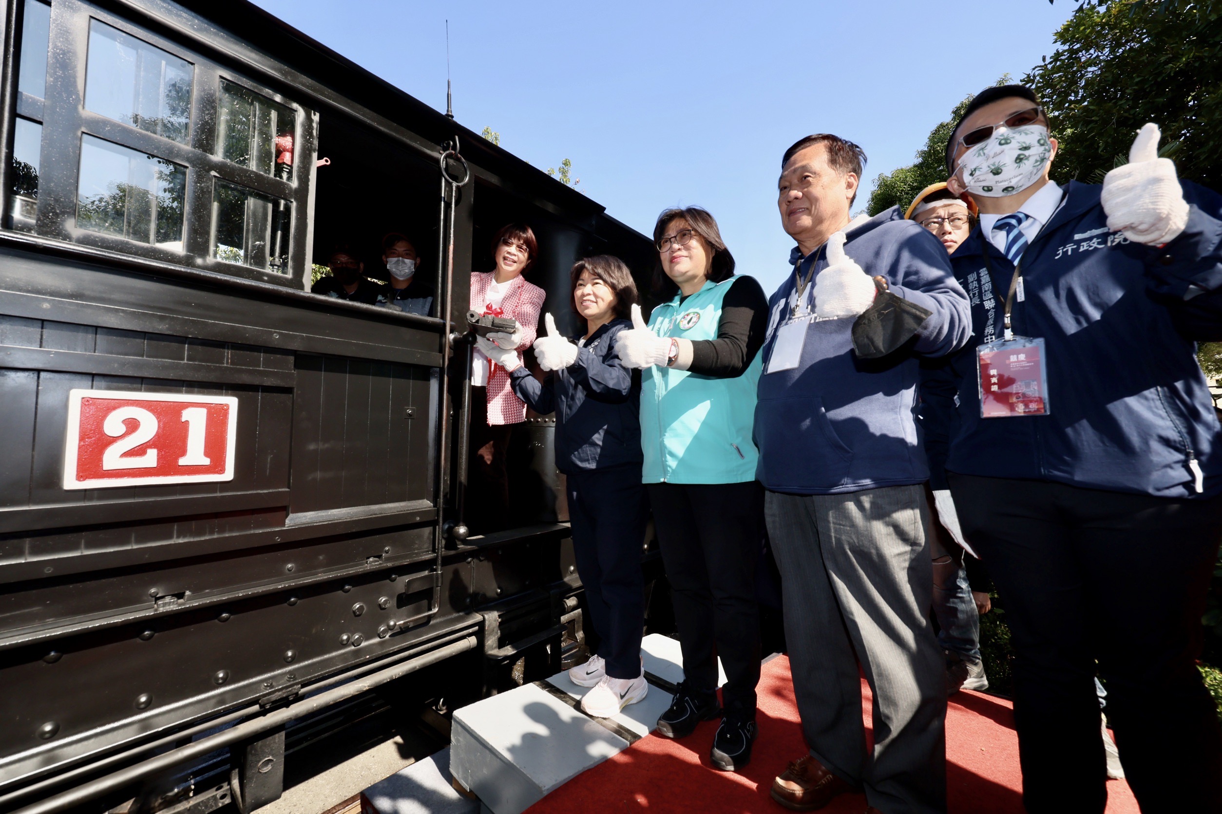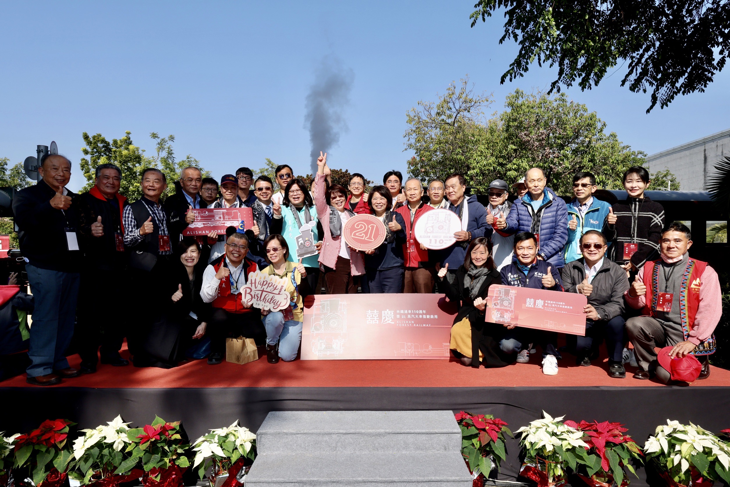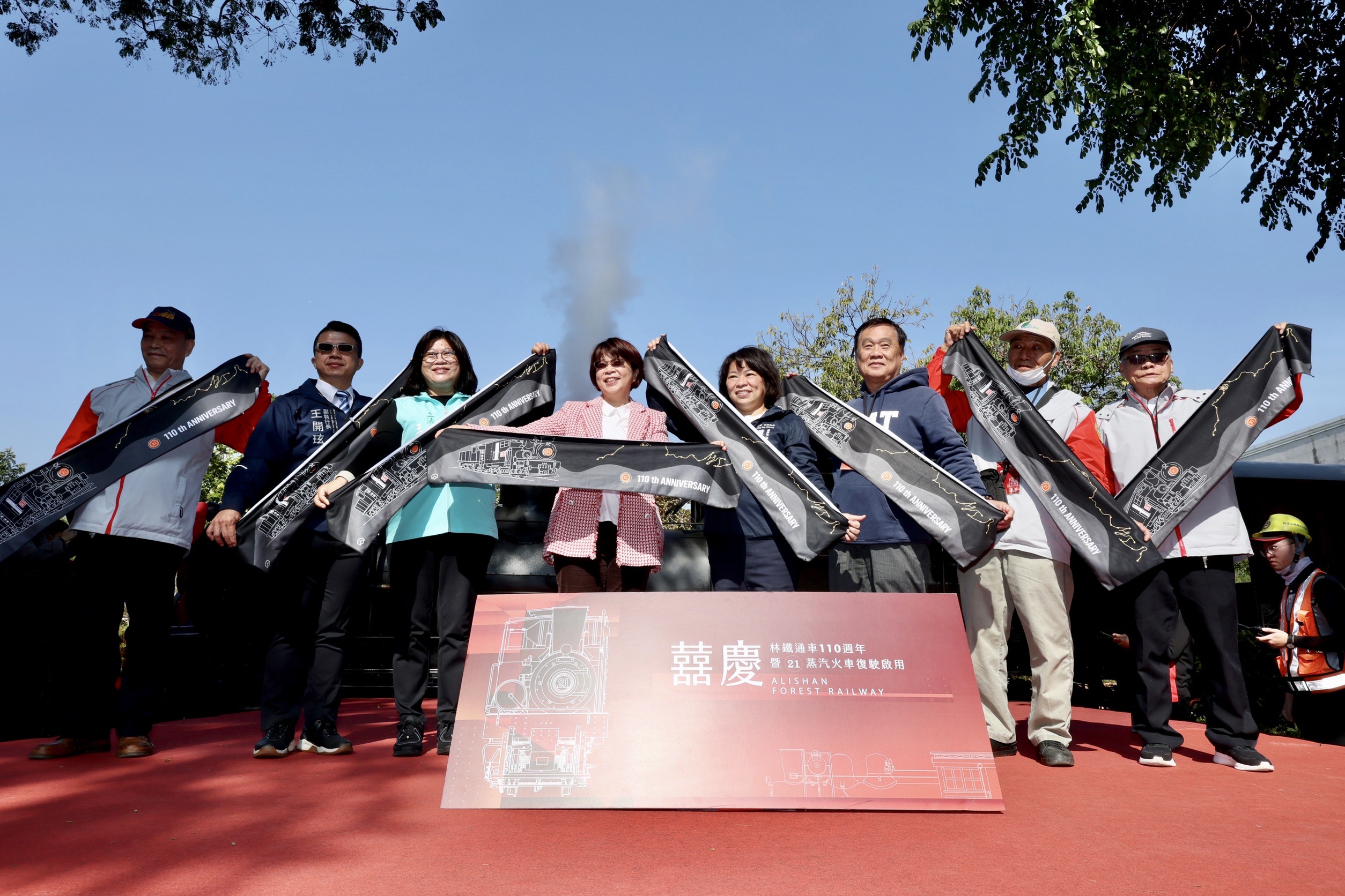 林務局阿里山林業鐵路及文化資產管理處(林鐵及文資處)於今(24)日辦理阿里山鐵路通車110週年慶祝活動,「Shay21蒸機」同時復駛啟用。由林鐵及文資處黃妙修處長、嘉義市黃敏惠市長、行政院雲嘉南區聯合服務中心副執行長王開玹、立委翁重鈞、立委王美惠、鄒族長老高德生、頭目汪啟德等,以及在地文史工作與鐵道保存團隊和關心林鐵的各界代表齊聚,圍繞著Shay21蒸機共襄盛舉,共享《囍慶》。 北興國中師生獻祝福 「嘉義興境」樂曲穿梭阿里山鐵路 來自林鐵沿線的嘉義市北興國中管樂社團以「嘉義興境」一曲為週年慶熱鬧暖場。由作曲家周宣宏老師創作的「嘉義興境」,是一首以火車的視角,從阿里山的森林中,載著木材沿著林業鐵路一路向西,穿過神木、奮起湖、北門等站而到達嘉義。在老師精心安排下,透過管樂結合戲劇、合唱、舞蹈的表現,串連並搭載起自然意象、族群文化與歷史印記,今年6月份曾於嘉義市文化局音樂廳演出,感動與串起在地嘉義人許多共同的生活和回憶。為今日週年慶的開場演出,更向畢業學長姊發出召集令,集結50位在學及畢業生為阿里山林鐵獻上生日禮讚,透過樂曲引領現場嘉賓穿梭阿里山鐵路的風華過往。 蟄伏半世紀 Shay21號蒸機重返阿里山林鐵 1912年製造的Shay21號蒸汽火車,是阿里山林鐵第一輛28噸蒸汽火車,運送木材64載,1976年退役後移送嘉義公園展示43年,是嘉義市民及訪客的共同回憶。2019年在各界努力下,Shay21號蒸機重回阿里山林鐵,為讓百年Shay21號蒸機動態保存,本次整修有許多創新及特色:維持燃煤動力系統;使用符合環保法規的生質煤炭;鍋爐採用傳統工藝擴管技法,以保存重要文物樣貌;建立零組件資料庫;培養專業維修人才。 歷經18個月的修復工程,透過紀錄影片詳實紀錄林鐵人每一刻的堅持與努力,蛻變新生的Shay21號蒸機,每一次的生火、啟動、運行,每一道繁瑣的整備工作,在退休的陳河銘、詹德福、呂文聲、賴興貴等老師傅逐一指導與示範下,帶領新手司機員熟稔每個細節的大知識。隨著螢幕整備工作的進行,Shay21號蒸機擺好姿態,以最自信的樣貌,緩緩的從車庫駛向活動會場,來自各界的賓客與鐵道好友歡呼連連、快門聲不斷,記憶中熟悉的味道、熟悉的聲音,真實的感動著現場的每一個人。 精彩110 囍慶同歡共創國民記憶 Shay21號蒸機見證了阿里山林業與鐵路的發展,也是嘉義市市民重要的生活記憶。為祝賀林鐵通車110週年暨Shay21號復駛啟用,林鐵及文資處處長黃妙修表示特別規劃木頭人市集、體驗課程等多元活動邀請民眾參與,其中最吸睛的莫過於Shay21號蒸機現身繞行,一早在「車庫線柏油路」、「車庫園區旅客服務中心」以及「忠孝路平交道」路段,鐵粉已早早卡位搶拍Shay21號蒸機運轉的風采!此外,活動會場與嘉義製材所木頭人市集設置有林鐵聯名、授權商品,林鐵小舖則販售Shay21蒸機職人毛巾、Shay 21號碼牌徽章主題商品,吸引相當多的民眾搶購。最後,為感謝民眾的熱情參與,現場特別準備110個杯子蛋糕,凡身分證號碼有1、2兩位數字可兌換杯子蛋糕1個,分享週年慶與Shay21號蒸機復駛的喜悅。 【註】「Shay21蒸機職人毛巾」、「Shay21號碼牌徽章」主題商品,亦可至林務局「森林好好玩」網路平台(https://forestpass.welcometw.com/banner/2022shay21)、林鐵及文資處FB購買(https://www.facebook.com/AlishanForestRailway.Taiwan)。