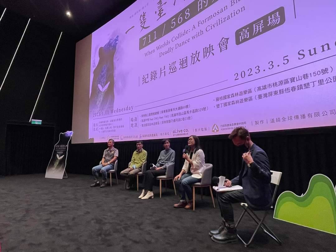 林務局屏東林區管理處與高雄市農業局2月11日於高雄市內惟藝術中心共同舉辦「一隻臺灣黑熊之死-711/568的人間記事」紀錄片巡迴放映會,現場來了將近百名觀眾,包含許多關心生態保育的民眾蒞臨觀賞。放映會後特別邀請紀錄片導演顏妏如、野聲環境生態顧問公司姜博仁博士、獸醫師詹芳澤、創作歌手賴儀婷(小賴)、高雄市農業局副局長鄭清福及屏東林管處處長楊瑞芬一同與民眾分享紀錄片拍攝過程、黑熊保育及救傷歷程等議題,而現場觀眾也踴躍分享觀後心得。 來自大雪山的大公熊568/711,歷經兩次誤中陷阱重傷、兩次野放後最終不幸中彈遭掩埋於南投武界山區。過程中各保育人員的心聲,山村居民看待事件的視角,帶出人與野生動物、人與熊關係的省思。林務局將救傷、野放完整過程製作成紀錄片,「回眸」牠在人間的點點滴滴,期望透過本片幫助社會大眾共同學習如何與野生動物共存。 映後座談會中,高雄市農業局副局長鄭清福提到,若民眾在山林遇到黑熊應遵守3不2要的原則(不干擾、不餵食、不拍照打卡;要即時通報、保持距離)。屏東林管處處長楊瑞芬則表示,林務局自110年起大力推動「瀕危物種及重要棲地生態服務給付推動計畫」,將石虎、水鴙、水獺、草鴞等納入給付保護,並在111年新增了臺灣黑熊,期望與在地的居民共同守護珍貴稀有的野生動物。 本場次映後座談中,民眾很好奇目前全台灣黑熊的數量究竟有多少?以及如何正確的估算;另外,也有民眾提到這部紀錄片很有教育意義,未來是否也能到學校內推廣。這次更有小小觀眾提問,黑熊在收容中心被餵養了地瓜香蕉,回到大自然中究竟是吃哪些東西呢?藉由紀錄片的播映,讓生活在都市裡的民眾們,對於臺灣黑熊及所生活的山林環境有了更進一步的理解。 隨著臺灣生態保育工作日漸有成,人類與野生動物生活的環境也更加密切的接觸。屏東林區管理處特別提醒,如有發現遭誤捕或受傷的臺灣黑熊等瀕危保育類野生動物們,請撥打0800-000-930(您您您-救山林)或1999,讓專業團隊前往協助救援。 目前2月17日屏東墾丁放映場,也將會有精彩的映後交流,因名額有限,歡迎有興趣的民眾把握機會踴躍報名。本片詳細的推廣資訊,請持續關注林務局森活情報站及屏林區管理處臉書粉絲專頁。 放映會資訊 2/14高雄內惟埸 18:30 高雄內惟Reeo TWO 2廳 (線上額滿,可現場候補) 2/17屏東墾丁場 10:30-11:30電影放映 11:30-12:30座談會 地點:墾丁國家森林遊樂區遊客中心2樓