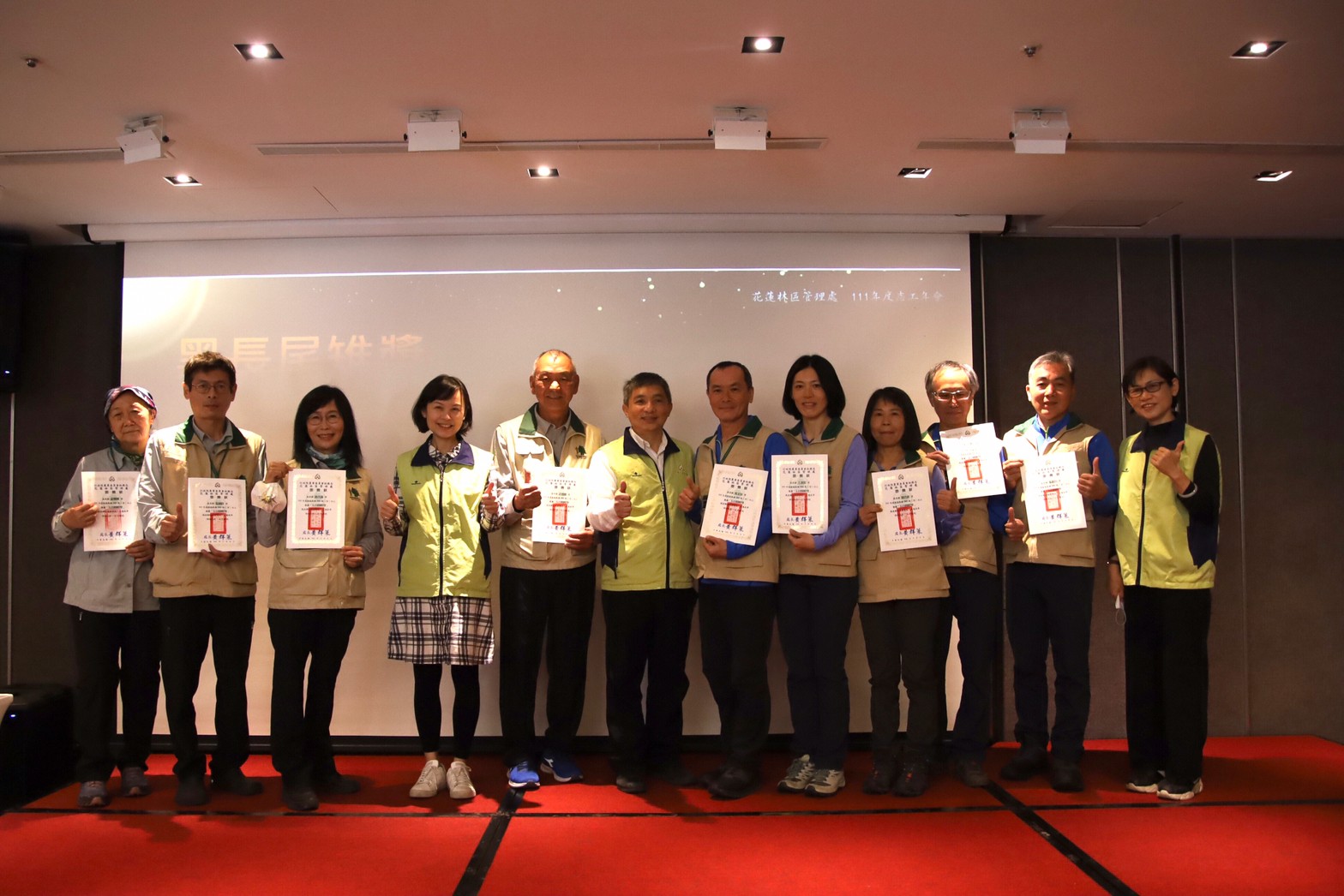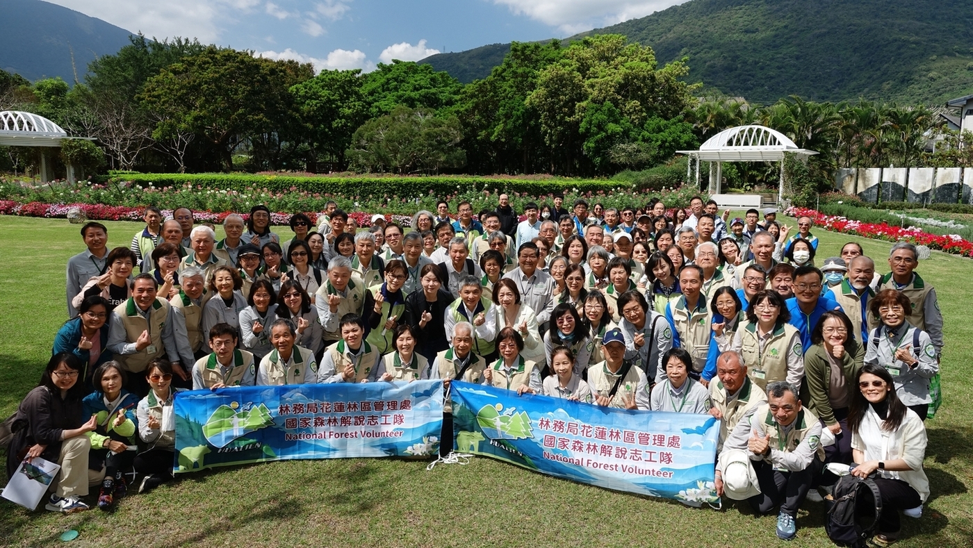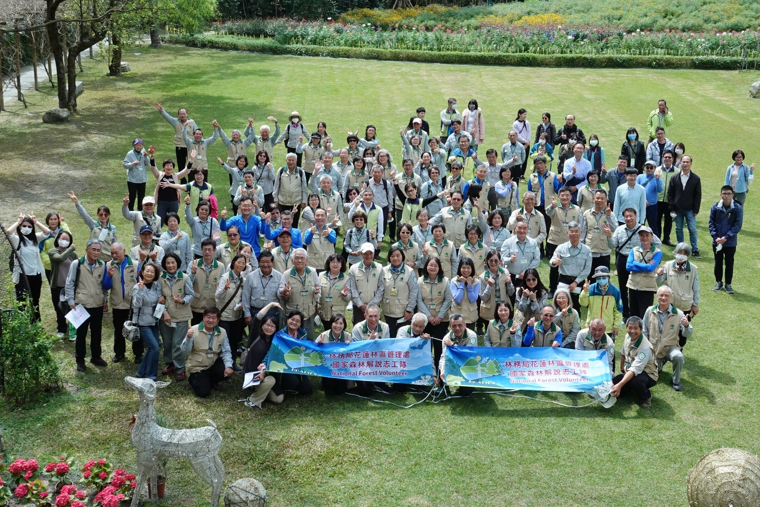 花蓮林區管理處6日舉辦一年一度的志工年會,由處長黃群策率課室主管公開表揚81位表現優良的志工,同時授證31位新進志工,肯定志工無私的貢獻,為國家森林的付出,包括解說志工在各森林育樂場域解說服務,監測志工協助森林巡護、濫墾及盜伐等不法林政案件之通報工作等。 林管處處長黃群策表示,每一位志工都是國家森林不可或缺的夥伴,每一位志工的貢獻,都是一份灌溉國家森林成長的重要力量。恭喜今年獲得傑出志工、國家森林之友獎章、玉山圓柏獎章、黑長尾雉獎章、長鬃山羊獎章、寬尾鳳蝶獎章等共81位志工;此外,會中特別感謝幾位榮譽退隊的志工,雖然離開國家森林服務的崗位,但永遠是花蓮處國家森林志工大家庭的一份子。 會後邀請行政院農業委員會主任秘書范美玲一起合影,紀念這份榮譽。藉由本次盛會,林管處鼓勵大眾加入志願服務的行列,一起攜手,為國家森林、地球生態環境努力!