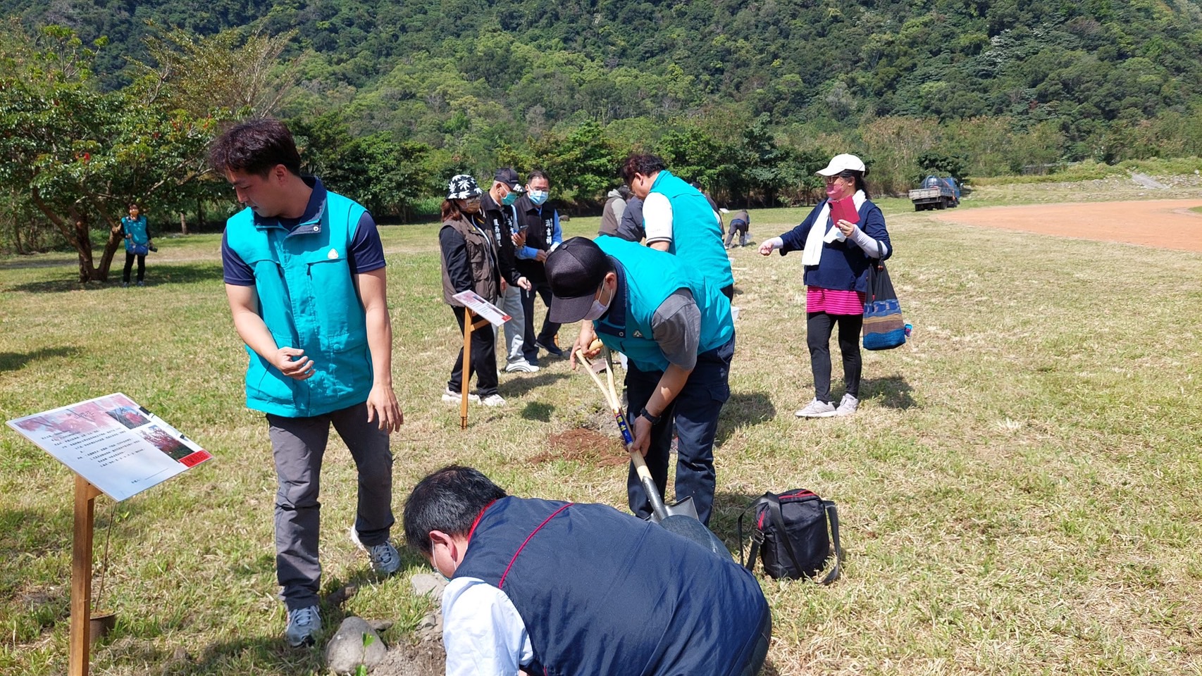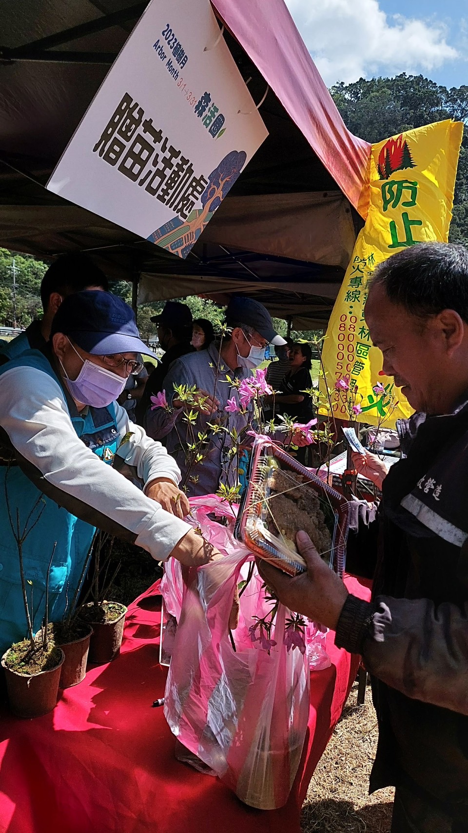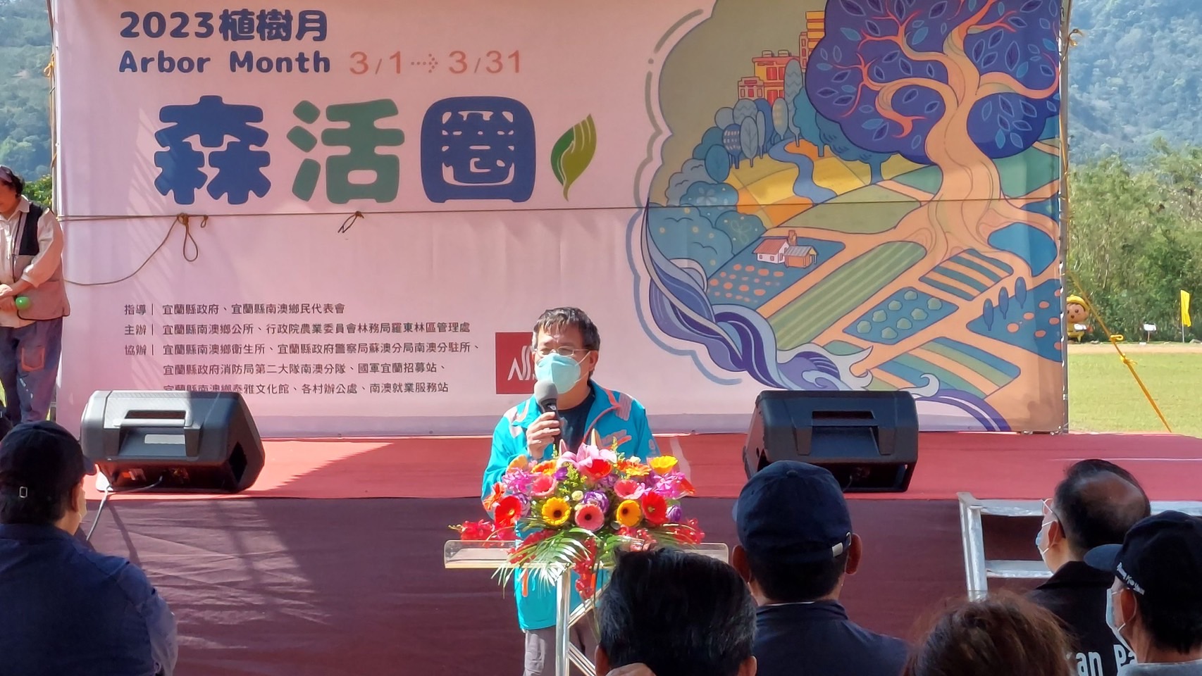 林務局羅東林區管理處與南澳鄉公所於112年3月10日(星期五)上午9:30在南澳碧候村運動埸聯合舉辦「112年度植樹節-森活圈」贈苗活動,羅東處鄧副處長江山帶領林管處及南澳工作站同仁與南澳鄉長李勝雄帶領各村長、南澳鄉民代表會副主席林德富帶領各代表、在地鄉親共同參與,活動在迎賓舞中熱鬧登場並由李鄉長勝雄等一同栽植山櫻花等樹苗,讓森林保育向淺山平原地區延展,構築國土綠色廊道,提供物種多樣生態棲所。除可美化居家環境與庭園外,還可營造美好舒適的森活圈。 今日植樹活動由林管處偶像團體-肖楠哥、櫻花妹及打火勇哥帶領大家認識樹種並解說種樹技巧,讓南澳鄉親種下樹苗共同營造城市森活美學,為愛護地球、植樹造林盡一份力量,羅東處並提供楓香、杜英、桃金孃、烏來杜鵑等台灣原生樹苗共300株,為促進南澳發展觀憑112年度3張發票兌換1株苗木,發票將全數捐予宜蘭縣社會福利聯合勸募基金會。