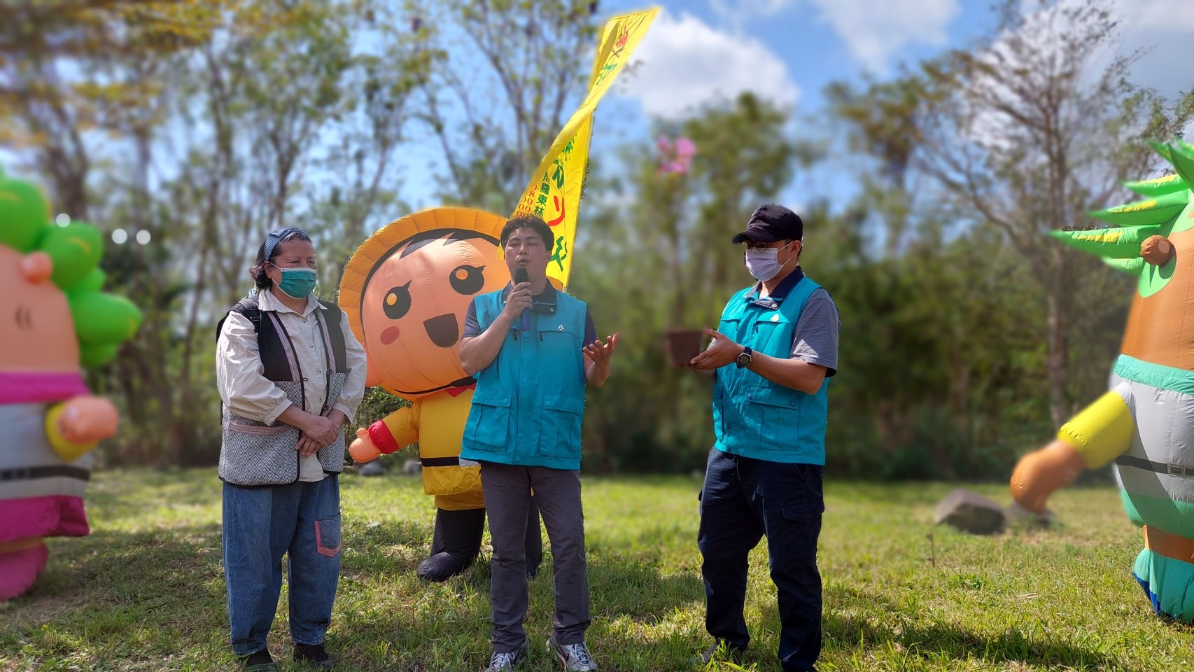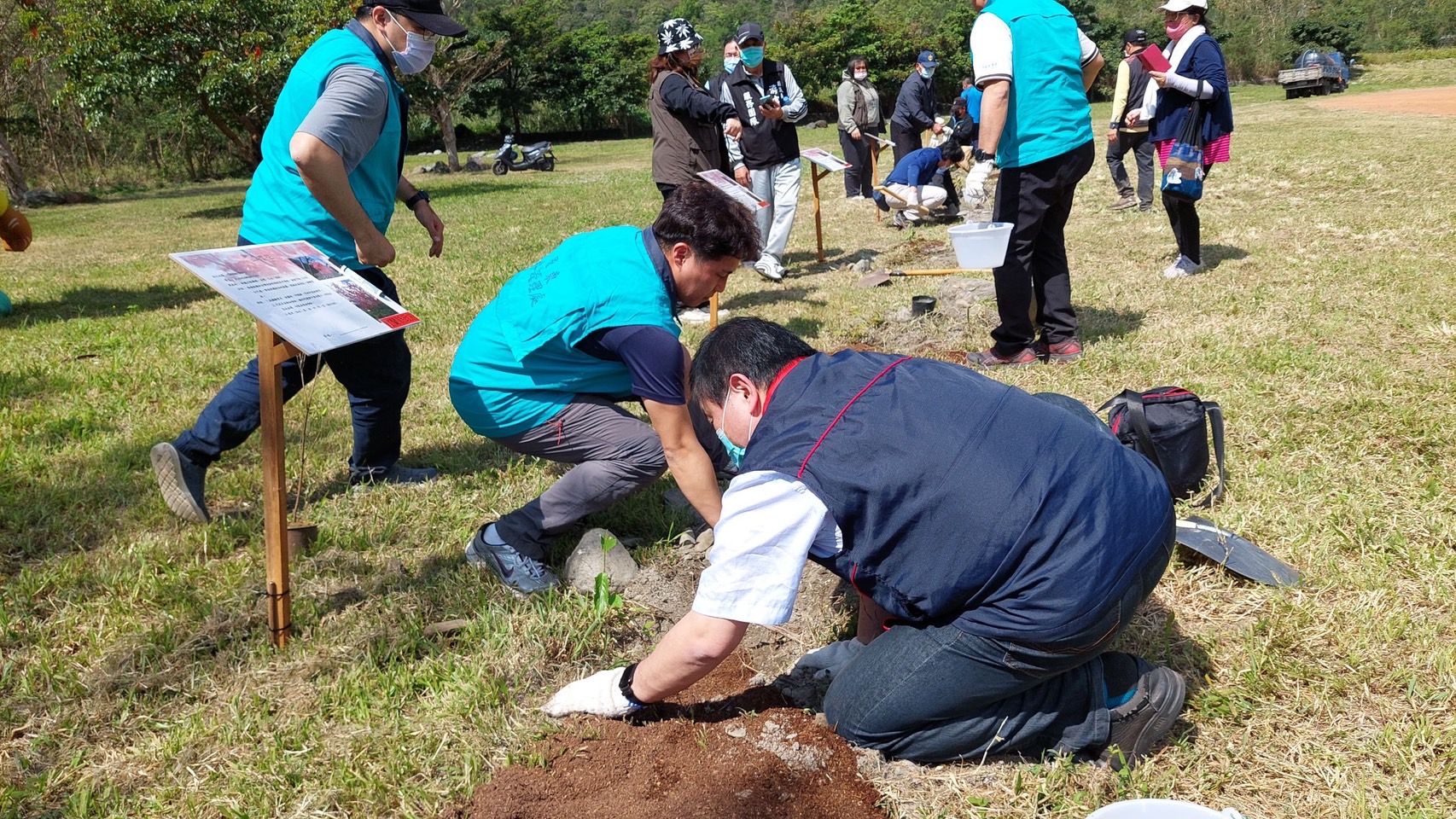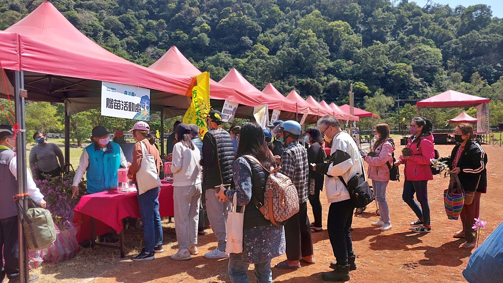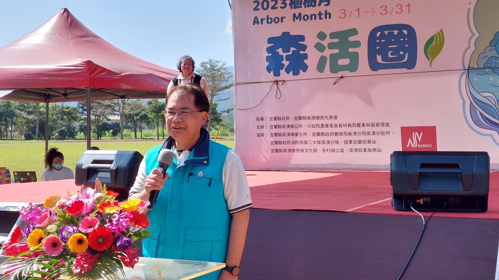 林務局羅東林區管理處與南澳鄉公所於112年3月10日(星期五)上午9:30在南澳碧候村運動埸聯合舉辦「112年度植樹節-森活圈」贈苗活動,羅東處鄧副處長江山帶領林管處及南澳工作站同仁與南澳鄉長李勝雄帶領各村長、南澳鄉民代表會副主席林德富帶領各代表、在地鄉親共同參與,活動在迎賓舞中熱鬧登場並由李鄉長勝雄等一同栽植山櫻花等樹苗,讓森林保育向淺山平原地區延展,構築國土綠色廊道,提供物種多樣生態棲所。除可美化居家環境與庭園外,還可營造美好舒適的森活圈。 今日植樹活動由林管處偶像團體-肖楠哥、櫻花妹及打火勇哥帶領大家認識樹種並解說種樹技巧,讓南澳鄉親種下樹苗共同營造城市森活美學,為愛護地球、植樹造林盡一份力量,羅東處並提供楓香、杜英、桃金孃、烏來杜鵑等台灣原生樹苗共300株,為促進南澳發展觀憑112年度3張發票兌換1株苗木,發票將全數捐予宜蘭縣社會福利聯合勸募基金會。