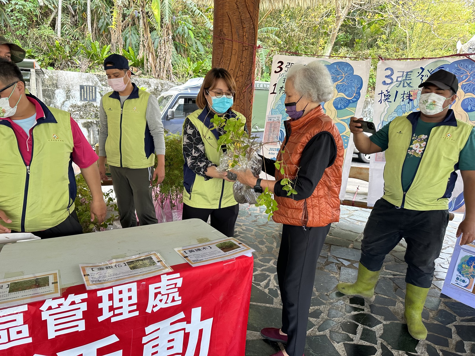 花蓮林區管理處玉里工作站自3月15日至17日一連在富里馥茶堂、玉里工作站、瑞穗生態教館及豐濱鄉港口活動中心廣場舉辦4場贈苗活動,民眾參與非常踴躍,規畫兌領的8種原生種樹苗共2,000株,均在短短2個小時內均兌換完畢。 林管處玉里工作站主任許芳嘉表示,為落實林務局推廣種植原生樹種政策、保護台灣環境完整發展,今年植樹月4場活動可兌領苗種有毛柿、鐵冬青、黃連木、珊瑚樹、田代氏石斑木、金銀花、硃砂根、山櫻花等8種樹種,花蓮南區民眾持今年1-3月發票3張即可兌換1株苗木,每人限兌換2株。今年贈送苗木包裝使用纖維素製成,可分解且對環境無害的透明玻璃紙來包裝苗木,民眾領回苗木後可直接放入花盆或花器中,灌水濕潤土壤即可,為環保盡心力並響應減塑政策。 贈苗現場氣氛熱絡,有遠從池上特地前來參加的民眾及社區部落文健站老人共襄盛舉,人潮較往年熱絡,示範植樹活動更別具意義。 林管處17場贈苗活動結束後,所兌發票將全數做愛心捐贈花蓮縣境內社福機構,為疫後募款及發票亦顯不易的社福團體,再盡一份愛心。