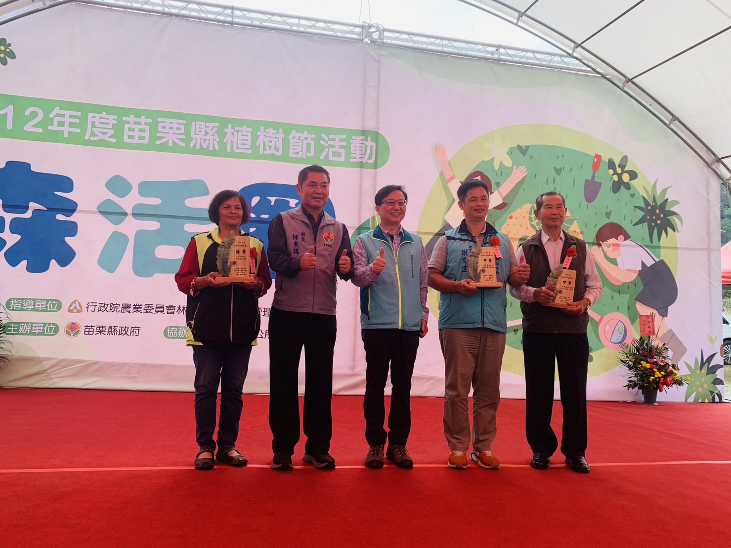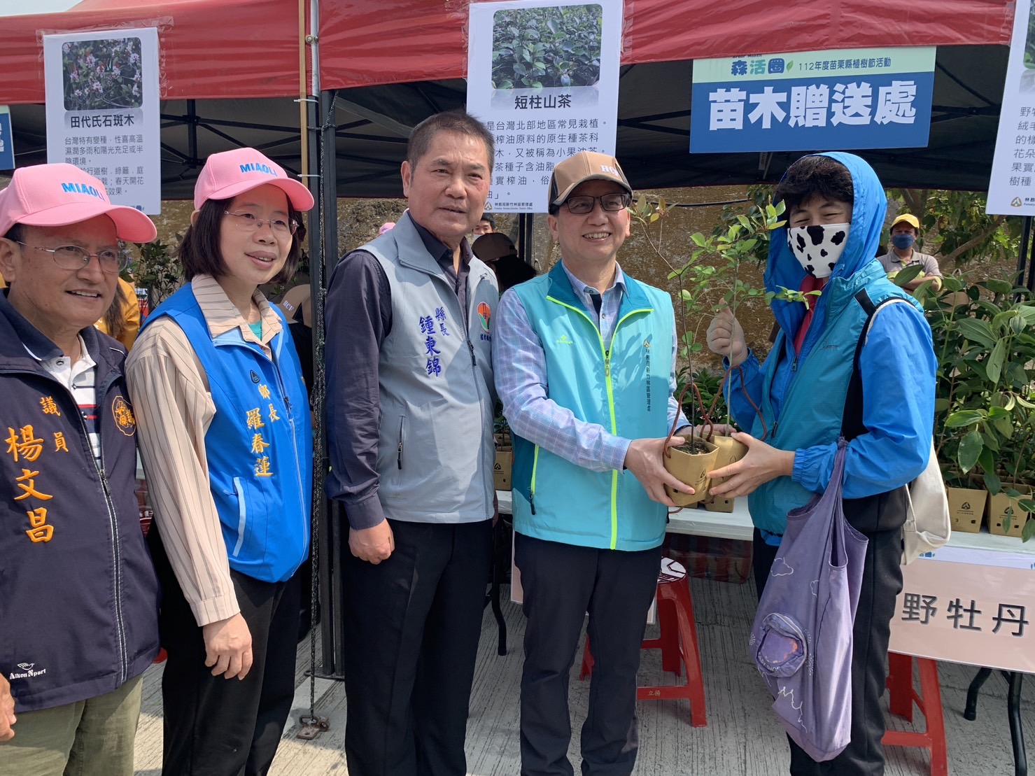林務局新竹林區管理處和苗栗縣政府25日於苗栗縣南庄鄉南庄公有停車場共同辦理「森活圈」植樹活動,由苗栗縣鍾東錦縣長及新竹林管處劉忠憲副處長親自種下具在地特色植物「南庄橙」,同時邀請南庄賽夏部落族人參與,象徵共同推動原生稀有植物復育、傳承原住民文化及發展地方產業。另新竹林區管理處現場準備了田代氏石斑木、野牡丹、短柱山茶及流蘇等,合計2,000株原生苗木免費贈送予民眾帶回家在家園綠地栽植,共同美化環境。 新竹林區管理處處長夏榮生表示今年植樹月標語為「森活圈」,宣傳意涵為「國土生態保育綠色網絡、移除外來種」,也呼應COP15生物多樣性公約締約方大會協議,期能透過種植多樣的原生樹種,串聯綠色網絡建立棲地、守護台灣生物多樣性。 今日活動,由鍾縣長頒發苗栗縣綠化有功的團體與個人,新竹林區管理處也頒發參與林務局111年度「社區林業」計畫成果優異的苗栗地區績優社區,獲獎社區為「台灣原住民生態農業協會」、「苗栗縣頭屋鄉明德社區發展協會」以及「苗栗縣竹南鎮海口社區發展協會」,台灣原住民生態農業協會從一開始的學習養蜂,到培植段木香菇建立起林下經濟產品─「嘎妞」香菇,成功振興當地蓬萊社區的地方創生產業;明德社區發展協會成功復育野蜂群重回自然後,開始蜜源植物之管理紀錄,讓蜂群有源源不絕的食物來源,111年開始研發各種蜂產品,如蜂蜜、花粉、蜂王乳等頗具特色之在地產品;海口社區發展協會致力於維護苗栗縣竹南鎮的1311號保安林,同時也發展資源再生利用的藝術及文創產品創作,並長期協助鄰近的塭內社區執行紫斑蝶復育計畫,促使保安林能有更多元發展的可能性。獲獎社區透過盤點及應用在地的自然資源,並投注心力進行環境營造,與新竹林管處一同發揚環境永續發展的精神。 此外,本次活動現場由新竹林區管理處針對保林愛林、無痕山林、自然保育、生態友善及政風宣導等林業業務宣導攤位等相關林業業務設置宣導攤位,以小遊戲、有獎徵答等淺顯易懂的方式介紹讓民眾了解林業的多元面向,傳達環境保護及永續林業經營的理念。