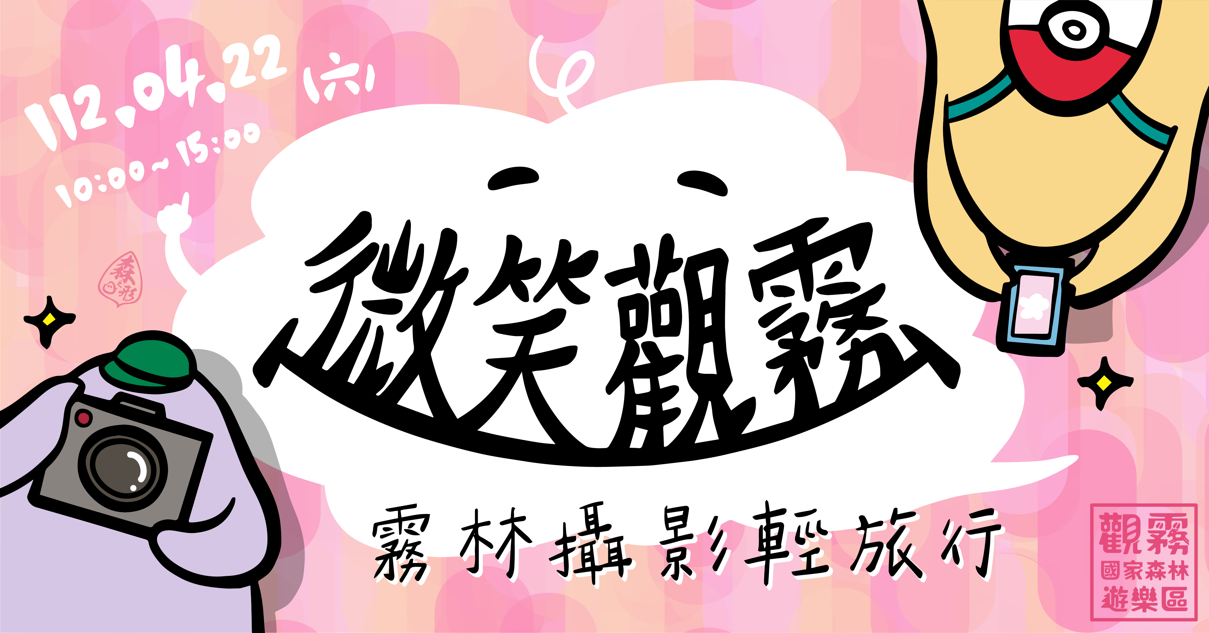 觀霧國家森林遊樂區四季分明,隨著雲氣、光影、山巒等大地風景的推移,季節限定的動植物也輪番登場,在雪白的霧社櫻花季結束後,即將迎來園區菫菜家族、細葉杜鵑、鴛鴦湖龍膽、水晶蘭等綻放的時刻! 林務局新竹林區管理處特別在世界地球日(4月22日)上午10點至下午3點,於觀霧國家森林遊樂區舉辦去年大受遊客好評的「微笑觀霧-霧林攝影輕旅行」主題活動,邀請民眾透過「攝影」發現觀霧的美好,探索自己心中最美的觀霧角落。 活動邀請森之形自然教育團隊共同創辦人—陳柏璋擔任講師,引導參與者在步道巡禮的過程中以鏡頭寫下屬於自己的觀霧日記。活動將以1小時的室內講座開場,透過故事導讀,建構參與者對觀霧森林的想像,同時介紹生態攝影的基本概念和技巧,接著走訪區內步道,欣賞優美的林相及壯麗的風景,深入認識觀霧的生態地景特色,並留下富有生態意涵的影像紀錄。 新竹林管處說明,「微笑觀霧-霧林攝影輕旅行」主題活動將於112年4月10日(一)中午 12 點起開放網路報名,招收12歲以上的民眾,名額有限,及早購票可享早鳥八折優惠,歡迎有興趣的民眾把握機會踴躍報名參加! 「微笑觀霧-霧林攝影輕旅行」活動內容、收費方式及報名連結為https://www.accupass.com/go/2023-01-Guanwu,活動諮詢可私訊觀霧國家森林遊樂區臉書粉絲專頁,或於平日上午 9 點至下午 5 點電洽 0963511973 (森之形自然教育團隊)。 更多活動訊息可密切注意台灣山林悠遊網(https://recreation.forest.gov.tw/)及「觀霧國家森林遊樂區」臉書粉絲專頁(https://www.facebook.com/GuanwuNationalForest/)。