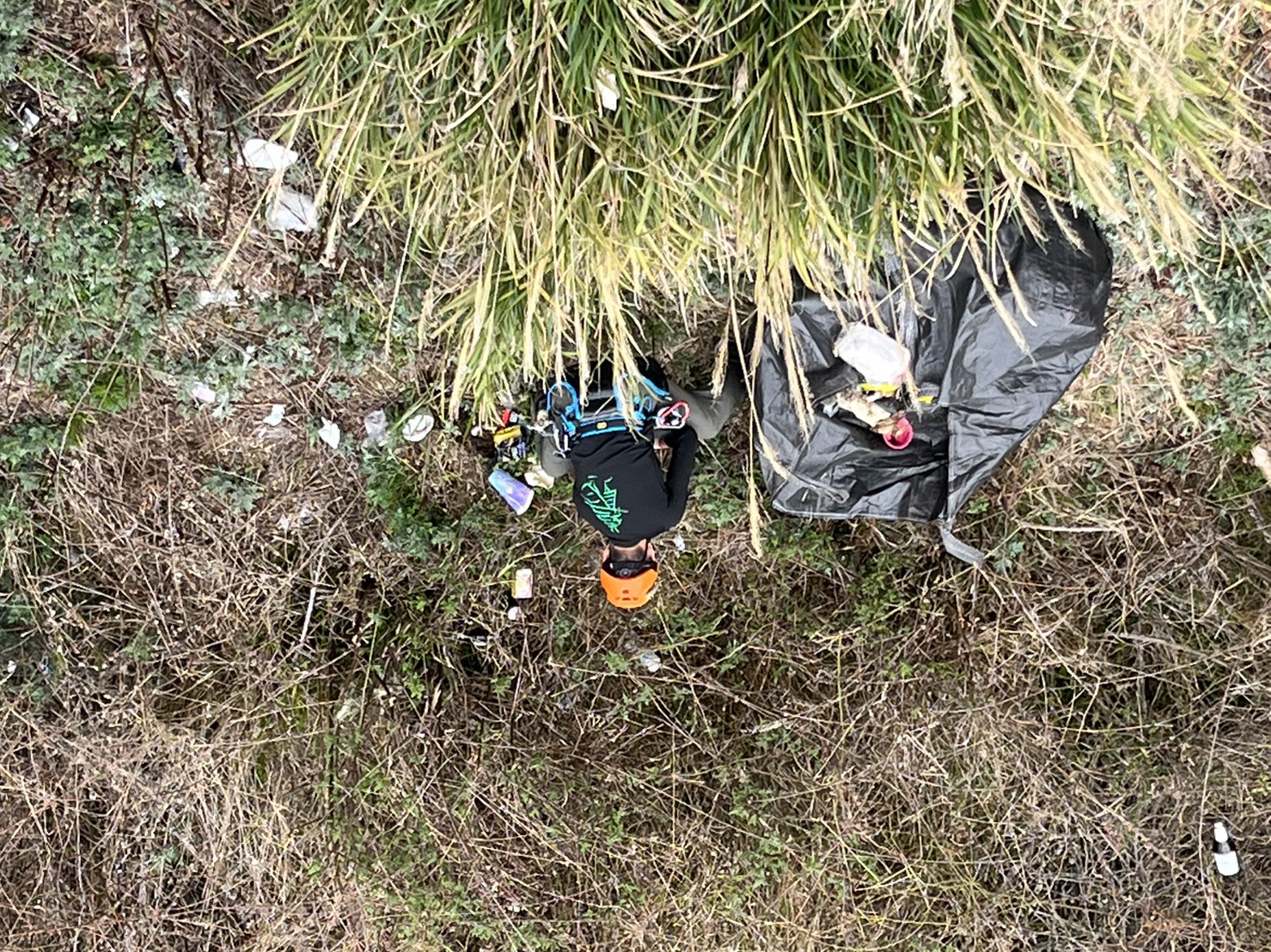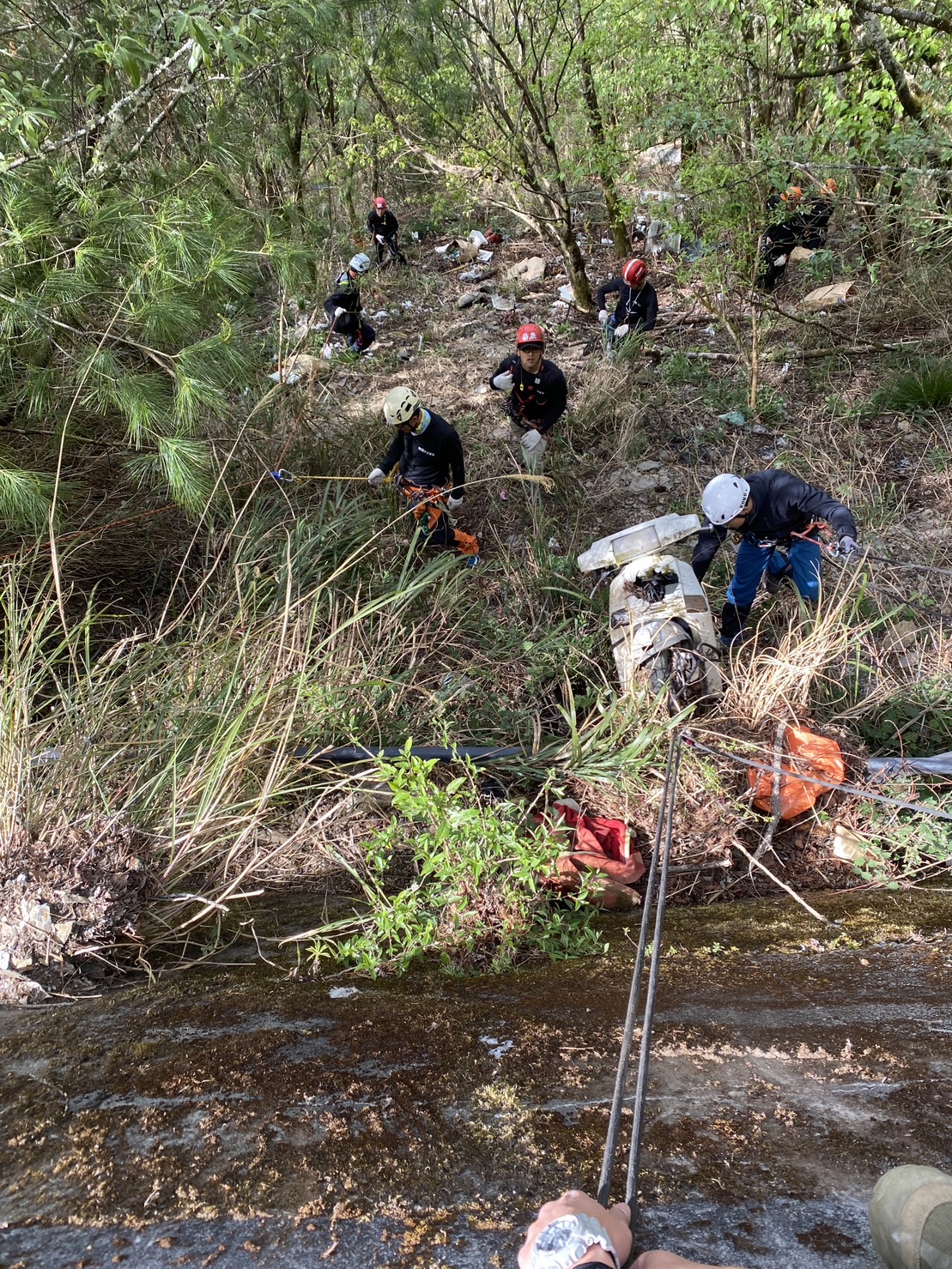 由戶外亦溯休閒運動社結合花蓮林區管理處、綠葉戶外企業社等公私部門,15、16日一同發起「大禹嶺淨山計畫」活動,邀請近20位身手俐落「蜘蛛人」-攀岩垂降好手,以繩索垂降至台14甲40.8K沿線公路邊坡下方及屏風山登山口清理廢棄物,徒手撿拾垃圾並加以分類,2天共計清理一般垃圾及廢棄物等多達4,000公斤,甚至包含報廢機車、洗衣機、金爐等,相當驚人。 活動發起人「戶外亦溯休閒運動社」社長賴瑞均表示,該社秉持愛護環境人人有責,積極配合政府向山、向海致敬及無痕山林政策,運用平日訓練技巧,以吊掛方式清理廢棄物,讓熱愛的攀岩技能不只是單純運動,還能以實際行動對環境貢獻一份心力。 林管處呼籲,民眾親近及使用大自然之餘,應更加重視無痕山林之重要性,共同維護大自然美好環境。如發現森林火警,請立即撥打0800-000930,共同守護森林。