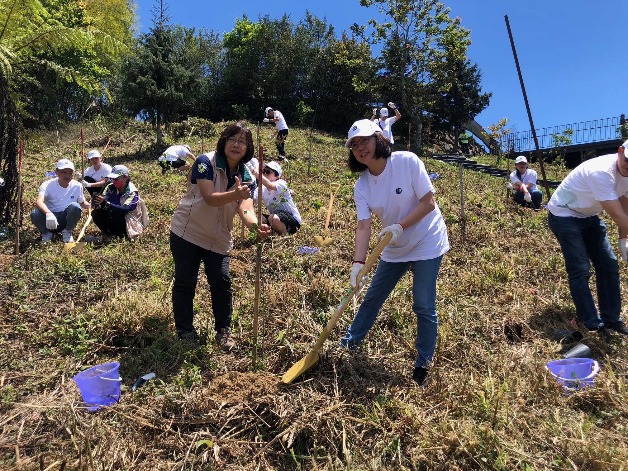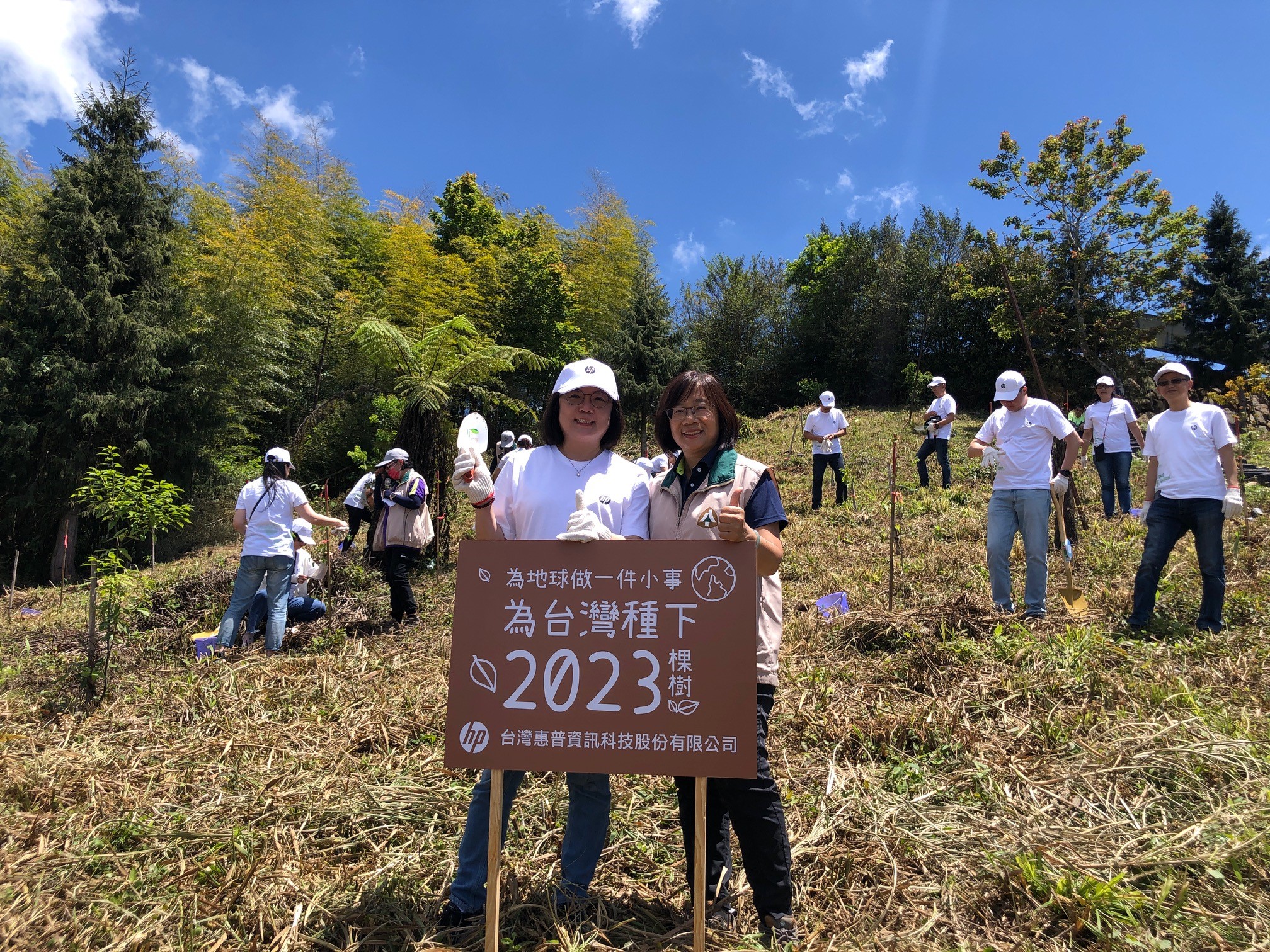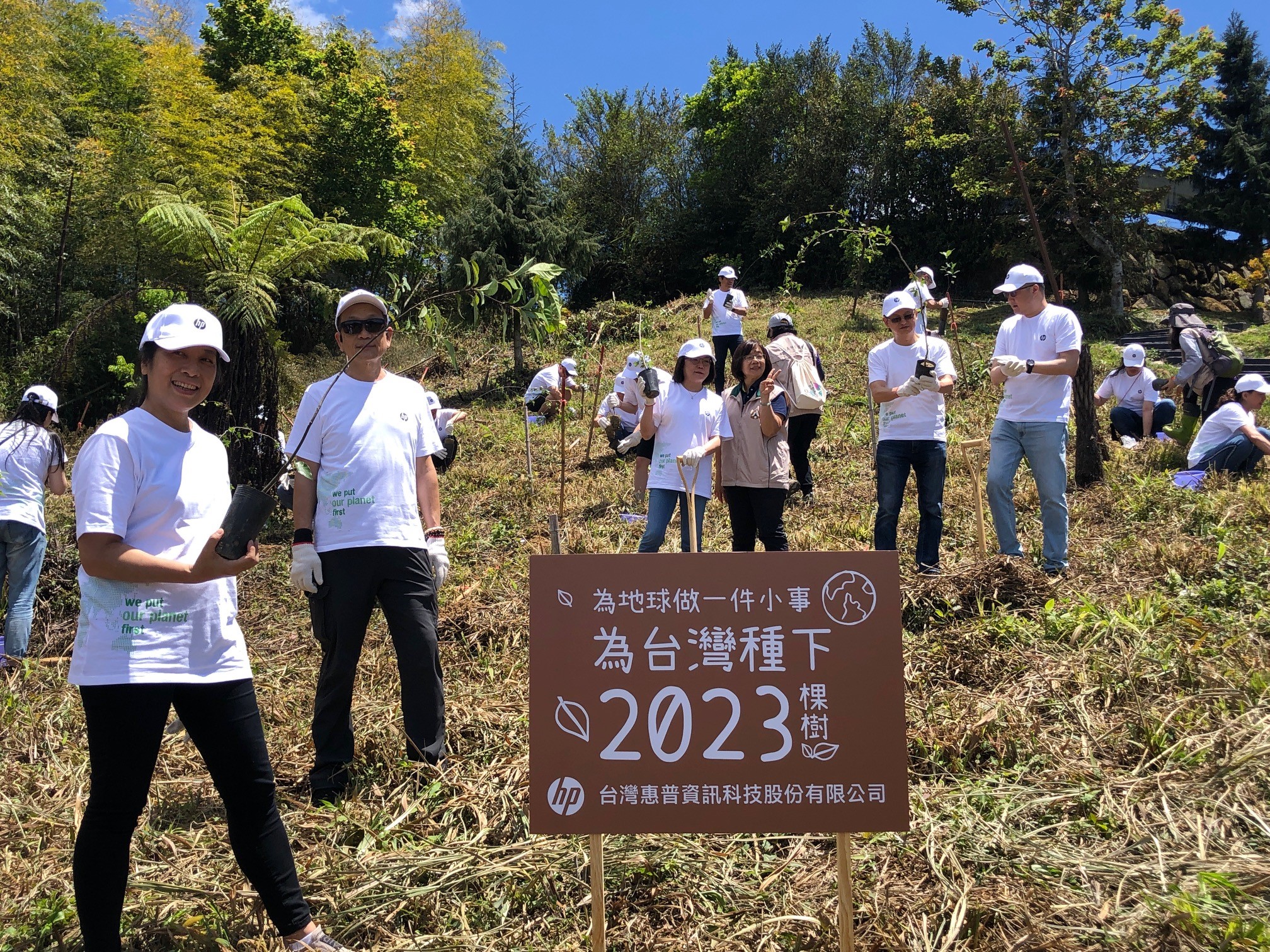 台灣惠普資訊科技股份有限公司(台灣HP)今年再度捐款認養林務局嘉義林區管理處造林工作,今(5)日由嘉義林管處作業課課長康素菁與台灣HP董事長暨總經理王靜秀,率領25位重要客戶、主管及員工於阿里山公路55公里處造林地進行植樹活動,身體力行減碳行動並營造優質永續生活環境。 嘉義林管處表示,臺灣面積雖小,但南北狹長位在氣候分界的北迴歸線上,高山林立,海拔高差近4,000公尺,加上四面臨海,複雜的地形及氣候條件形成多樣化的生態環境,孕育豐富的生物種類。此次台灣HP捐款認養林管處位於嘉義縣梅山及大埔鄉2處濫墾收回面積1.0227公頃的造林地,其中大埔鄉的造林地位於曾文水庫集水區,鄰近臺灣特有珍稀保育類野生動物臺灣爺蟬棲地,臺灣爺蟬為臺灣蟬中體型最大者,過去因棲地破壞及盜捕製成標本等情形,導致現存數量稀少,該造林地選擇栽植臺灣爺蟬喜歡依存的臺灣梭羅木,營造其棲息環境,以保育生物多樣性,其他造林樹種包括烏心石、臺灣櫸、紅皮等,總計2,023株。 樹木在自然環境中肩負著重要角色,植樹造林除了能固碳,同時可以涵養水源、穩固土壤,以及調節氣候,並提供各種動物及昆蟲住所,為在地自然生態提供正面效益。林管處除了提供捐款認養造林外,並配合林務局ESG土地媒合整合平台建置,盤點位於嘉義縣番路鄉以國土復育及營造昆蟲與鳥類生存覓食之環境棲地為目標的造林地,及位於臺南市南化區以林木生產永續利用經營為目標的造林地各1處,提出「攜手種樹守護台灣爺蟬的家」及「林業永續,請投造林一票」二項造林專案,歡迎有意願的企業團體電話洽詢05-2787006分機375陳小姐。 臺灣爺蟬生態小常識 臺灣爺蟬體長約6~7公分,是體型巨大且聲音響亮的鳴蟬,體色烏黑,膜質翅翼黛黑,上翅長達6cm以上,前緣是綠白色或藍白色,翅面中間偏後處有一寬窄不均勻的白色橫帶,胸背也是綠白色或藍白色,並鑲有狀似狐狸頭形的圖騰,故又名狐狸蟬,也有人稱青頭蟬、黑麗巨蟬、寶島麗蟬或臺灣油蟬等。臺灣爺蟬羽化後偏好棲息於臺灣梭羅木,若蟲也愛潛居於臺灣梭羅木根穴中,成蟲後再爬上高枝羽化成蟬。