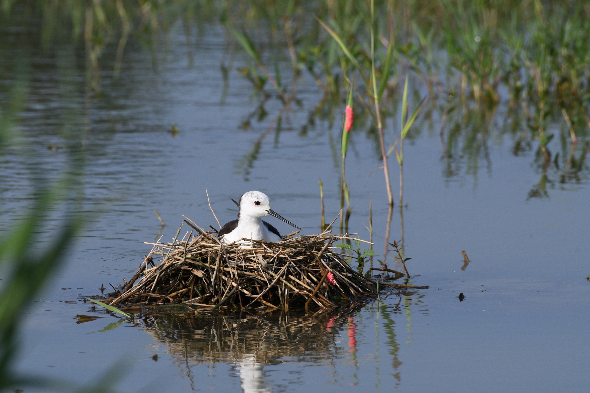 溫暖的春雨為鰲鼓濕地帶來豐沛的食物資源,園區留鳥們也開始孕育下一代,此時正是觀察野鳥繁殖及育雛的好時節。擁有一身黑白羽衣及紅色長腿的水鳥-「高蹺鴴」在淺灘上奔走,親鳥們正尋找材料堆出鳥巢,孵化的小高蹺鴴是早熟型雛鳥,很快就能行走、游泳,跟著親鳥們覓食。不過遊客在觀察之餘,也請記得保持距離,不要打擾辛苦的鳥爸爸鳥媽媽育兒。