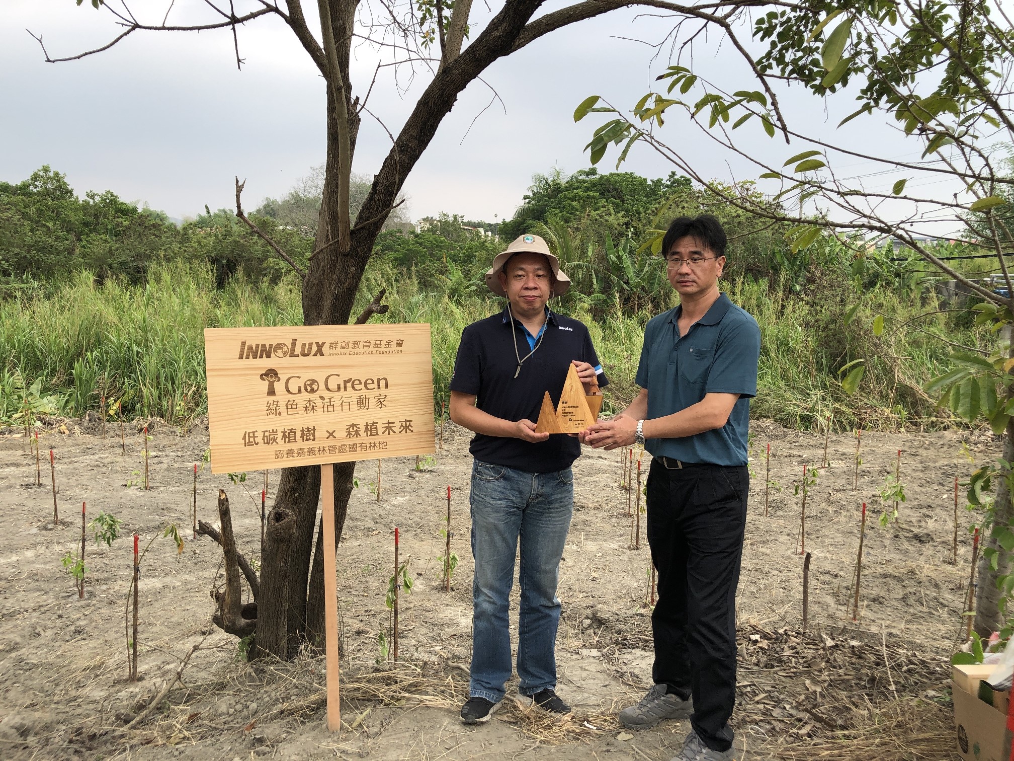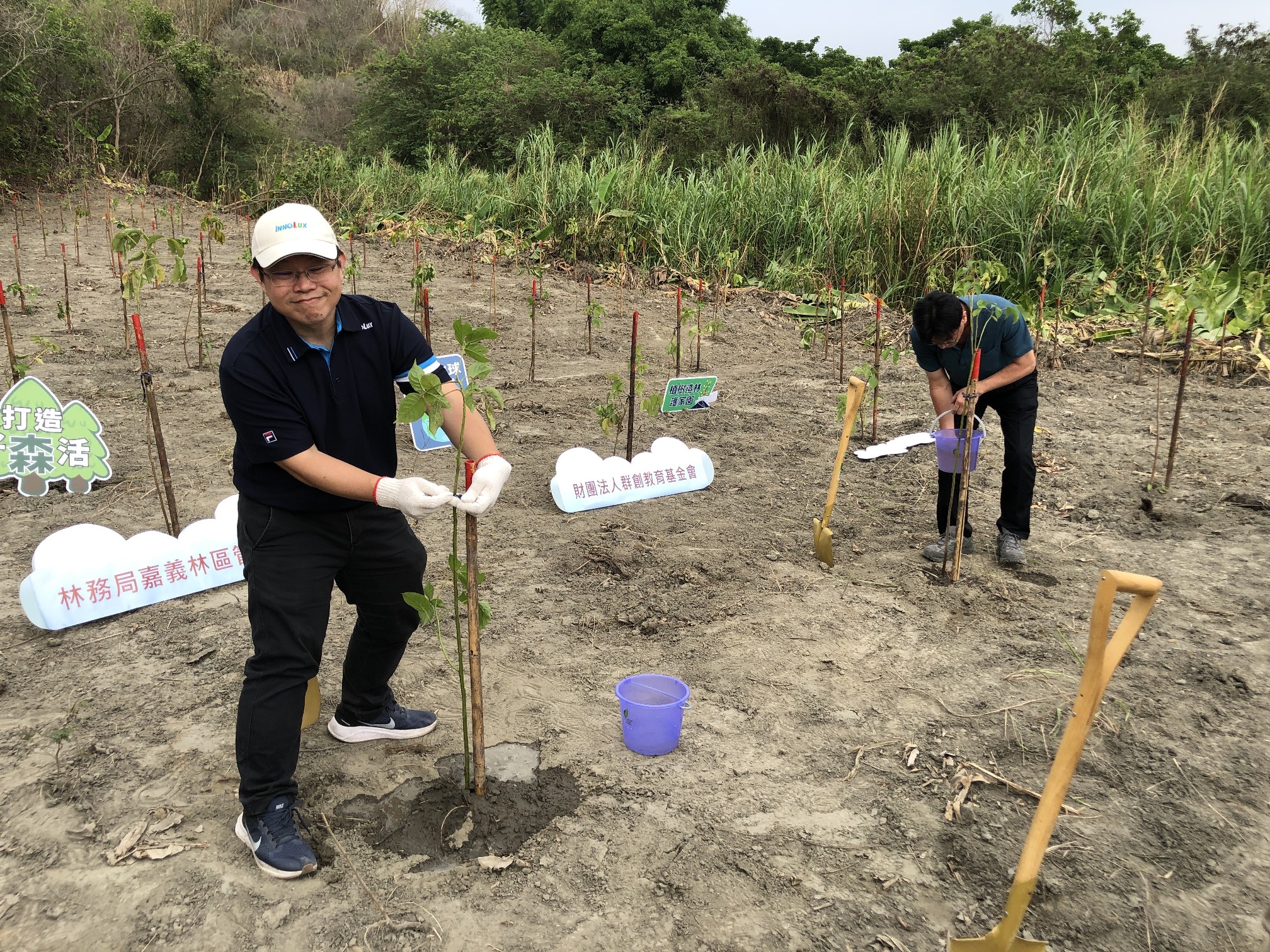 嘉義林管處表示,群創去年認養的造林地,種植之大葉桃花心木已生長至150公分以上,今年除持續認養撫育工作外,並增加認養臺南市左鎮區0.94公頃新植造林地,該地區是造山運動導致海相沈積物隆起而堆積的高鹼性泥岩地形,林木生長狀況較差,為復育森林生態,林管處選擇種植水黃皮、苦楝、茄苳等較適合鹼性土壤、具耐旱性及抓地固著能力強的樹種,以營造生態棲地、淨化空氣、涵養水源,發揮森林保安國土的功能。