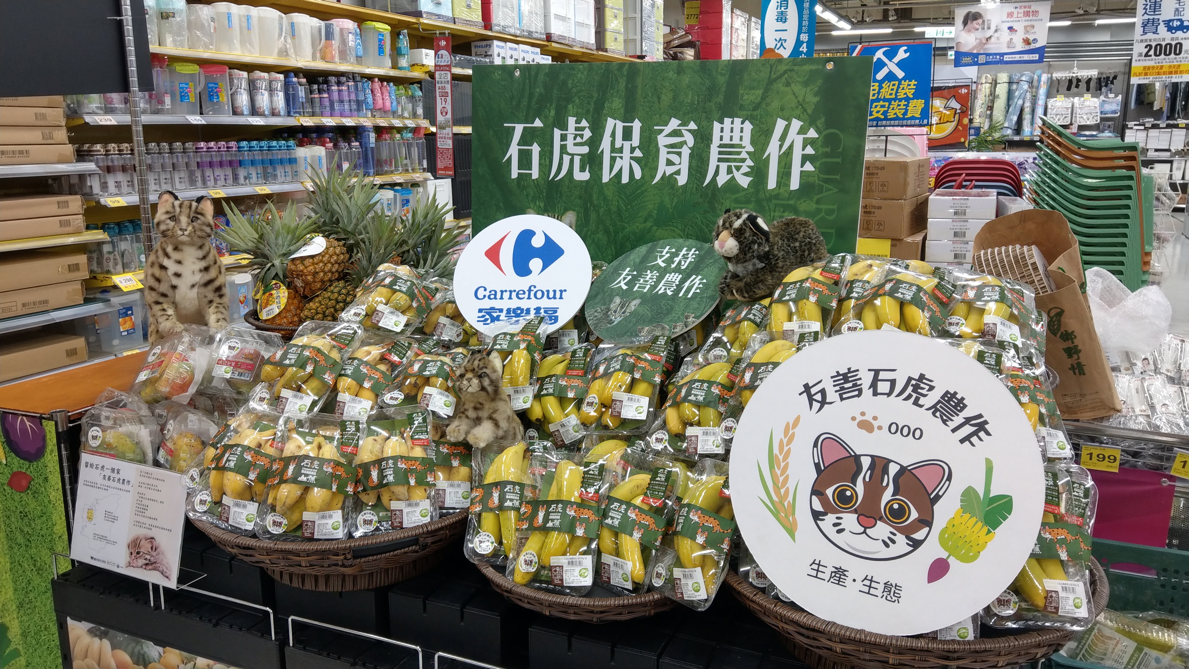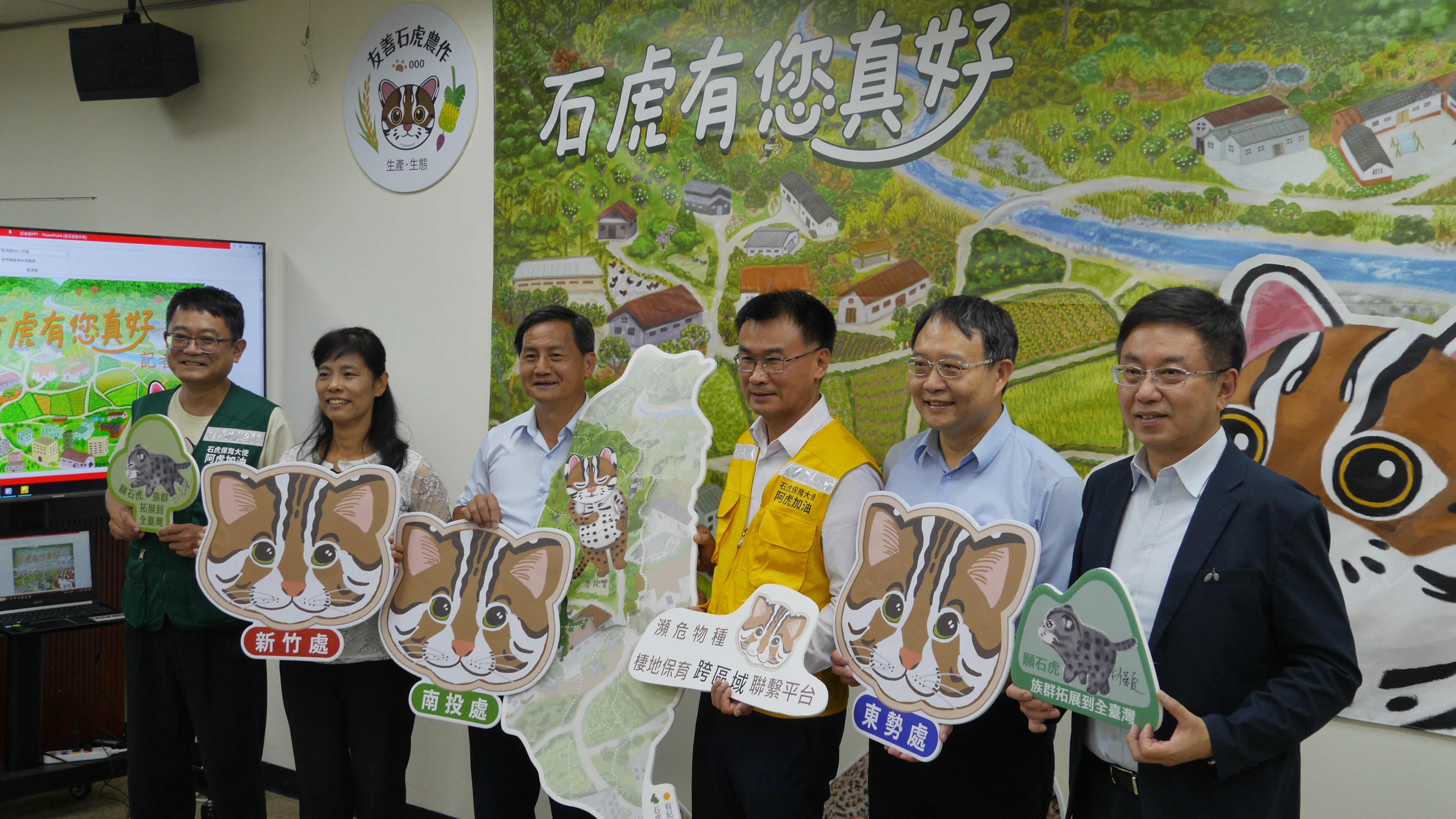行政院農業委員會林務局和特有生物研究保育中心攜手推廣友善石虎農作,今(1)日召開記者會,除感謝協助販售的通路,並宣布將友善石虎行動,從南投地區擴大至苗栗和臺中地區,以公私協力方式,共同推廣兼顧生活、生產和生態,三生共好的友善環境農產品。 石虎為瀕臨絕種保育類野生動物,主要分布於苗栗縣、臺中市和南投縣,棲息環境與人類主要居住、耕作和活動的淺山地區重疊,其中面積占比大之農墾地容易為石虎利用,特別是周遭鑲嵌雜木林、草生地或溪流等多樣棲地的農田更符合石虎棲息所需,特生中心的自動相機監測及個體追蹤結果也發現石虎活動範圍涵蓋許多農田區域,在在顯示農地與石虎活動的關係密切。 農委會近年積極推動友善環境耕作,農委會林務局和特生中心自103年起在石虎棲地範圍推動「友善石虎農作標章」,農民只要取得有機、產銷履歷或綠色保育標章等驗證,再保留石虎所需草相,採取不使用毒鼠藥、獸鋏且不放養犬貓等友善行動,即可獲得「友善石虎農作標章」認證,藉由農友的行動,提升石虎的棲地品質,讓石虎可以在農地安全活動與覓食,農民亦可將石虎標章作為品牌行銷農產品。目前通過有機驗證、綠保標章的「友善石虎農作」共有27位農友,符合產銷履歷的「友善石虎農作─安全用藥」共有11位農友,田區位置涵蓋中寮鄉、南投市、水里鄉、草屯鎮、名間鄉、國姓鄉等地,總面積約55.1公頃,同時孕育香蕉、稻米、紅龍果、芭樂、柑橘、鳳梨等多元農作物。 友善石虎農作標章得以順利推動,除農友的認同與努力外,亦有賴協力單位及銷售通路的協助,多數參與石虎友善農作的農友耕種品項雖多但面積不大,需要整合行銷或自行找通路販售,銷售過程困難重重,也需持續精進農作物的品質、提升農產品價值。透過大誠土壤作物技術館的指導,農友的生產技術成功提升,能夠穩定生產高品質的農作物;自108年迄今,家樂福、升陽農產、和泰集團、直接跟農夫買、台灣無印良品、大農網、聖德科斯、樂樂菜果、棉花田等多個通路,陸續協助農民販售山蕉、檸檬、茶葉和柑橘等農作物;更藉由農委會農糧署、林務局及財團法人慈心有機農業發展基金會持續推動的有機、產銷履歷及綠保標章,確保消費者購買到經嚴格把關的優良農產品。林務局與特生中心亦於今日記者會特別致贈獎座感謝各大通路和協力夥伴單位,讓友善石虎農作的農友收入更加穩定,也讓石虎有更安全的棲息環境。 林務局表示,南投林區管理處藉由「瀕危物種-石虎棲地保育跨區域聯繫平臺」串連各機關團體共同投入石虎保育工作,自今(112)年起與東勢林區管理處和新竹林區管理處攜手合作,將友善石虎農作由南投地區擴大推展至苗栗和臺中地區,歡迎民眾選購石虎友善農作物,一起保護石虎家園,期待未來石虎能脫離瀕危物種行列,族群分布回到全臺的淺山區域。