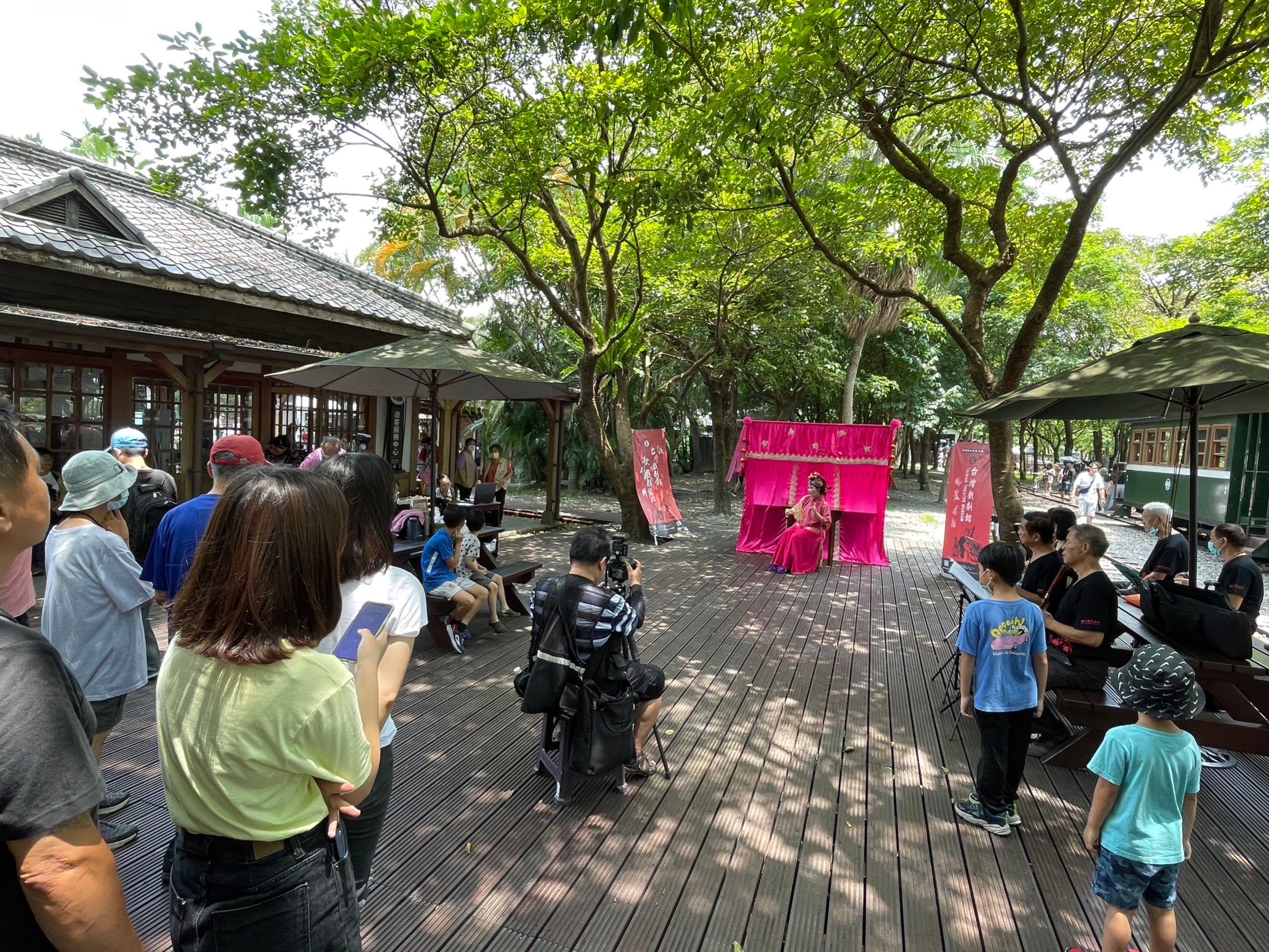 本次林場開麥拉活動,台灣戲劇館附設歌仔戲傳習班更加碼表演5齣歌仔戲,包含<王婆掛招牌>、<呂布與貂蟬>、<益春留傘>、<傳柬>、<月下訴情>等經典劇碼,讓羅東林場增添文藝氣息與熱鬧氣氛。今天參加的遊客除了體驗林場工人的日常生活,跟著大剖師進行木頭檢尺、水池移木、鋸木等活動,亦化身為林鐵工人進行蒸汽火車上油保養工作,一同回味昔日的林業時光。同時還能跟著羅東自然教育中心環教師一起來幫園區內的樹木做健康檢查、尋找躲藏在貯木池的鳥居民。