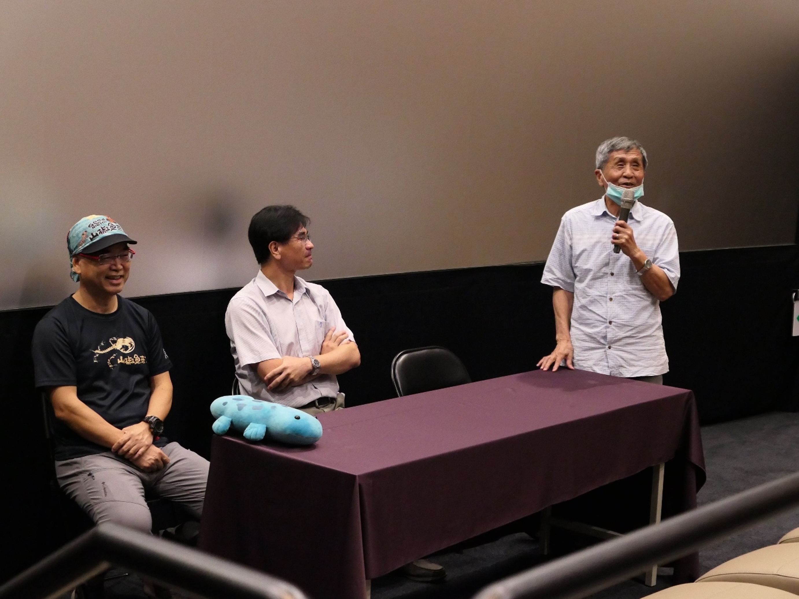 林務局嘉義林區管理處昨(12)日晚間包廳舉辦《山椒魚來了》生態紀錄片特映會,超過60位林管處同仁、國家森林志工及環境教育教師共襄盛舉,一同跟隨著電影中研究人員的腳步跋涉臺灣山岳,認識臺灣5種特有種山椒魚。映後更特別邀請重磅級導演麥覺明以及率領臺灣山椒魚研究的靈魂人物臺灣師範大學教授呂光洋進行座談,分享電影拍攝經歷及山椒魚生態和研究之路。 映後座談由嘉義林管處秘書鄭鈞謄主持,由麥覺明導演率先分享歷時17年拍攝的《山椒魚來了》電影緣起及經歷,並希望藉由電影讓民眾更了解珍貴的臺灣特有種山椒魚習性。麥覺明同時也表達與林務局已有多年的合作關係,許多人跟他說從小看他的節目長大,而他則是看著林務人員長大的,最初拍攝山椒魚,也是從阿里山開始,跟嘉義林管處有很深的感情;而呂光洋教授則分享山椒魚的生態及演化知識,也表達他自民國66年回國後,第1隻山椒魚就是在阿里山發現的,在阿里山進行山椒魚研究也已有至少30年的時間;此外呂光洋也宣導無痕山林的重要,鄭重呼籲遊客上山及志工導覽山椒魚時,請不要隨意翻找山椒魚,干擾牠們的棲地環境。觀眾也和麥覺明、呂光洋互動,了解山椒魚物種形成的原理及到日本拍攝大鯢的所見趣聞。透過《山椒魚來了》,5種臺灣特有種山椒魚的身姿活躍於大螢幕上,觀眾得以一窺山椒魚卵串孵化的珍貴影像紀錄,以及山椒魚所面臨如登山等人為活動影響棲地環境的問題。電影中亦呈現出研究人員不畏辛勞,蹲下身翻開一塊塊石頭尋找山椒魚的身影,及團隊成員研究山椒魚精神的代代傳承。 臺灣為山椒魚分布的最南界,如同《山椒魚來了》電影內容所指出,山椒魚族群分布在高海拔山區,不但受到氣候變遷的影響,遊憩活動造成棲地的汙染、人為干擾以及基礎研究資料的缺乏,都成為山椒魚生存的主要威脅。臺灣5種山椒魚皆為林務局盤點出的優先保育行動研擬對象,其中阿里山山椒魚為臺灣分布最廣的山椒魚,是珍貴稀有的保育類動物,嘉義林管處也一直陸續在進行阿里山山椒魚的監測調查及棲地保護營造,最新計畫為2020年委託國立臺灣大學朱有田教授進行阿里山山椒魚的族群分布、食性調查及保育遺傳學研究,成果發現阿里山國家森林遊樂區及特富野古道的阿里山山椒魚族群具有遺傳組成的獨特性。林管處希望透過包場觀影支持山椒魚研究及生態紀錄片的製作團隊,宣導山椒魚保育的重要議題,同時會持續致力於山椒魚族群的保育工作。