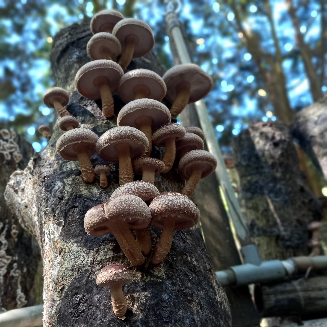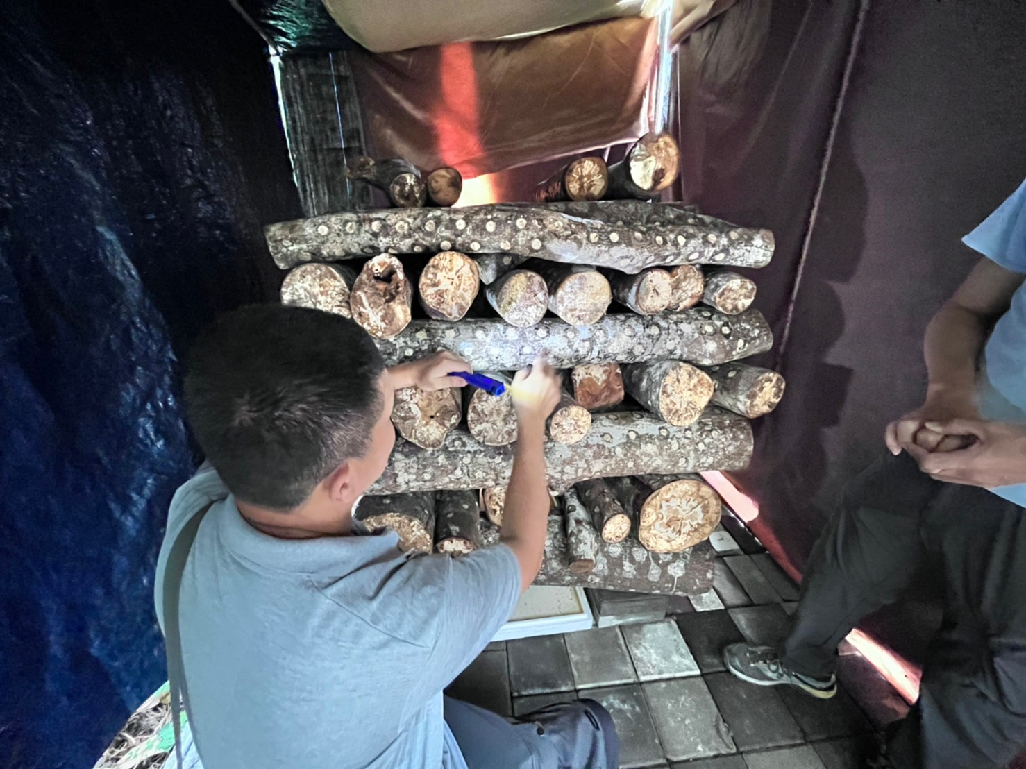 為推動林下經濟及提升林農經營技術,東勢林區管理處於6月份邀集段木香菇培植專家、輔導團隊訪視林下經濟經營成果,提供林農與社區場域管理及技術指導。共計訪視段木香菇經營場地11處,部分林農和社區已有平均每噸段木每年50斤至100斤左右的收成,訪視輔導深獲林農及社區肯定,直說是「揪感心」的服務。 東勢林區管理處表示,林務局推動林下經濟政策,是讓林農在維持原有森林環境與功能的前提下,合法在林地經營森林副產物,提高林地多元價值及山村經濟,目前林下經濟開放的品項有:段木香菇及木耳、臺灣金線蓮、森林蜂產品、臺灣山茶、馬藍及天仙果等。該處自110年起,積極輔導轄區內林農和社區部落參與林下經濟政策,透過培訓計畫,讓參與的林農及社區夥伴,在具備香菇培植知識、觀念與實作技術,並經過林地環境勘查後,才輔導申請林下經濟經營使用,保全森林生態也讓林農有多元的森林收益。 在台中市和平區烏石坑地區經營段木香菇的江姓承租人,自110年申請林下經濟,依循專家的技術,大大提升段木香菇的產量與品質,確實操作段木的走菌培養,選擇適宜的林下場地,第一年1噸段木就收成100斤香菇,出菇又大又多且品質優良,還有因濕度適宜形成的花菇型態,今年雖段木已進入第三年仍有不錯的收成。多數林農和社區也有平均每噸段木每年50斤左右的收成。 這幾天經過林管處、工作站、輔導團隊及專家的實地訪視,經營場地符合無破壞森林植被、無施用除草(蟲)劑、無使用化學肥料等林下經濟規範,確保對環境安全無虞;專家也針對個案環境有白蟻為害風險、雜菌感染風險、水分及光線管理等提出經營建議,讓林農及社區收穫滿滿。東勢林區管理處將陸續訪視已核定及輔導中的場地,持續陪伴與提供經營建議。有興趣的林農可向東勢林區管理處作業課或各工作站洽詢。