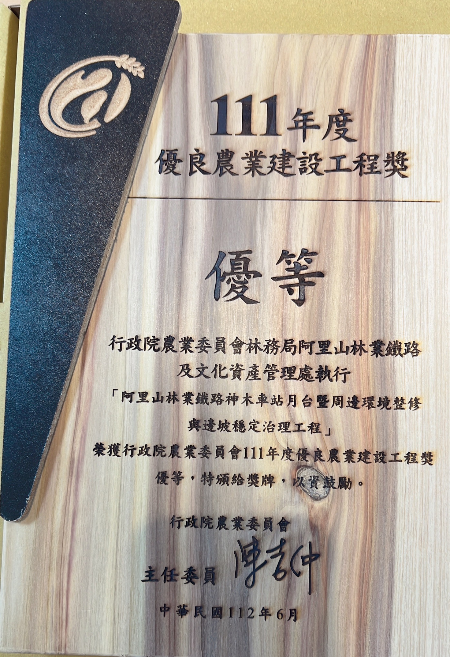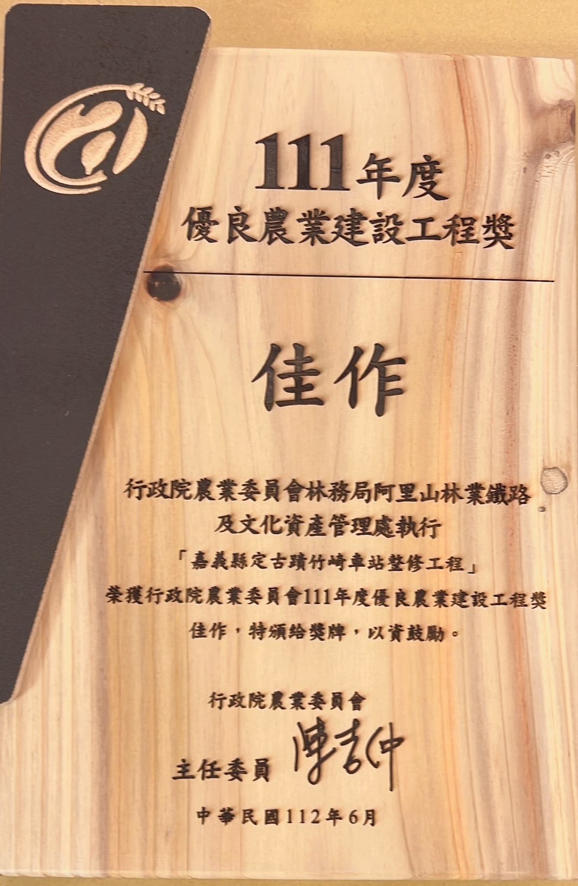 行政院農業委員會111年度優良農業建設工程獎於昨(28)日舉行頒獎典禮,林務局阿里山林業鐵路及文化資產管理處辦理「阿里山林業鐵路神木車站月台暨周邊環境整修與邊坡穩定治理工程」及「嘉義縣定古蹟竹崎車站整修工程」分別榮獲設施類-優等及建築類-佳作之獎項肯定,以優質工程兼顧環境永續與文化資產保存,並創造安全、舒適的車站空間,榮獲殊榮。 神木車站全新升級 友善服務更加成 阿里山神木於1906年由小笠原富二郎發現,依照日本奉神的習俗,在樹幹捆縛繩索,在樹頭周圍建造柵欄,敬為神木。雖然神木在1998年因不敵風雨雷擊而原地放倒,透過設置解說牌誌,讓神木車站永遠的圖騰長臥於鐵軌旁,以不同的姿態,繼續陪伴民眾回憶過去,也寫下新生代的歷史。典雅木構的神木車站,順應地形的階梯式月台兼具觀景功能,可以近距離觀賞神怡流瀑,更是遠眺塔山最佳地點。 「阿里山林業鐵路神木車站月台暨周邊環境整修與邊坡穩定治理工程」以提升服務品質兼顧生態保育、結構安全及文化記憶保存永續傳承的理念規劃設計,月台主體採用鋼構包木,加強整體結構安全,擴大月台停等空間,增加無障礙友善設施,改善鐵道排水系統並恢復雙股線,重現Z字型路線第3分道,保留既有設施造形,修復神木車站跨世代之間的生命記憶連結。 竹崎車站古蹟結構修復 安全又保存歷史風貌 竹崎車站為全木造車站,並為阿里山林業鐵路登山的第一站,位於鐵路平地線與山地線的交會點,因應早期列車調頭特殊目的,車站內之軌道創造出獨特三角線,不僅具建築特色,且具鐵道文化特殊價值,因此民國98年經嘉義縣政府公告指定為縣定古蹟。 「嘉義縣定古蹟竹崎車站整修工程」使用臺灣檜木(紅檜)為修復主要木材種,維持車站全木構造建築風格,其構造主要為編竹夾泥牆、木摺壁及壁面灰作,工法上則延續養灰、養土等傳統建築工藝手法,並運用創新材料(雨庇-鈦鋅板)延長使用年限,降低維護管理成本,同時新設無障礙坡道及無障礙廁所,營造車站友善空間及完善整體動線。車站美麗的蒂芬妮藍(Tiffany Blue)色調的外貌,係嚴格、謹慎考究後,於設計階段即進行油漆剝漆試驗結果,且經文資審查會議與各單位之密切商討結果,保留遊客及在地居民對竹崎車站記憶,配合車站周邊景觀,帶動竹崎觀光人潮。 林鐵沿線車站改善 打造安全、友善、舒適休憩環境 林鐵及文資處持續以積極謹慎的態度,進行阿里山林業鐵路沿線車站站體及相關設施維護工作,嚴格把關施工品質,落實文化資產保存與工程生態檢核,創造友善空間。提供旅客更舒適服務,展現阿里山林業鐵路的歷史與風華,使大眾瞭解其豐富的文化、歷史及學術價值,並與之產生多元的互動,打造安全、友善觀光休憩環境。