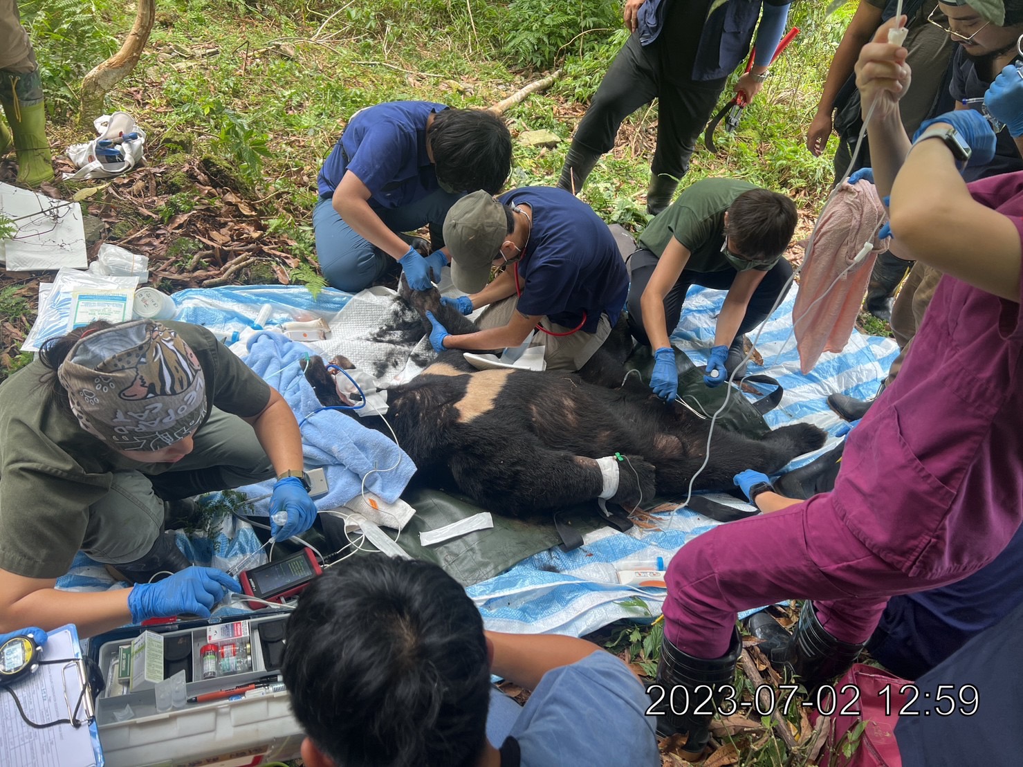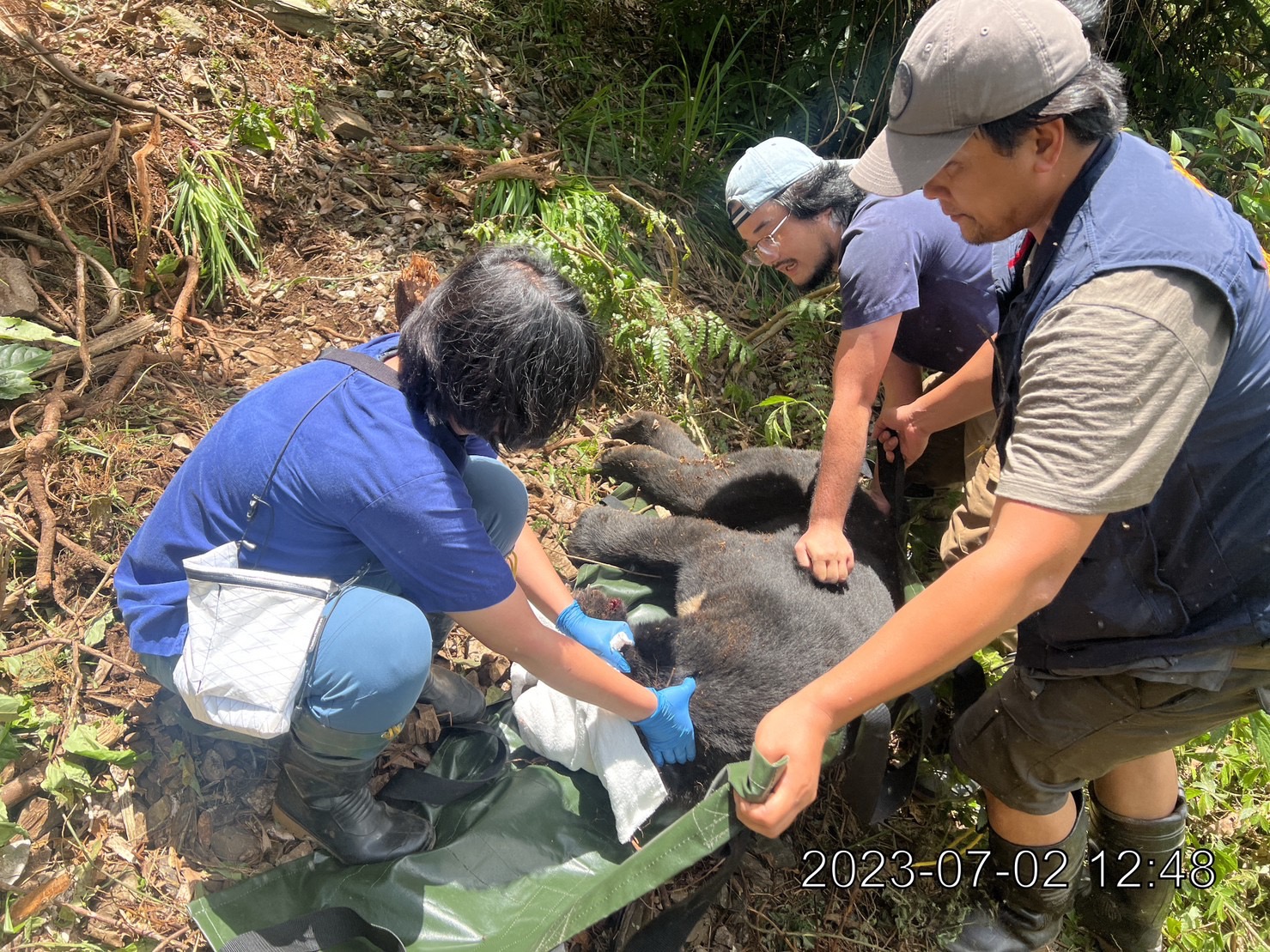 林務局花蓮林區管理處今(2)日8點30分接獲通報,在卓溪山域海拔約900公尺一處私有咖啡農園旁有黑熊受困陷阱,林管處迅速成立救援小組,會同東部野生動物救傷中心-野灣野生動物保育協會醫療團隊成功將黑熊救援下山。這是林務局「臺灣黑熊生態服務給付」方案推動以來,花蓮地區第3例,同時也是首例非原住民身分通報並協助救援的案件。顯見黑熊活動熱區居民已知道也願意積極通報救援,讓誤捕黑熊不再淪為私下處理的黑數。 通報人仲先生表示,在今日早上巡視咖啡園時,發現其飼養的狗隻不停吠叫,前往查看後發現為黑熊誤中陷阱,於是馬上通報受花蓮林管處委託,在卓溪當地執行「人熊衝突防治及社區共存保育計畫」的「野聲環境生態顧問有限公司」人員,花蓮林管處再接獲野聲通報後即啟動救援,動員共計29人。 受困黑熊經檢視,為一隻體重84公斤之成年公熊,其左前肢腕部關節因遭套索壓迫腫脹,但無開放性傷口,亦無斷指,野灣獸醫師為避免患肢持續腫脹而壞死,因而在現場施行清創手術,並後送至位於臺東池上的東部野生動物救傷中心暫留觀察傷勢。 另一位通報人莊先生表示,咖啡園附近因山豬數量多,常有人來放置陷阱捕捉,可能因此發生本次誤捕黑熊事件。花蓮林管處人員因而在現場擴大搜尋,但未再發現其它陷阱。 花蓮林管處處長黃群策表示,花東地區黑熊救援業務,是由林務局成立東部野生動物救傷中心,並交由野灣野生動物保育協會負責營運,野灣團隊有11名野生動物專業獸醫人員,在與花蓮林區管理處、台東林區管理處的通力合作下,成立至今連同本次,已在花東地區救援8隻臺灣黑熊,成為花東地區野生動物救援的重要核心。 花蓮林管處再次呼籲,若發現野生動物受困,請即刻撥打林務局24小時通報專線0800-000-930或花蓮縣縣民專線1999。若不慎誤捕或誤傷保育類野生動物,只要立即通報、協助救援,就不會被究責。