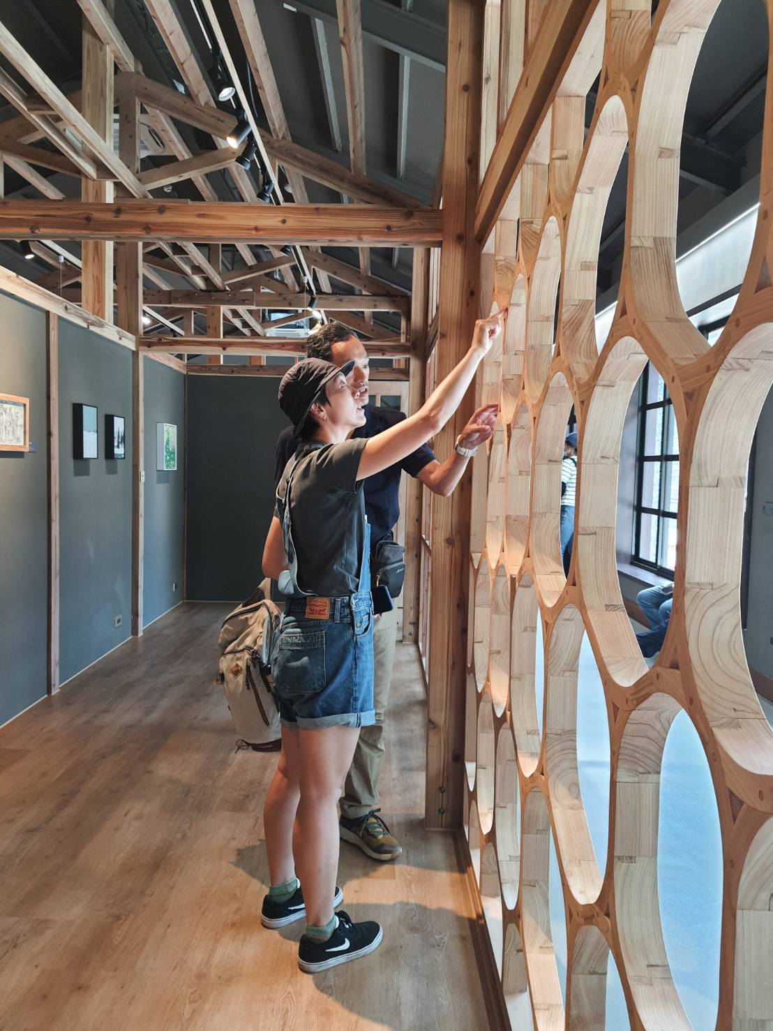 羅東林業文化園區是1924年所成立的「羅東林場」前身,為昔日太平山檜木唯一的集散地,1979年隨羅東森林鐵路停駛,及1991年林業政策轉型及禁伐天然林,林場逐漸式微以致荒廢,直至2009年林務局羅東林區管理處以「羅東林業文化園區」之名,開放民眾參觀,至今成為宜蘭重要的文化地標及著名景點,每年吸引50-80萬遊客造訪。近年園區與都市計畫工程有介面銜接之問題,羅東林區管理處遂於107年開始進行園區邊界範圍、景觀、建築物等整修工程,陸續完成後,而今遊客的動線從原以西、南、北側之各個巷弄入園,已轉向由南側入園為主,因此,遊客中心也隨之由原竹林車站移至面積寬廣的南側廣場,除了提高遊憩動線之通暢度外,也讓遊客有足夠的友善停等場域,而新遊客中心與台灣知名展場設計師薛宏彬合作,以七種國產材融入設計,在空間、機能、服務、美學、意涵等面向,讓遊客耳目一新及驚艷,整體品質也再升級。今日舉辦新遊客中心啟用活動,完滿完成。 羅東林業文化園區於2009年成立,初期並無設置遊客中心,直至2016年才於既有的竹林車站內,騰出一半的空間設置簡易型遊客中心,雖位居園區中央,許多遊客入園後不易發現;加上車站為歷史建築,為了保持原風貌,不得隨意整修及擴大,囿於空間無法提供完整的服務機能,甚至服務人員及志工值勤空間也嚴重不足,因此羅東林管處自107年開始啟動遊客中心移至南廣場之計畫,過程中執行了南廣場修建工程,重現昔日製材場意象,獲得台灣景觀大獎,而廣場上的5棟舊建物依據文資法也進行調研、因應計畫、整修等作業,亦獲農委會頒發優良建設工程獎;而其中空間最大的一間建築物,則是做為遊客中心之用,除了設有提供旅遊諮詢的服務櫃檯外,也增設園區旅遊資訊、林場圖書展示區、特展區、多媒體播放區、哺集乳室、寄物櫃、自然教育中心第二教室等,可大幅升園區整體服務品質。 羅東林業文化園區新遊客中心在羅東林場時期是載運木材的卡車修理庫,伐木事業結束後,經過數次整修,失去原有的建築型式,近代主要作為倉庫使用,其前方廣場則是堆置許多錯亂的漂流木,景觀紊亂,因此羅東林區管理處把漂流木移置他處,建築物進行整修後,除了設定目標作為遊客中心之用,以提升服務及機能外,也企圖打造一個既有林場感,又令人耳目一新及驚豔的遊客中心,因此與台灣知名的展場設計師薛宏彬合作,他運用臺灣扁柏、紅檜、臺灣肖楠、臺灣鐵杉、臺灣杉、柳杉、相思樹等7種國產材融入設計,以設置等比例的木構造模型手法,重現過去林場建築的歷史意象及香味,讓遊客可以直接感受到木材的溫潤質感,進而產生多層次的感官體驗,間接也對淨零碳排、振興木竹產業及提升國產材自給率有推廣的作用;另以木材為可再生資源為設計概念,並結合林務局國土生態綠網政策,邀請知名畫家傅作新手繪一張巨幅的蘭陽里山地景圖,表達環境永續經營的願景理念。 為了讓來訪遊客每次來到羅東林業文化園區的遊客中心都會有不同的視野及體驗,在「樹民雅集」特展區的空間,每2個月會換展一次。新開幕第一檔7-8月的主題特展為「傅作新 · 微展-迷入森林」。傅作新於台灣各美展中,曾於1992至1994年間連續三屆得到第一、二名的佳績,因而獲得全省美展永久免審查作家殊榮,他於1993-1996遊學歐洲,2003-2005留學法國專研銅版版畫與油畫,作品曾經得過多次獎項並舉辦過多次個展與聯展,作品也收藏於法國、義大利、比利時和臺灣的美術館。近年來,傅作新有大量關於自然與森林的主題創作。今年度接續會有第二檔9-10月的特展,主題為「植物繪」,第三檔11-12月為「編織山水蘭陽的生態綠網」,特展期間都不定期推出免費專題講座及參展打卡贈禮活動,歡迎民眾可以關注羅東林區管理處官網(https://luodong.forest.gov.tw/)及羅東林業文化園區官方FB粉絲團(https://www.facebook.com/lfcgexhibition/?locale=zh_TW)查詢詳細資訊。
