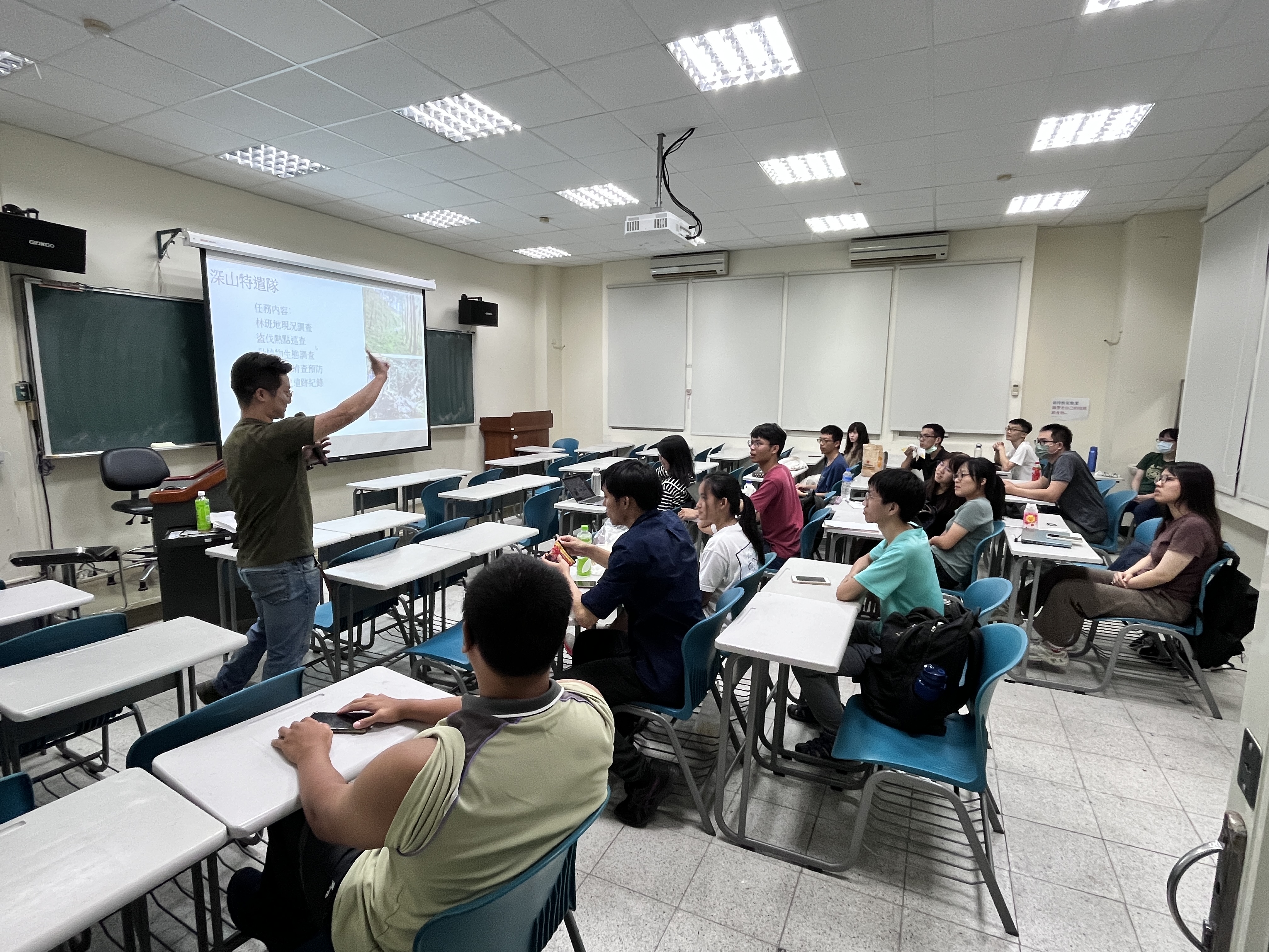 為了守護山林珍貴資源,林務局羅東林區管理處與台大登山社透過社區林業計畫的合作,由曾榮獲優秀森林護管員的李孝勤,傳授山林巡護的技巧與生態監測的經驗,希望藉以公私協力的方式,共同守護山林的行列,及提高「見警率」嚇阻不法行為。 台大登山社是該校各系所喜愛登山的成員組成的社團,平常攀登國內各登山路線,社員經驗相當豐富。今年透過林務局社區林業計畫,向羅東林區管理處申請巡護具有豐富森林資源及人文歷史的太平山區5條深山路線。為了讓學生在了解林務局深山特遣工作內容及安全,並由羅東林區管理處曾獲優秀森林護管員的李孝勤前往台灣大學分享,將山林巡護工作內容、動植物生態調查與紀錄,還有山區安全注意事項(如:遭遇山老鼠(盜伐者)避免正面衝突,做到「通報」即可,藉此降低風險。)等經驗提授予學生,並配合相關林業政策、如生態綠網、林下經濟等主題之影片及教材,加深印象。 羅東林管處期許藉由公私協力的合作,讓學生於體驗登山活動的過中,對森林生態及人文歷史都能更加瞭解,同時協助守護山林,提升貴重林木生育區域的能見度,嚇阻不法行為的發生。
