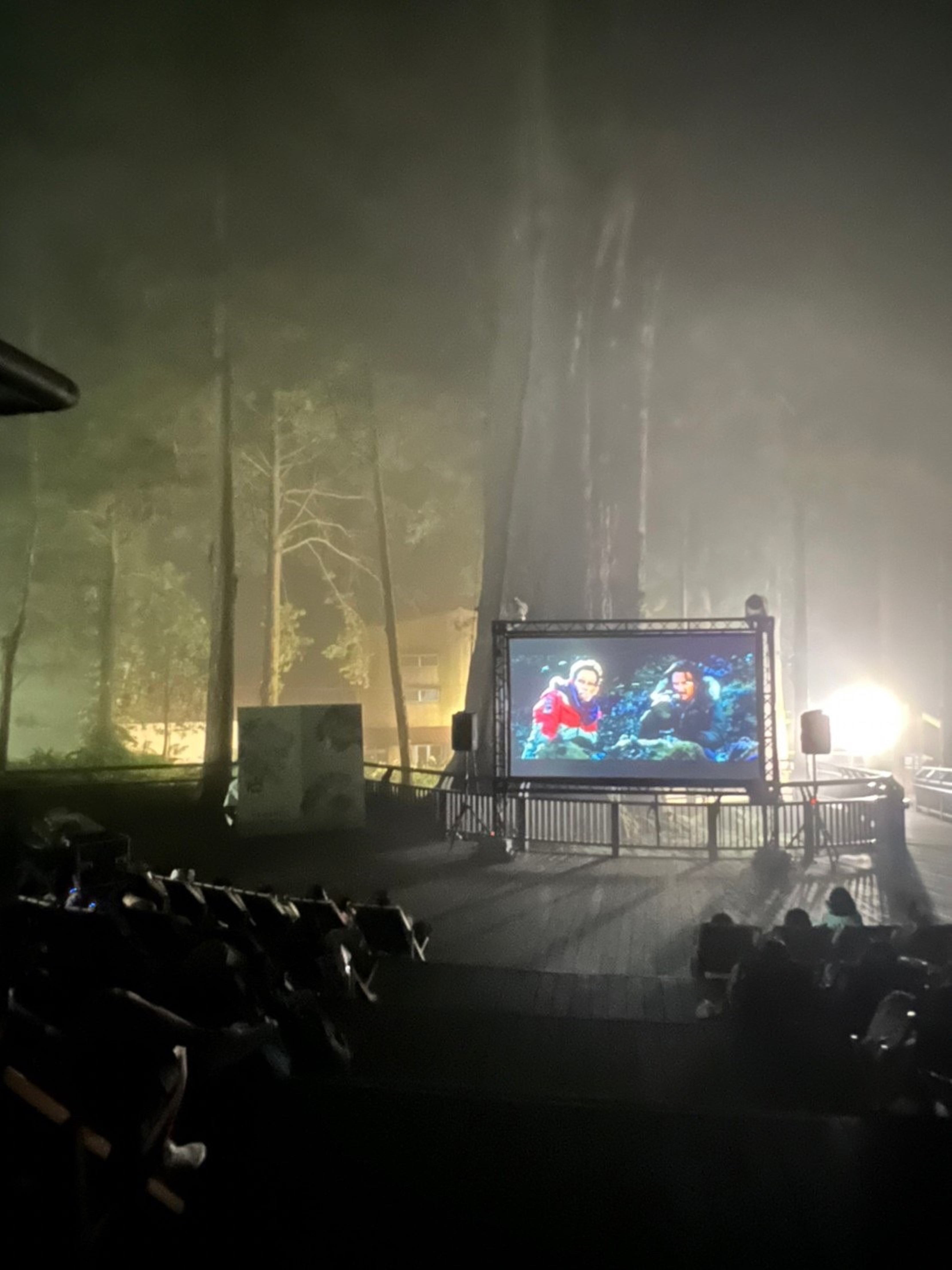 嘉義林管處精心挑選由「班史提勒」執導及「史蒂夫康拉德」改編的心靈療癒影片「白日夢冒險王」,夜幕低垂只見滿滿遊客圍繞香林神木而坐,電影畫面光線映照著一張張專注的臉龐,現場寂靜無聲。林管處本著友善環境的宗旨,電影夜搭配無線降噪耳機,讓戶外電影院熱鬧卻不吵鬧,遊客吹著比電影院空調還要舒適的天然冷氣,嗅著森林、花草與土木散發的自然香氣,身心靈各方面都深深感受到大自然療癒的力量,直呼這真是一場最適合夏天的避暑之旅。