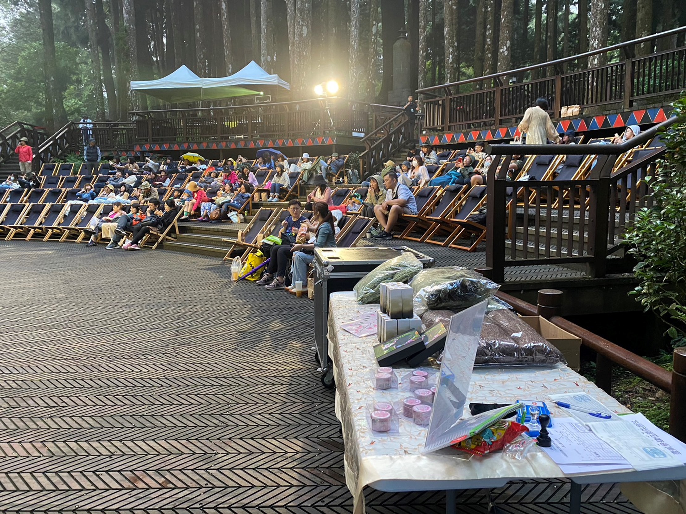 2023阿里山仲夏熠熠星空電影院昨 (15) 晚於「阿里山香林神木劇場」上映,百餘位遊客到全台最高海拔的森林戶外電影院消暑看電影,現場熱鬧非凡。林務局嘉義林區管理處今年陸續推出阿里山四季森林生活提案,以「阿里山森林療癒季」為主題,將都市的娛樂活動帶入森林,和遊客一起體驗療癒的藝文阿里山。在巨木環繞的歡迎下遊客依序進場,除有夏日限定禮品組,還附贈森林登山帽和小點心,美好的觀影體驗遠離都市的高溫,享受舒適天然的冷氣,讓大家紛紛驚呼太療癒了。