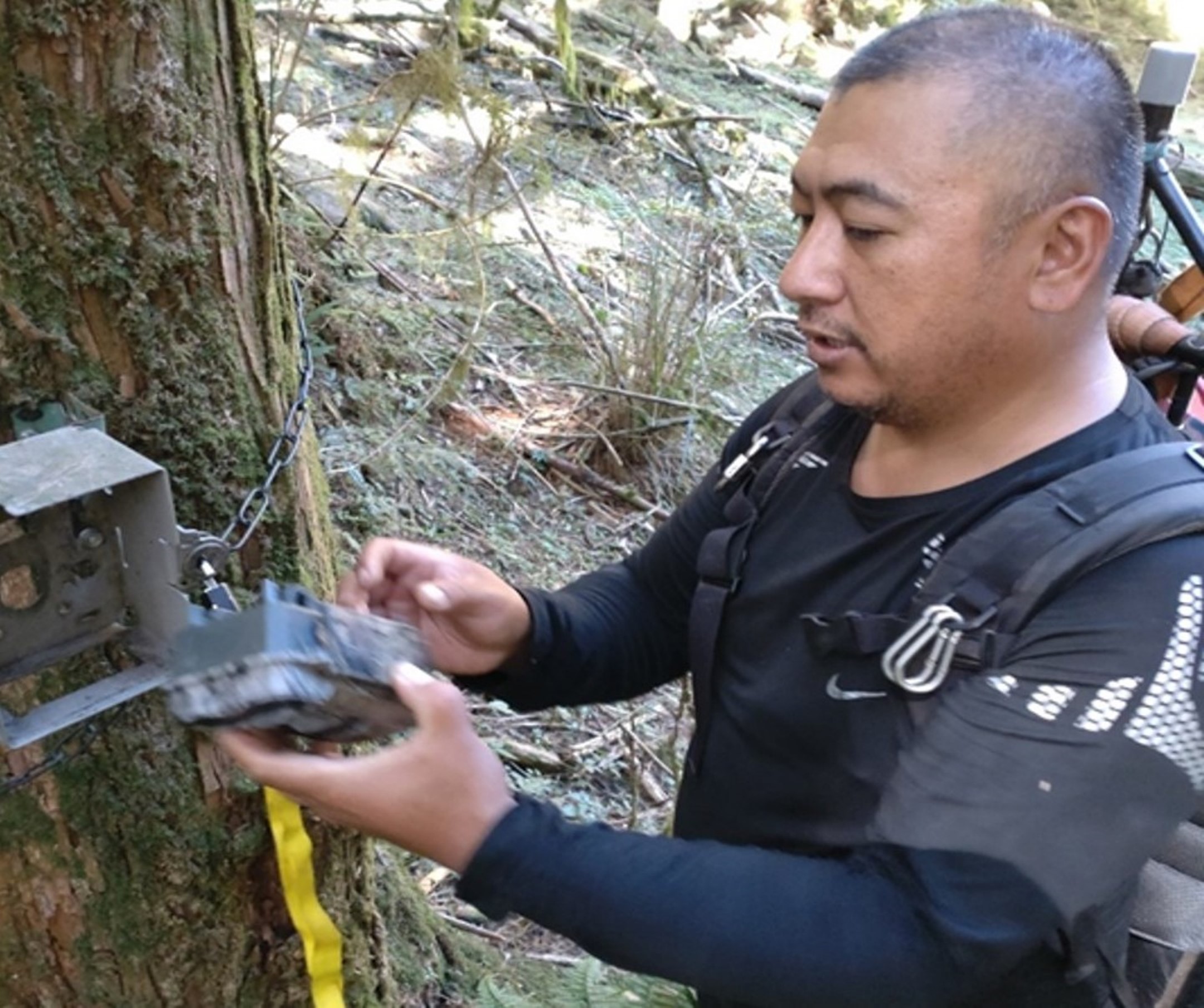 林務局嘉義林區管理處輔導嘉義縣鄒族獵人協會參與臺灣黑熊生態服務給付計畫,今年6月獵人協會在阿里山鄉特富野山域架設的紅外線相機,成功拍攝到臺灣黑熊,影像中黑熊踩到改良式獵具但沒有被套住,這也是首次拍攝到改良式獵具成功防範黑熊誤捕的影像紀錄。