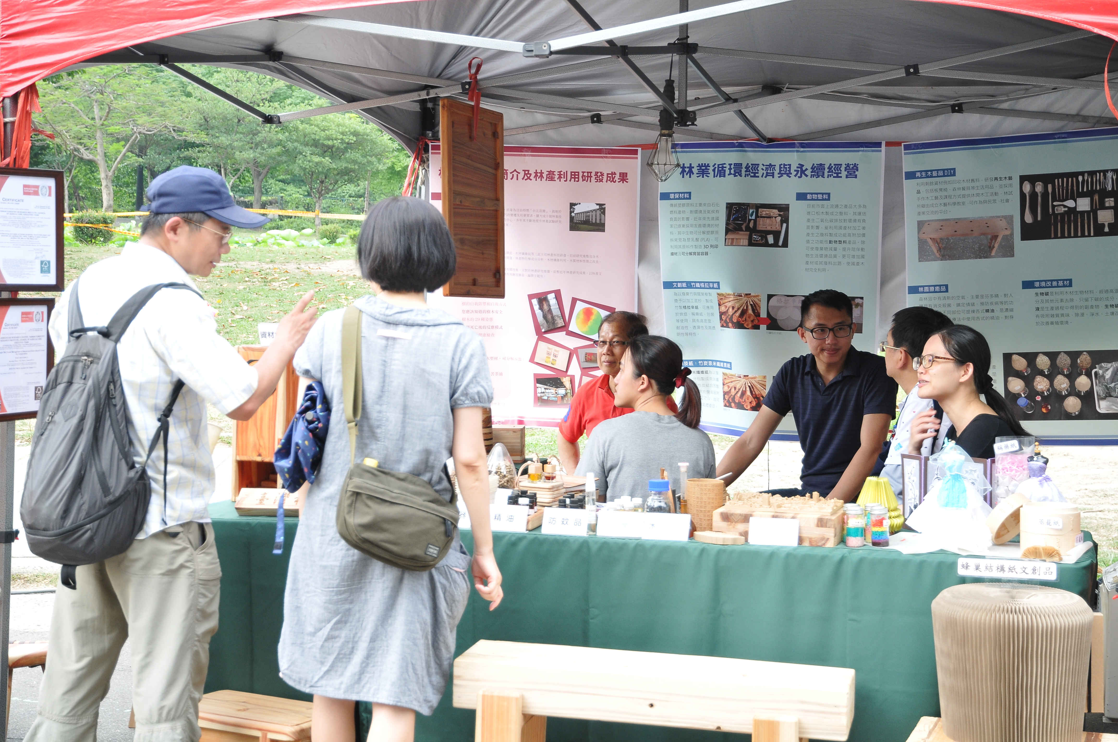 林務局去年宣告迎向「國產材元年」,也積極推廣國產木、竹材,本次相關業者參與市集十分踴躍,有遠從屏東前來的環保綠色工藝廠商,為北部的朋友帶來臺灣南部特有材種商品展示,將各種珍貴國產材化身精品工藝,結合多元創意巧思,可廣泛用於日常生活,賦予國產材新生命,活化再利用;有通過FSC認證的廠商帶來用永續方式伐採的國產材產品,還製成木屑太空包,現場燉煮香噴噴的香菇雞湯,令人口水直流。