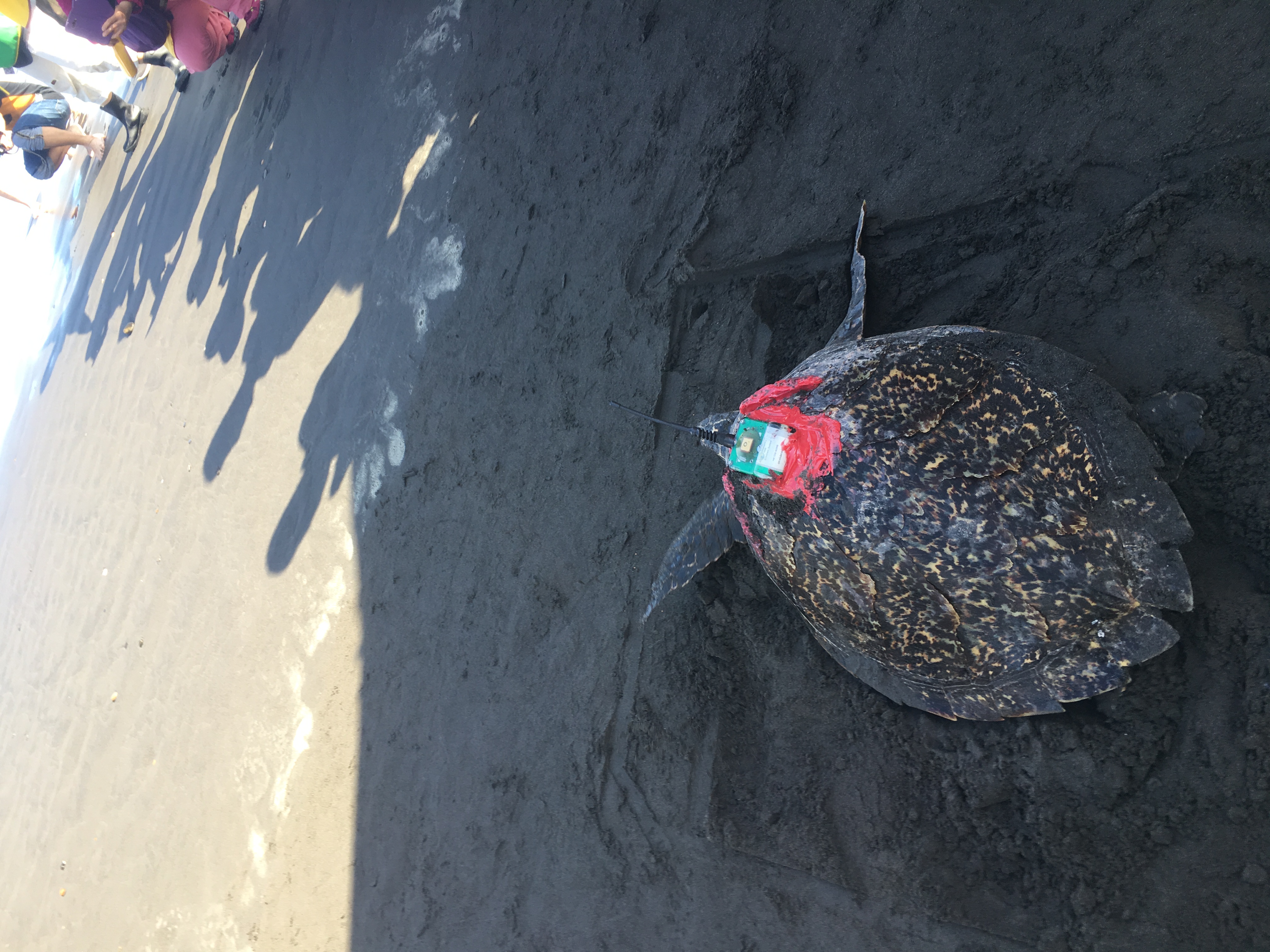 今天6月8日是世界海洋日,臺灣的海龜研究也向前邁進!林務局補助國立臺灣海洋大學團隊執行海龜擱淺救傷,其中的亞成玳瑁「魷魚絲」,在經過細心照護療養後,於今(107)年3月29日野放,牠的背甲上繫著海洋大學程一駿教授裝置的衛星發報器,寄望魷魚絲傳回神秘的玳瑁洄游路徑及生態資料。經過65天的追蹤,魷魚絲在世界海洋日前回傳最後的衛星訊號,牠現身菲律賓南呂宋島的薩瑪島周遭海域,目前共計洄游了3,572公里,也顯示出兩個重要訊息:一是與綠蠵龜相比,玳瑁的洄游路徑長得多;二是玳瑁的主要覓食區極可能為熱帶珊瑚礁海域,因此珊瑚礁生態與玳瑁的族群量息息相關。