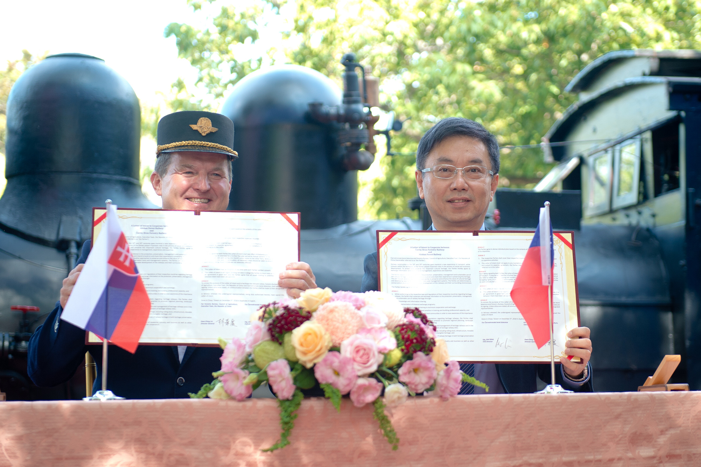 今(107)年12月是阿里山林鐵營運滿106週年,在這具歷史意義的今日,阿里山林鐵與具有110年歷史的斯洛伐克切尼赫榮林鐵,於嘉義車庫園區由林務局林華慶局長與切尼赫榮林鐵主席Bilek簽署合作意向書,這是繼日本、瑞士、印度及英國之後,阿里山林鐵與國外締結姊妹的第9條鐵路。