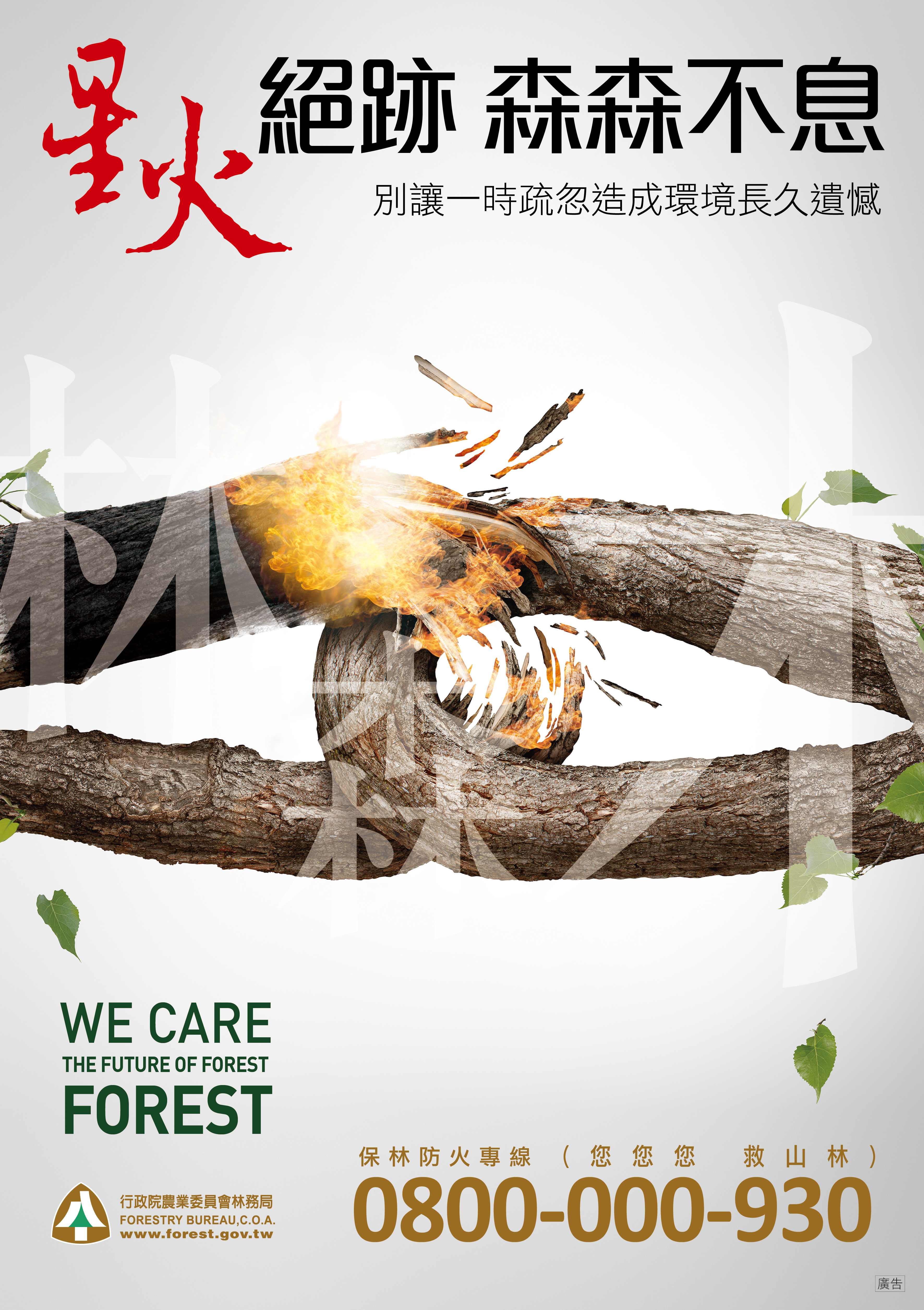 清明祭祖慎用火勿釀災,臺灣的森林火災絕大部分都是因人引起,清明連續假期在即,林務局特別呼籲民眾祭拜祖先時應減少燃燒金紙,除了避免釀災,也減少空氣污染。在山區活動更切記小心防火,一旦引燃雜草,極易造成森林大火。 林務局指出,依據森林法規定,森林區域及森林保護區內,除非經過許可,不得有引火行為,違反此一規定者,最高可處60萬元罰鍰;至於放火燒毀他人之森林者,處3年以上10年以下有期徒刑,且除負刑責外尚須負民事賠償責任。另外,為鼓勵民眾共同防範森林火災,森林保護辦法第34條規定,對於舉發且查獲燒毀國、公有林之犯罪行為人,得發給舉發人每案10萬元以下之破案獎金,若經認定情節重大者,得提高至新台幣100萬元。 林務局呼籲清明掃墓謹記四「不」二「記得」,掃墓時「不」燃燒雜草、「不」亂丟菸蒂、「不」亂撒冥紙、「不」燃放爆竹,「記得」熄滅灰燼、「記得」要收垃圾,共同防範森林火災,維護森林資源。如發現森林火災時,請儘速撥打免費專線電話0800-000930(您您您,救山林)、0800-057930(林務局救山林)或119消防中心通報。
