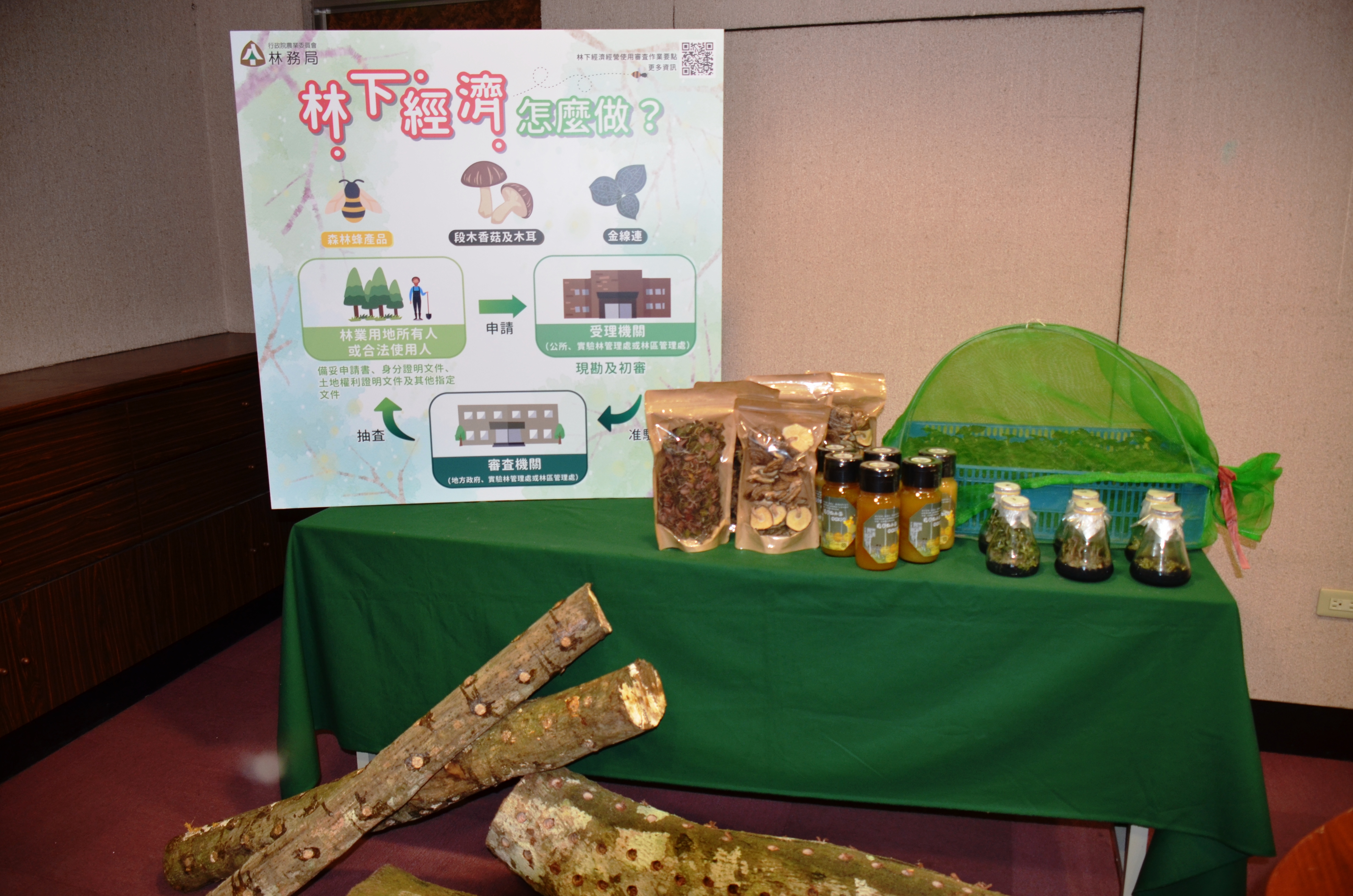 為分享森林生態系服務價值,林務局提出「適地發展林下經濟」政策,以振興山村綠色經濟。在不破壞森林環境前提下,正式受理林下「段木香菇及木耳」、「臺灣金線連」與「森林蜂產品」等森林副產物經營申請,並藉由專業輔導團隊的陪伴,導入林業永續多元輔導方案、友善環境耕作及有機認驗證作業等配套措施,厚植台灣森林永續經營的能力。