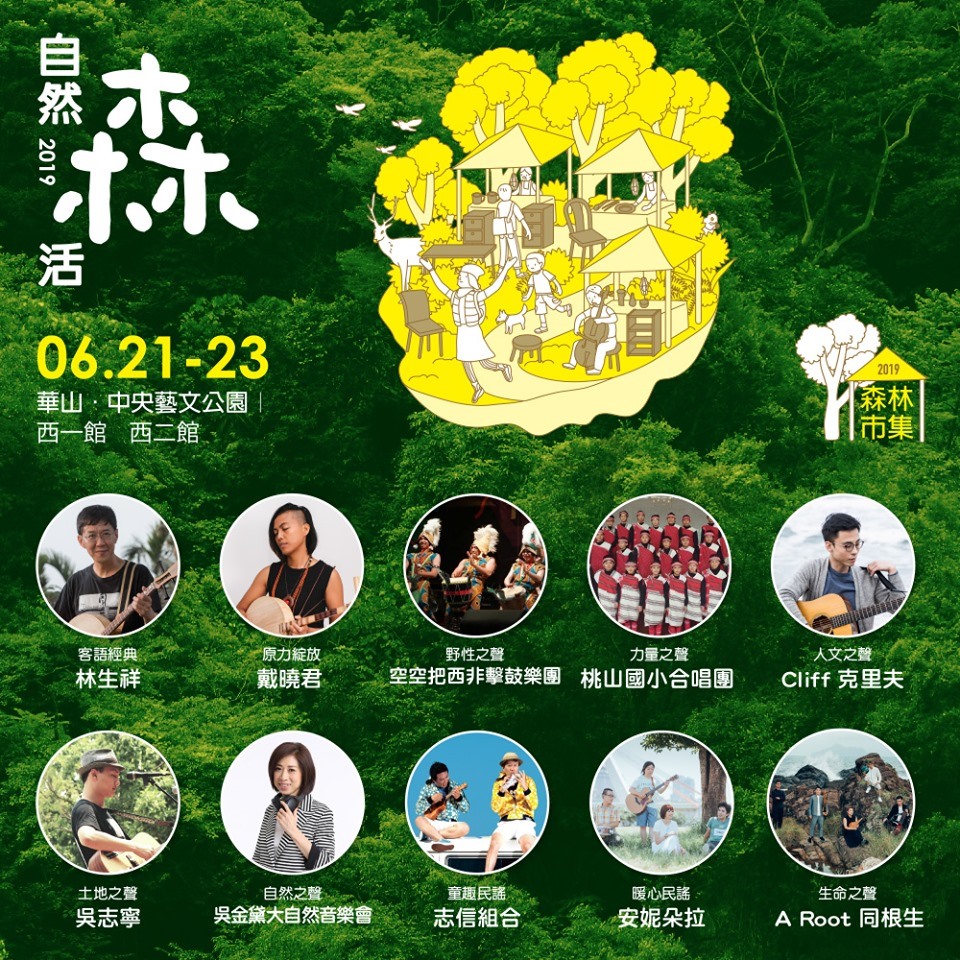 一年一度的「森林市集」邁入第三年,6月21日到23日將在華山中央藝文公園與西一館、西二館盛大展開,今年的森林市集加入了陣容堅強的自然系音樂創作者們帶來的演出,更融合五感體驗、手作課程、森林療癒,比往年更加多元豐富。主辦單位農委會林務局為了推廣國產木竹材,邀集國內優質業者展售,提供北部都會區民眾方便接觸全臺優良商家的最佳機會,活絡林業永續發展。今年市集以「自然森活」概念出發,安排七大主題聚落,集結上百家精選木竹商品、友善農產、生態旅遊等業者,更規劃8場次「森學堂」工作坊,適合全家大小一同參與,從不同角度暸解森林並體驗DIY樂趣;今年更首次結合現場音樂演出,三天10場自然音樂會,帶給民眾更精采的自然森活體驗。