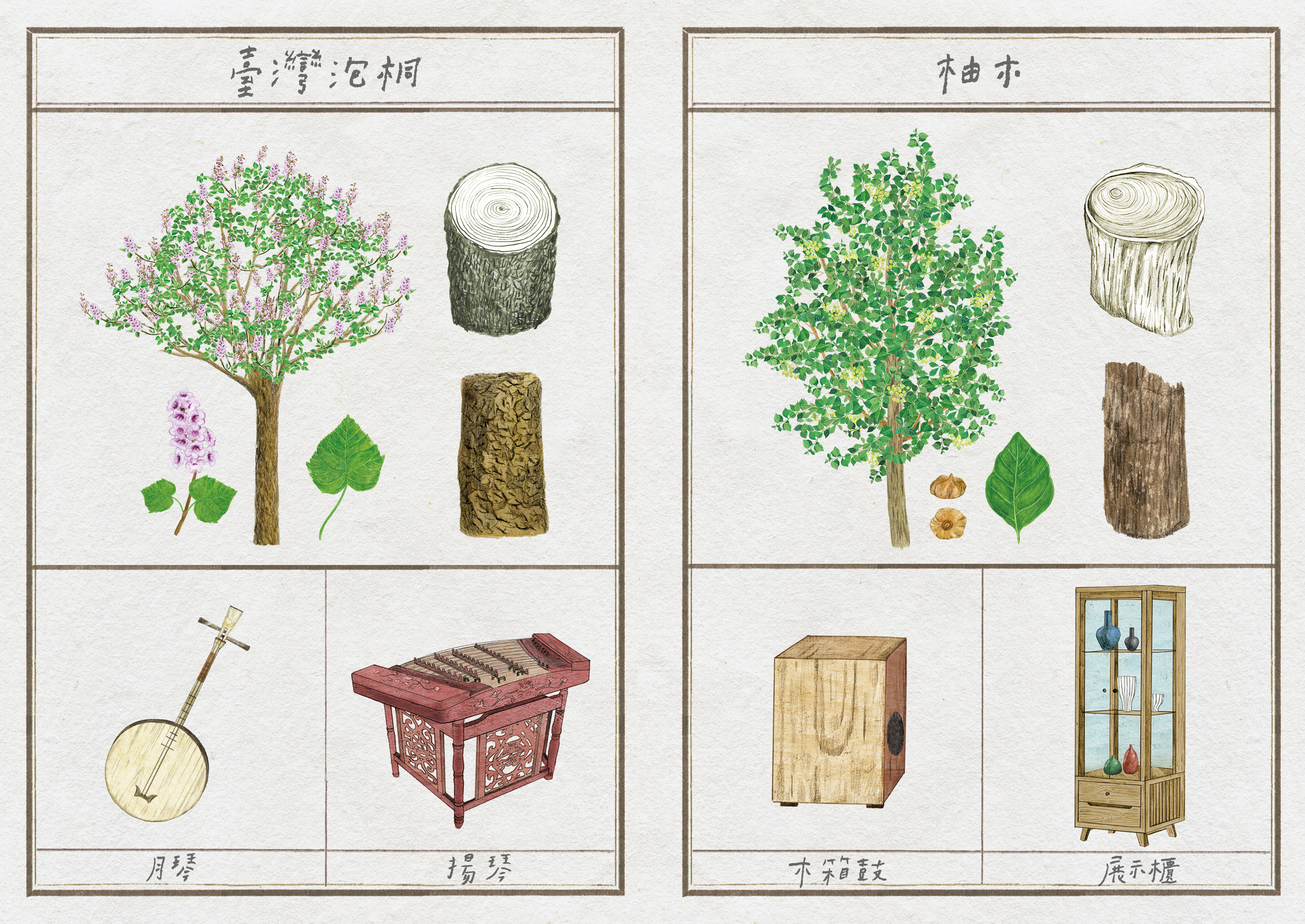 小時候玩過的陀螺、家裡廚房的木砧板、電子秤發明之前用的秤桿,知道它們是用什麼樹的木材做的嗎?許多人知道蘭嶼的拼板舟是達悟族特有的瑰寶,但可能不知道拼板舟的船首、船身、船底、龍骨等部位、甚至木釘,都分別來自不同的在地樹種。林務局今(13)日公布耗時9個月企劃製作的2020年月曆「木作之森」及同款筆記本,再度攜手種籽設計,以手繪風格呈現臺灣森林樹種與各類傳統木作器物交織的文化之美,兼具知性與感性。而且本次除了發行月曆與筆記本,更首度推出原木底座的桌曆,都將在11月14日(星期四)中午12點至11月25日(星期一)晚上24點止,於政府出版品通路國家書店及五南文化廣場網路書店開放預購!
