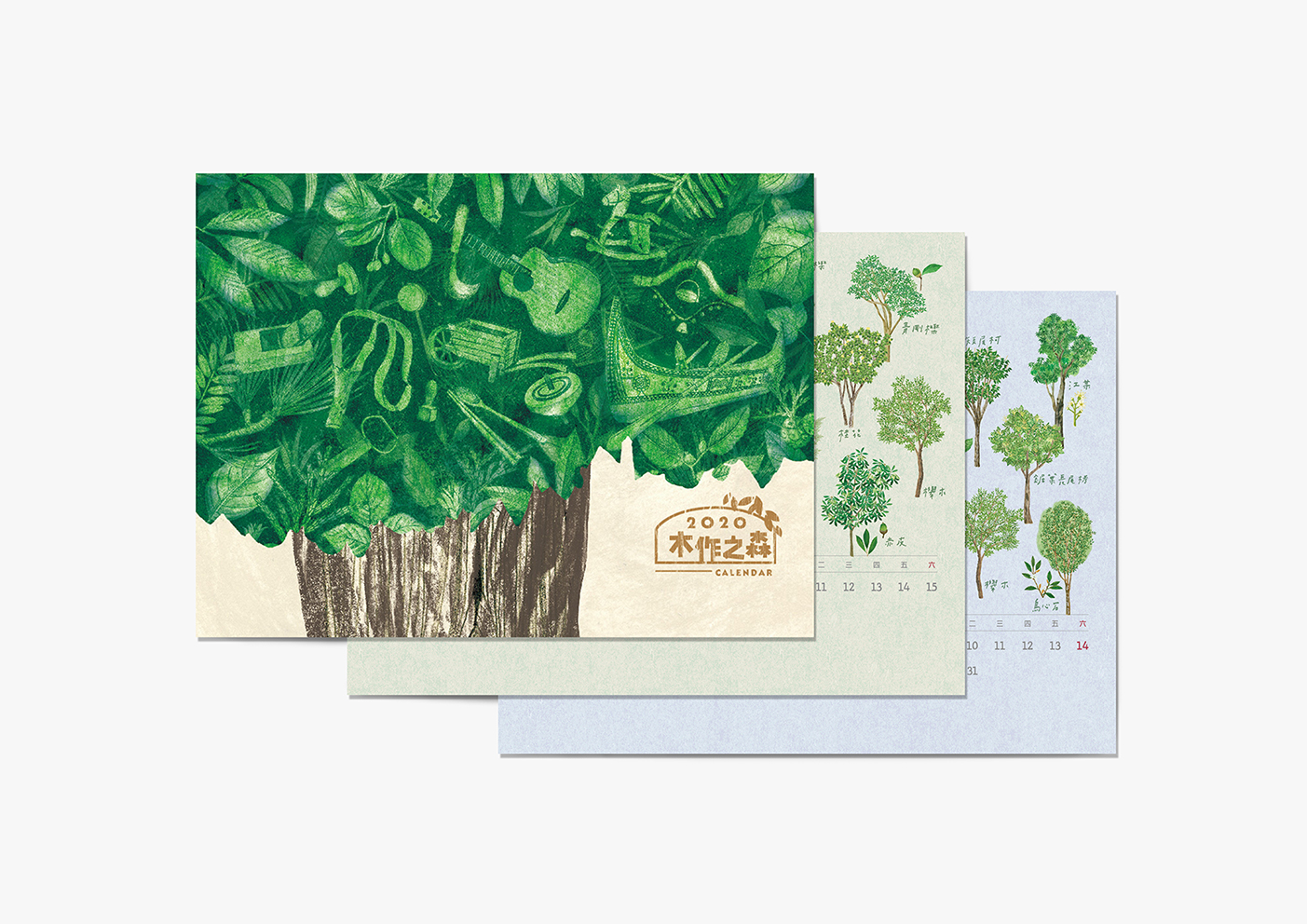 2020年「木作之森」月曆以環保紙張印製,每份定價新臺幣300元;同款筆記本運用月曆內的元素,挑選26種樹木繪出相對應的木作器物,並保留空白表格,讓大家可自由揮灑,記錄生活中的各種發現,每本定價新臺幣200元。首次出版的桌曆,除了2020年的「木作之森」,林務局也順應粉絲對過去兩年月曆主題的喜愛與呼喚,一口氣推出「飲食之森」、「里山動物」及「木作之森」3款桌曆,每份定價新臺幣300元,讓身為植物粉、動物粉、木作粉的民眾,都能買到自己心中的最愛。這次的桌曆底座皆以國產樟木製作,除了必要的乾燥等程序,不做多餘的加工,確保無毒與天然手感;等到一年過去,還可以換上風景明信片或家人合照等等,繼續讓來自臺灣森林的樟木陪伴你一年又一年。