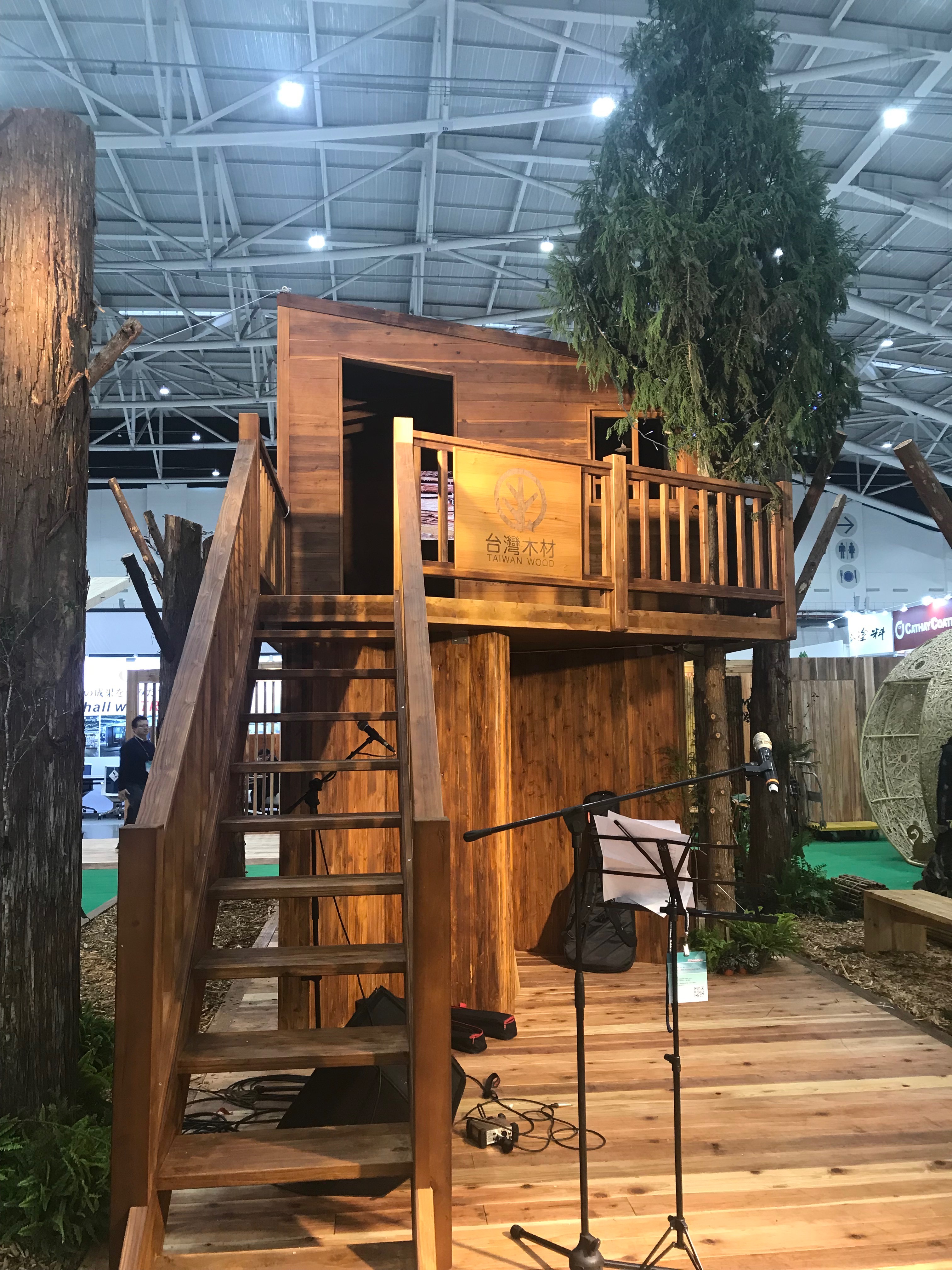 2019第31屆台北國際建築建材暨產品展(12月12-15日),林務局第三度以國家館名義參與,並擴大規模,聯手台灣大學實驗林管理處與17家民間業者,共同打造觀展亮點「國產材臺灣館」。今年參展概念延伸看見臺灣森林與人之間「生產、生活、生態」的共生共好,由柴屋策展,規劃「樹屋、杉林」高低視覺層次的設計,呈現漫步臺灣自然森林的氛圍;每一片參展的板材與構工,都是臺灣優美木竹材與精巧工藝的結合,展示國產材獨特的紋理風貌。展期首日開幕活動,更邀請兩屆金曲獎最佳客語專輯得主黃子軒搭配國產相思木吉他演唱,展現臺灣木作與藝術創作力的交融。