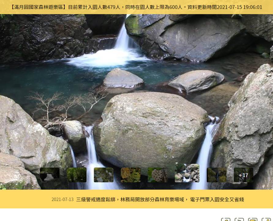 目前各國家森林遊樂區均實施總量降載管制,為便利民眾查詢入園遊客人數,林務局特別創新推出各森林遊樂區入園遊客人數即時顯示功能,只要進入台灣山林悠遊網各園區頁面,就可以查詢園區當日累計遊客人數、遊客人數上限與應注意事項。出遊前亦請準備隨身酒精、手套、口罩、塑膠夾鍊袋等防疫用品。