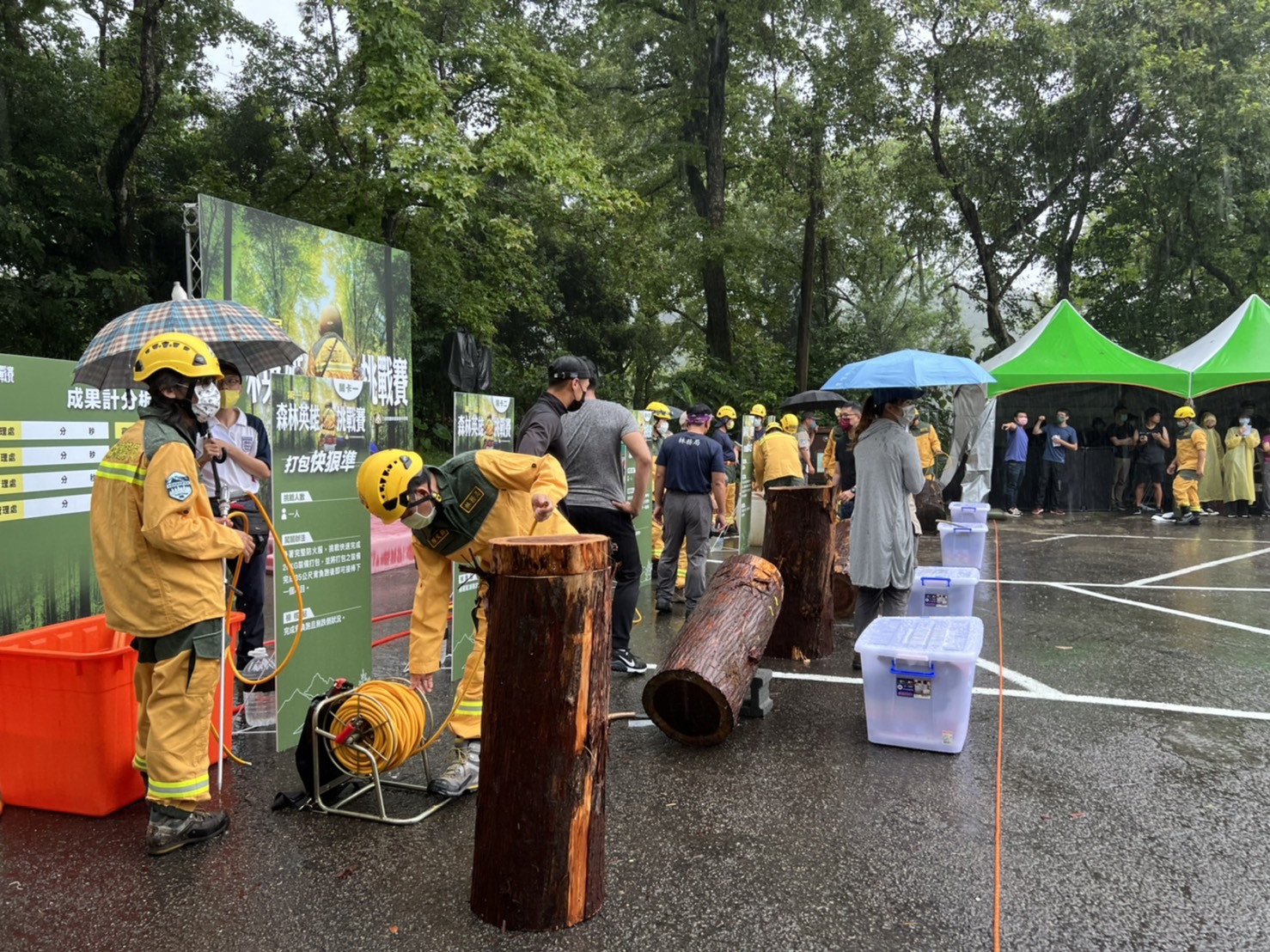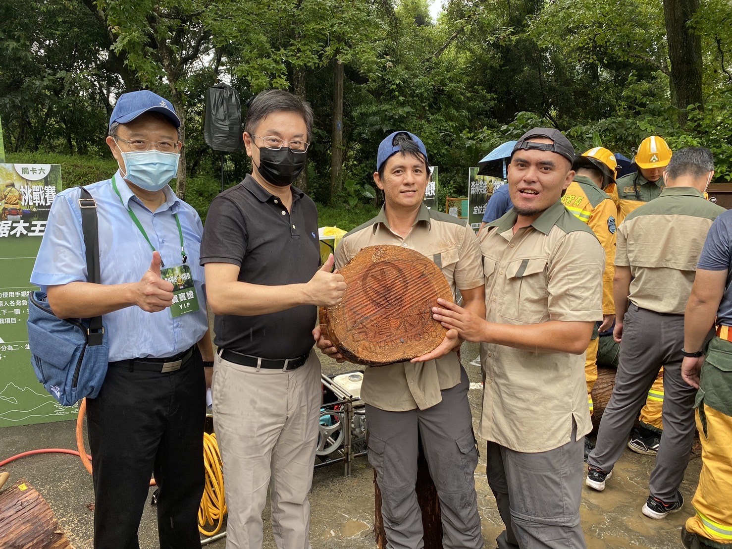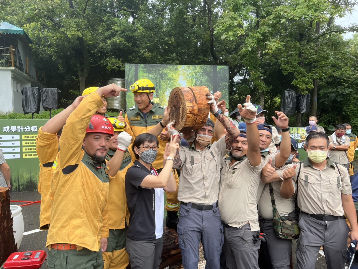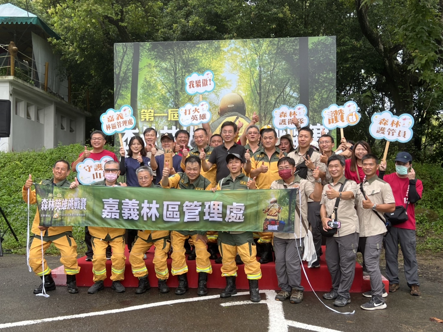 森林護管員是守護臺灣森林資源的第一線戰力,為展現山林英雄們平日刻苦訓練的成果,林務局今(111)年特別選在7月31日「世界巡護員日」隔天舉辦首屆森林護管員專業技能競賽,今(8月1日)在東勢林場熱鬧登場。除了藉此肯定、砥礪全臺森林護管員的專業能力,也向社會大眾展現森林保護的重要性,讓民眾了解護管員的實質工作內容,更帶來護管員之間彼此交流學習、提升專業知能的動力,強化守護山林的基石。 林務局長林華慶表示,森林護管人員的工作常被社會大眾誤會為可以恣意遊山玩水的「爽缺」,但其實他們的工作非常辛苦,除了工作環境需要忍受蜂螫蟲咬、惡劣天氣、與家人分隔兩地,還需提防動物攻擊、山老鼠、山崩等帶來的威脅,平時也必須熟稔政策規定、山野知識,熟練森林護管專業技能,才能真正守護臺灣森林資源、體現服務全民的精神,稱得上允文允武、精通十八般武藝。而森林護管人員也並非全都畢業自森林相關系所,常有各行各業的社會人士,像是退役軍人、資訊技術人員、工程師、攝影師等,基於對山林的熱愛、守護自然的熱情,而投身報酬低於原本薪資的森林護管工作,加入默默守護山林寶藏的森林護衛隊。 今日專業技能競賽由林務局轄下8個林區管理處各組成一支隊伍,接力完成滅火接線、滅火投水、鋸木等一系列護管工作中出任務很可能用上的技能,每一項都達到檢核標準並最快接力完畢的隊伍獲得優勝,過程不但充滿趣味與張力,也實實在在地考驗所有參賽者的基本功。 林務局指出,每年7月31日是世界巡護員日,林務局往年都會在這別具意義的節日,規劃相關活動向森林護管人員們表達感謝,而今年7月31日適逢周日休假,為了保障同仁們短暫的休息時光,因此順延一天舉辦,除了表達對森林護管人員的肯定,更以輕鬆、活潑的方式向大眾展現平時紮實訓練的成果,並期望藉由活動增加各地森林護管人員的交流、累積團隊情感及默契,讓守護山林的力量更有溫度。