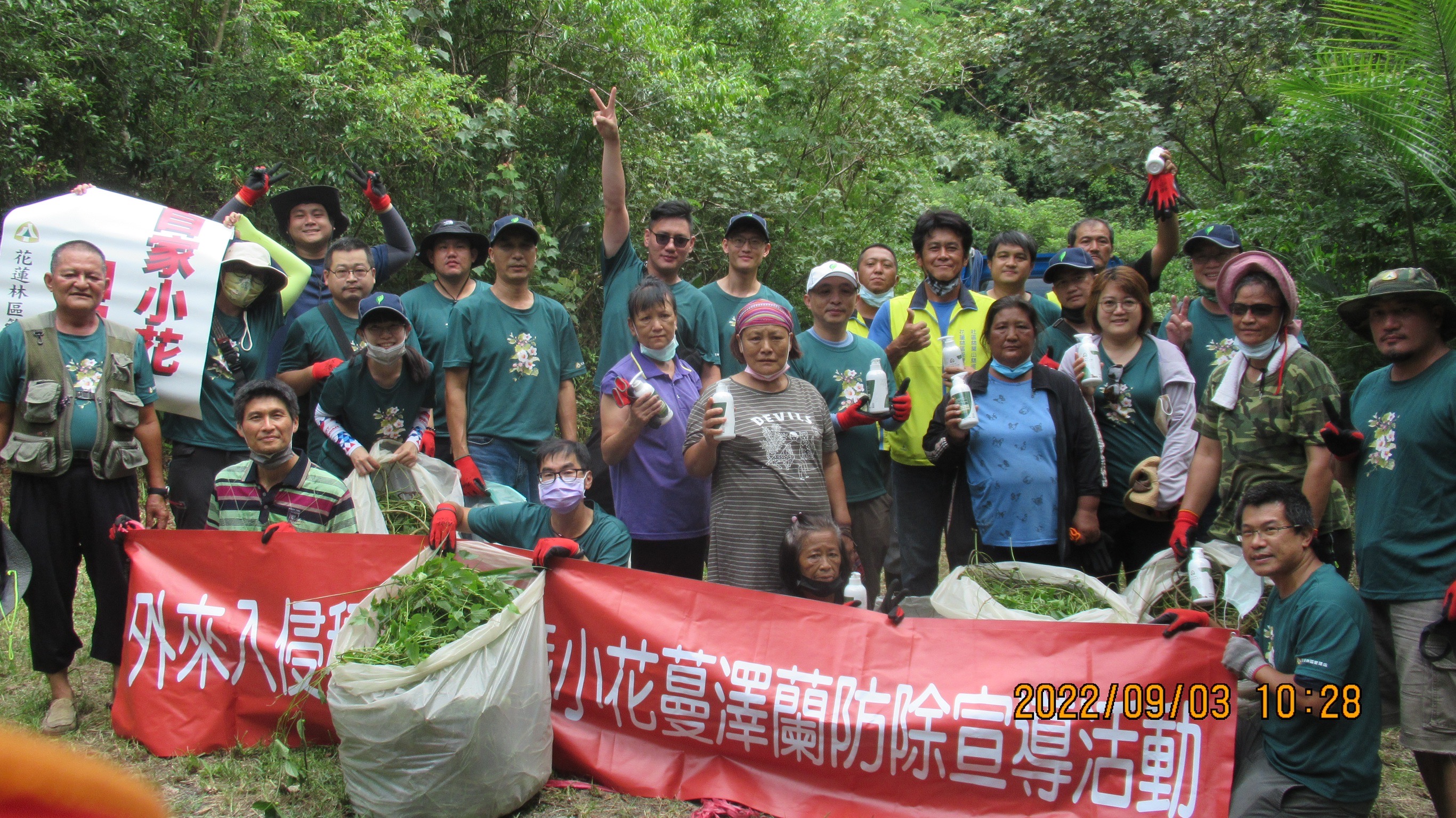今天(9月3日)是一年一度「小花蔓澤蘭全國防治日」,行政院農業委員會林務局與南投林區管理處同仁偕同經濟部水利署第四河川局、國立臺灣大學生物資源暨農學院實驗林管理處、南投縣政府、鹿谷鄉公所、學校師生及社區居民等計300人,在南投縣立瑞峰國民中學,參與「守護我們的家園!蔓蔓來,快快除~」除蔓宣導活動,讓民眾認識小花蔓澤蘭的植物特性及防治移除之重要性,並展示小花蔓澤蘭多元創新利用產品。林務局各林區管理處亦同步於臺北、苗栗、臺中、台南、屏東、臺東及花蓮等縣市,與政府部門、企業及民間團體等攜手舉辦8場次小花蔓澤蘭防治宣導活動,邀請民眾共同參與小花蔓澤蘭防治及剷除行動,共計有1,180人參加,剷除小花蔓澤蘭共計4,016公斤,一同為保護臺灣生態環境共盡心力。 林務局表示,政府每年投入許多經費及人力防治外來入侵植物─小花蔓澤蘭,據行政院農業委員會特有生物研究保育中心110年底監測調查資料顯示,國內小花蔓澤蘭分布面積已由90年51,852公頃減少至3,392公頃,蔓延面積已有大幅抑制,顯見防除成效良好,但小花蔓澤蘭繁殖及傳播能力極強,仍須持續不斷防除,以避免再度蔓延。 這個「環境生態殺手」—小花蔓澤蘭,也能發揮多元利用價值,林務局透過學術單位及產業團體的研究與開發,將小花蔓澤蘭製成環保酵素,使用在各類居家清潔用品;小花蔓澤蘭炭化,結合天然資材,產製「小花蔓澤蘭炭」薰香及炭皂;加熱提煉小花蔓澤蘭醋液,做為防蚊噴液、土壤改良和植物病蟲害防治等用途;並做為植物染的天然染料,運用各式素材製作特殊花紋的小方巾或飾品,因此,除蔓不僅能保護生態環境,也帶來綠色循環經濟之附加價值。 小花蔓澤蘭全國防治月(111年8月15日至9月15日)期間,民眾可透過林務局全球資訊網和「林務局-森活情報站」臉書粉絲團林務局各林區管理處各項相關活動訊息,亦可至林務局自然保育網小花蔓澤蘭專區查詢小花蔓澤蘭收購及宣導活動時間與地點,及電子DM等相關資訊,或洽各林區管理處及工作站,歡迎全國民眾同心協力除蔓,共同維護臺灣生物多樣性、原生種植物和樹木生存環境。