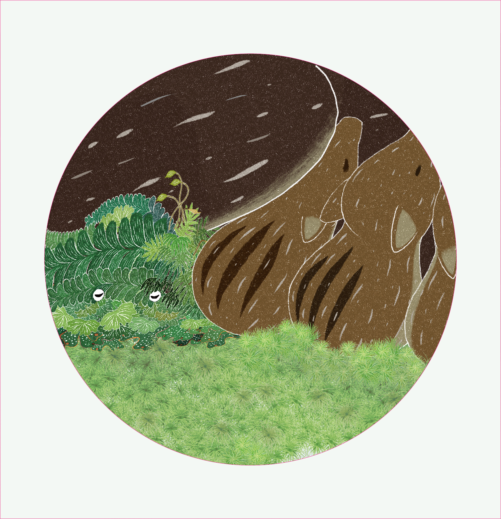 《苔蘚兄妹》故事描述原本住在海洋的苔蘚兄妹嚮往著陸地,勇敢前往森林,在過程中遇見森林裡形形色色的夥伴們,展現溫暖的互動,也在賽夏族成年禮考驗的過程,與賽夏族少年有了命運的交會。