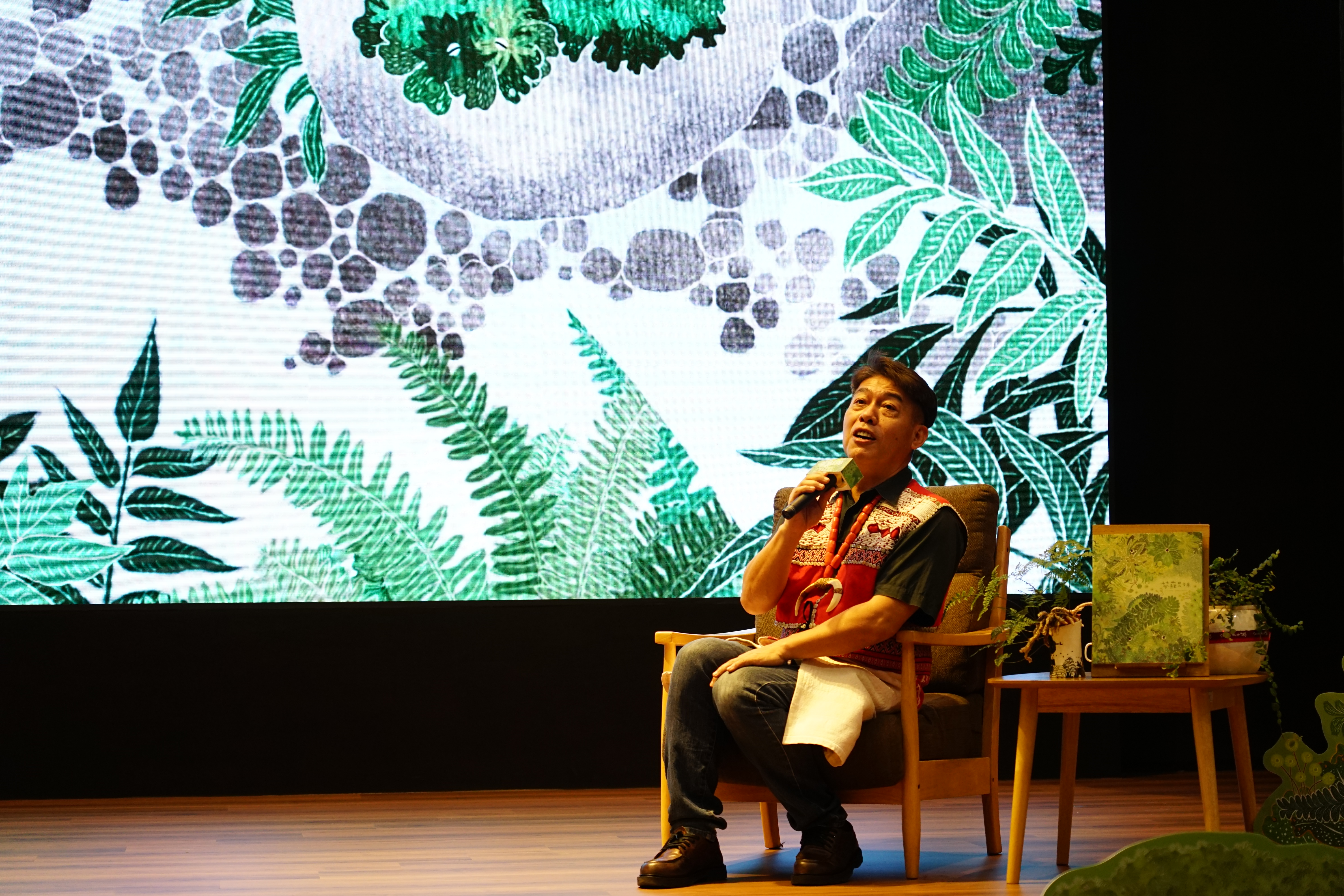 新書發表會特別邀請根誌優長老,講述這個奇幻、冒險又動人的口傳故事,藉由長老深具魅力的敘述,帶領大家以苔蘚兄妹的視角步入森林,感受森林的空氣流動、潮濕溫暖的氛圍,也跟著賽夏少年忐忑不安地走進山林的考驗。根誌優長老表示,森林中不是會走動的才有生命,所看到的都有生命,不論是人、動物、植物,每個生命體都相互依賴、相互受惠。賽夏族的孩子,世代都要敬畏山林,尊重生命,要懂得如何共生、共存,永續山林,這也正是《苔蘚兄妹》所要傳達的精神。