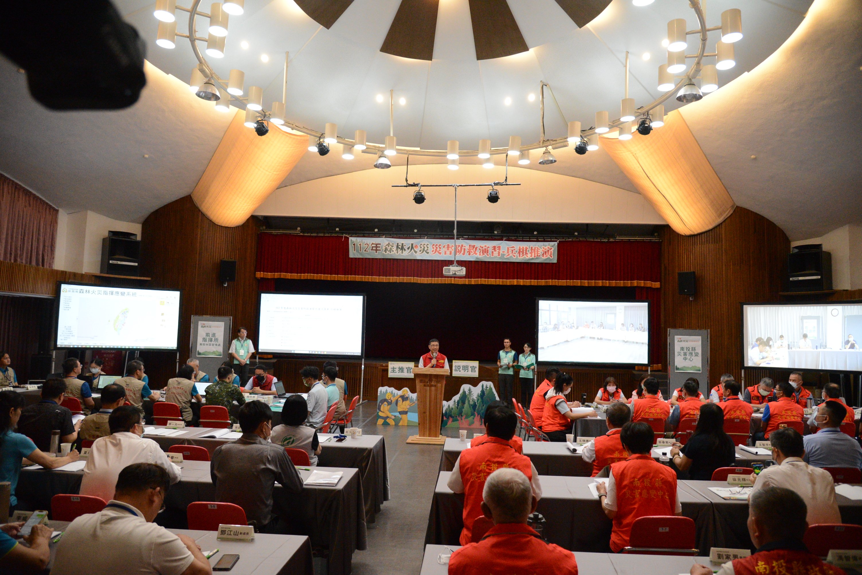 為強化災害防救動員及應變能力,行政院農業委員會與南投縣政府於112年6月9日聯合中央與地方、空勤、警政、消防、觀光、交通、衛生醫療等單位,在南投縣日月潭辦理「112年度森林火災災害防救演習」,透過兵棋推演及實兵操作,強化各單位橫向協調、民眾避難收容作業機制,並檢驗政府部門整體突發狀況應變能力。