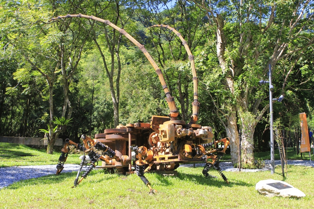 啟用活動亮點是位於原子炭工廠周邊的景觀工程,透過藝術家巧手,將昔日林業機具拆解再重新組合,化身為巨大昆蟲,機甲昆蟲闖關遊戲更增添活動趣味性,讓大小朋友在遊戲中獲得樂趣,讚嘆這些巨大機甲昆蟲宛如變形金剛般震撼。