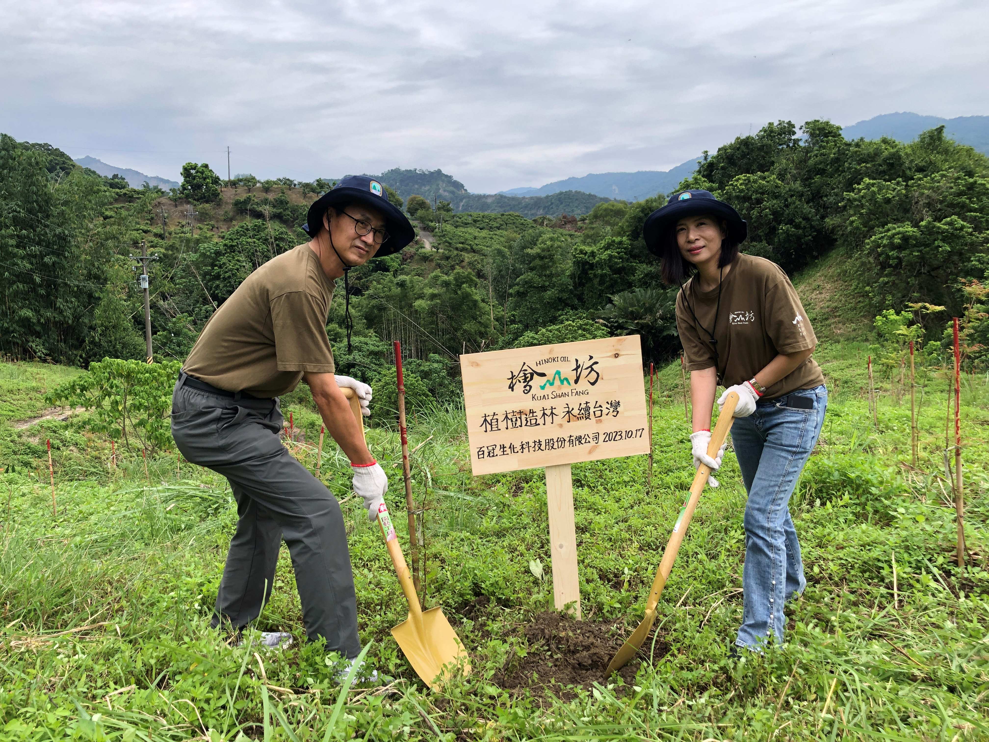 為支持檜山坊「取之於林用之於林」的精神,農業部林業及自然保育署嘉義分署秘書鄭鈞謄今(17)日與檜山坊創辦人黃素秋、總經理李清勇等人,在該公司今年度捐款贊助的臺南市南化區國有造林地刈草除蔓並豎立認養牌誌,以行動永續臺灣”森”命力。