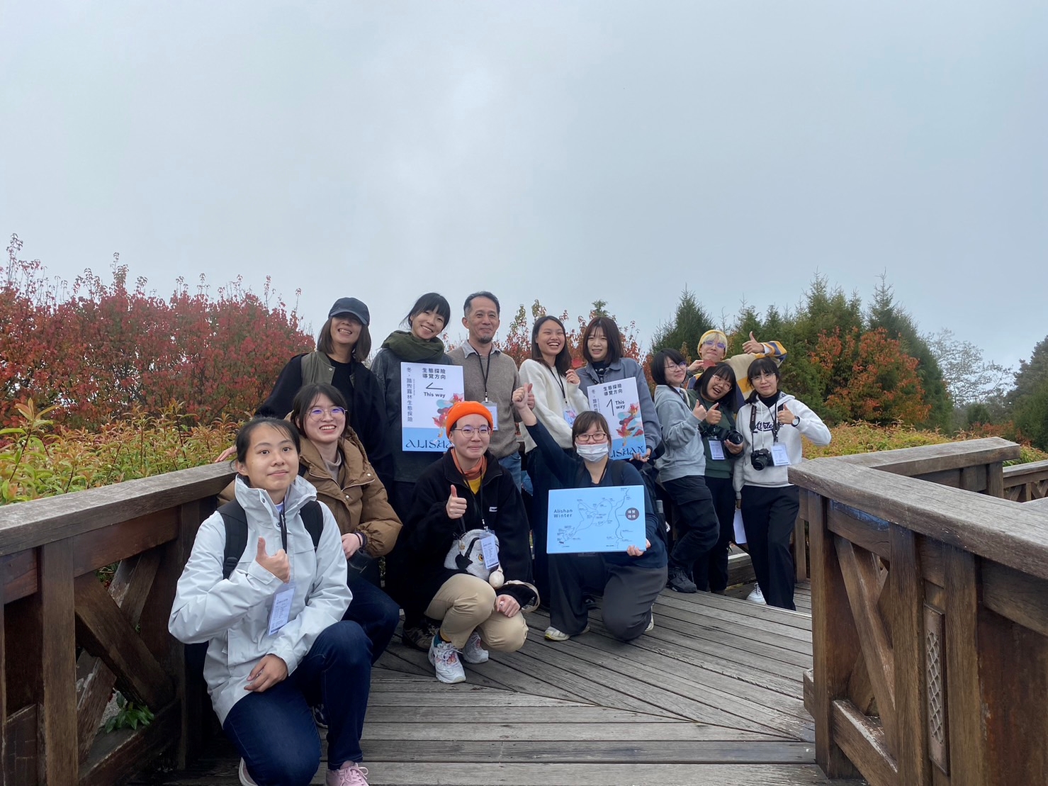 此刻的阿里山除了楓紅,更是雲海的季節,由於氣溫微涼,地表水氣蒸散沿山上升,攀至高空遇冷空氣凝結成雲,層層聚積的雲團形成波瀾萬千的壯麗雲海景觀;而阿里山社區導覽解說員是由在地居民組成,歷經長期培訓及通過考核後,由林業保育署嘉義分署授證成為在地優質的解說員。在這裡由在地人說在地故事,讓阿里山百年歷史透過解說員傳達給遊客最動人的故事。本次活動特別安排解說員在這個美麗的季節,帶領遊客探索阿里山的自然生態,解放身處都市叢林的壓力,讓身體與心靈回歸大自然。