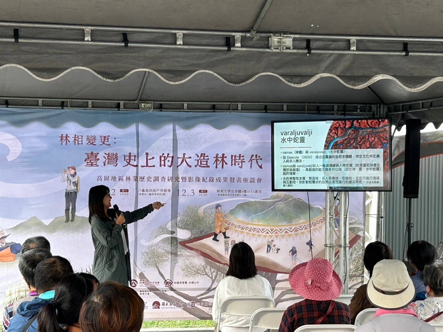 屏東場民眾發言踴躍,對這段陌生的林業歷史非常好奇,洪老師也回應當時的政策有達到一定程度的目標,也交流當時政策對森林環境的影響,也有民眾分享參與林相變更的不只是原住民,當時屏東的農民小孩也有被帶到楓港從事燒木炭及造林工作。
