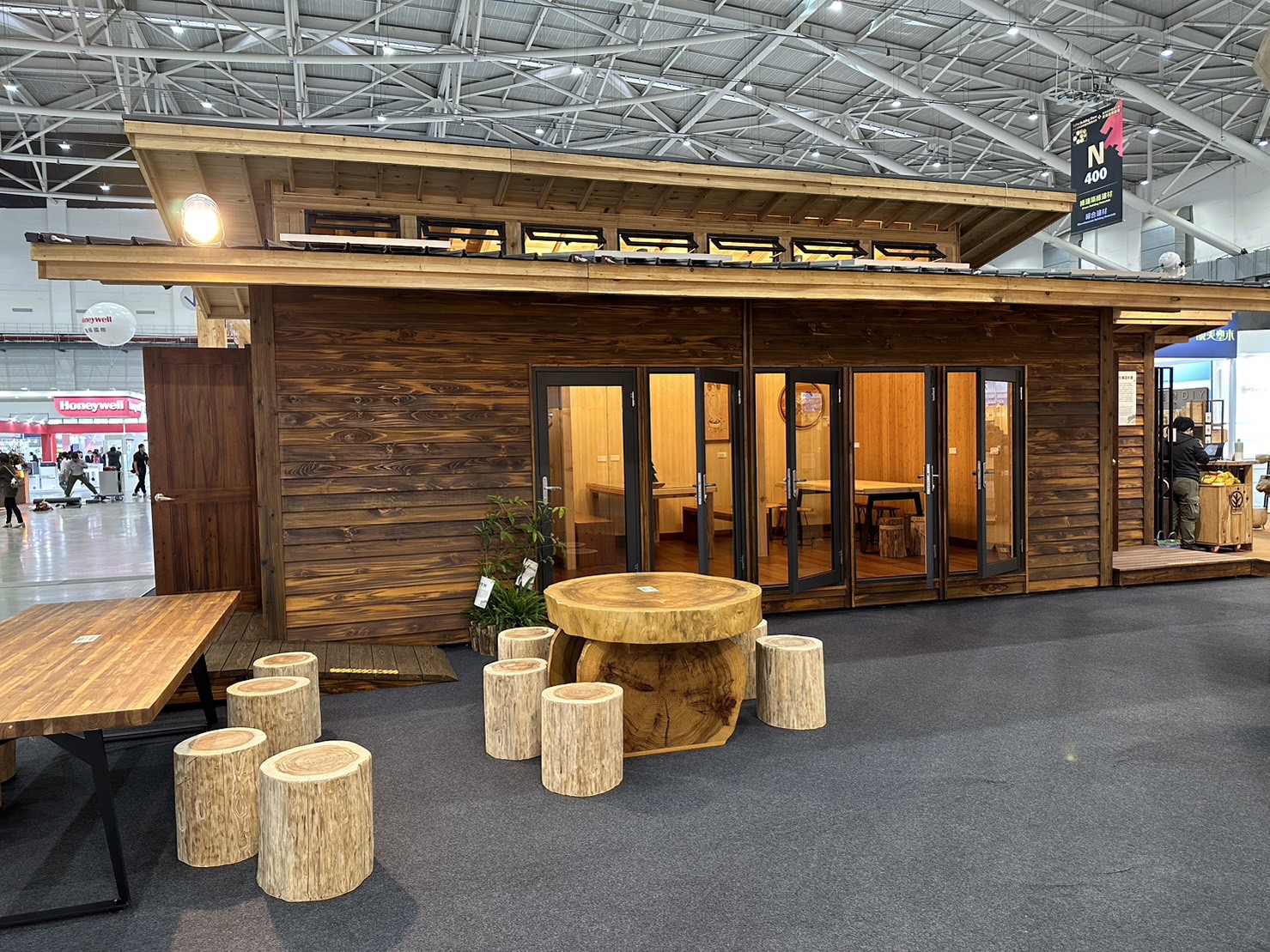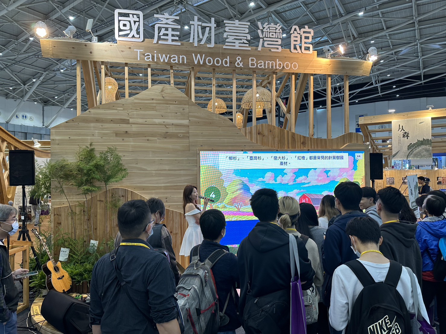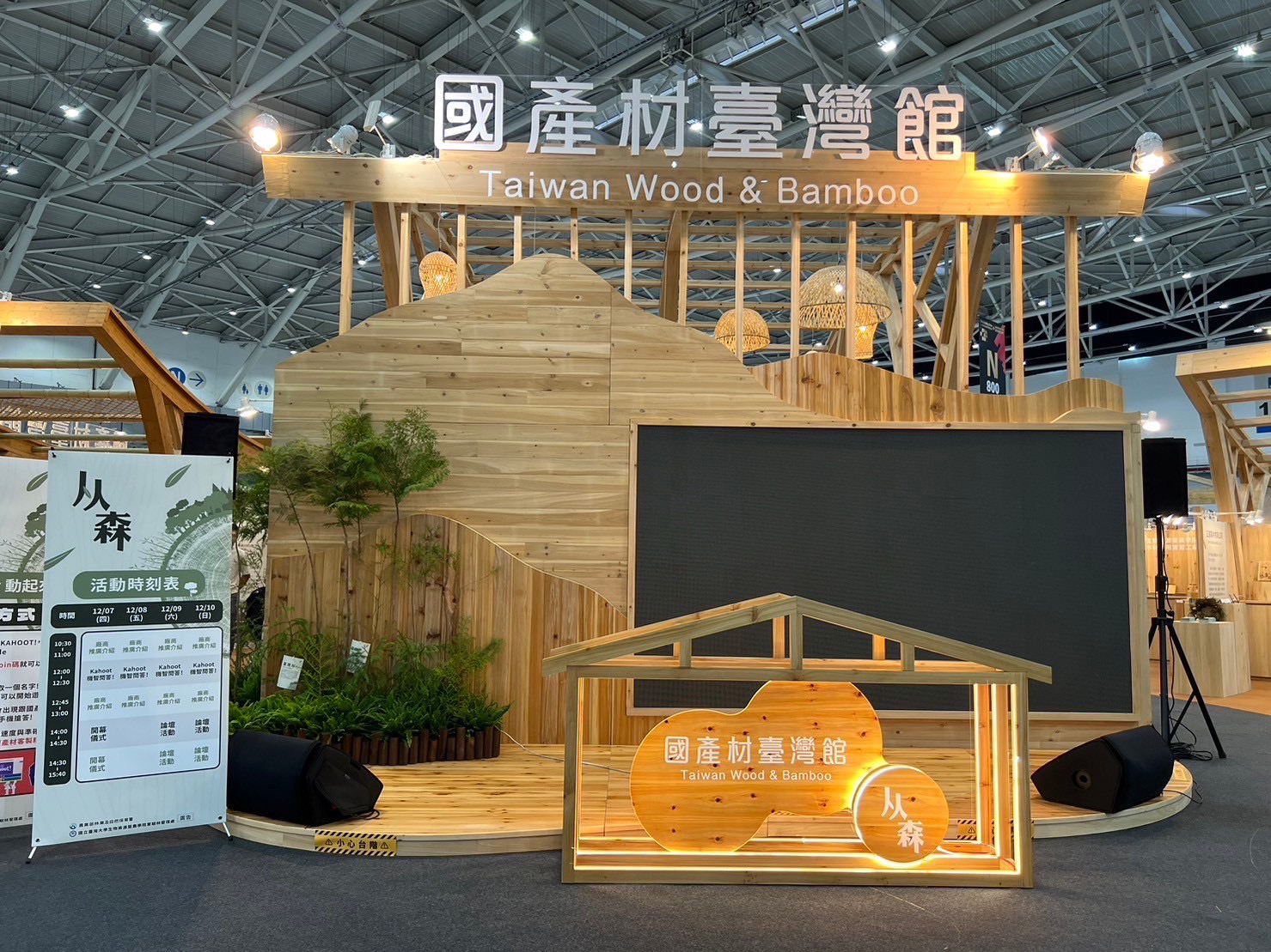 本屆臺灣館設計以自然特色為主題,主結構以樹木為靈感,運用國產柳杉、杉木等木集成材及木集成材貼合國產竹集成材打造而成,現場還展示以框組壁式工法及混合不同木竹材料建造的新式竹木混構「Tiny House」,並運用國內多家國產材廠商所製作的家具,營造貼近生活的居家環境,另外還展示樹洞基地—木積木溜滑梯,讓大家從生活及育樂中體驗充滿國產材氛圍的空間,體會國產木、竹的獨特美好。