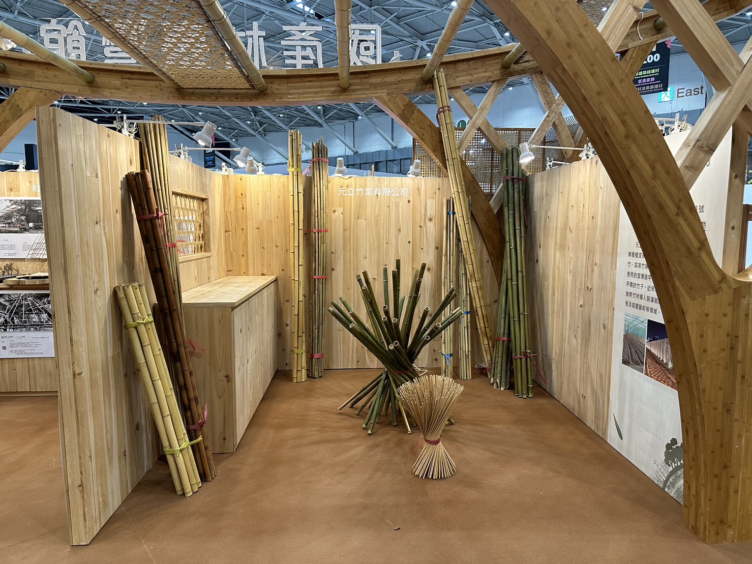 本次國產材臺灣館整體架構(包含木竹構框架、牆壁板、木竹構木屋、展示櫃、舞臺等)使用柳杉、杉木、孟宗竹、桂竹等負碳資材,使用約45.85立方公尺的木竹材材積,並將1萬2,000公斤的碳固定在展場的建材中,這些負碳資材將在展覽後繼續重複利用,讓碳長期保存在資材中,藉以發揮木竹材料在建築、室內裝修領域的優勢與環保意涵。