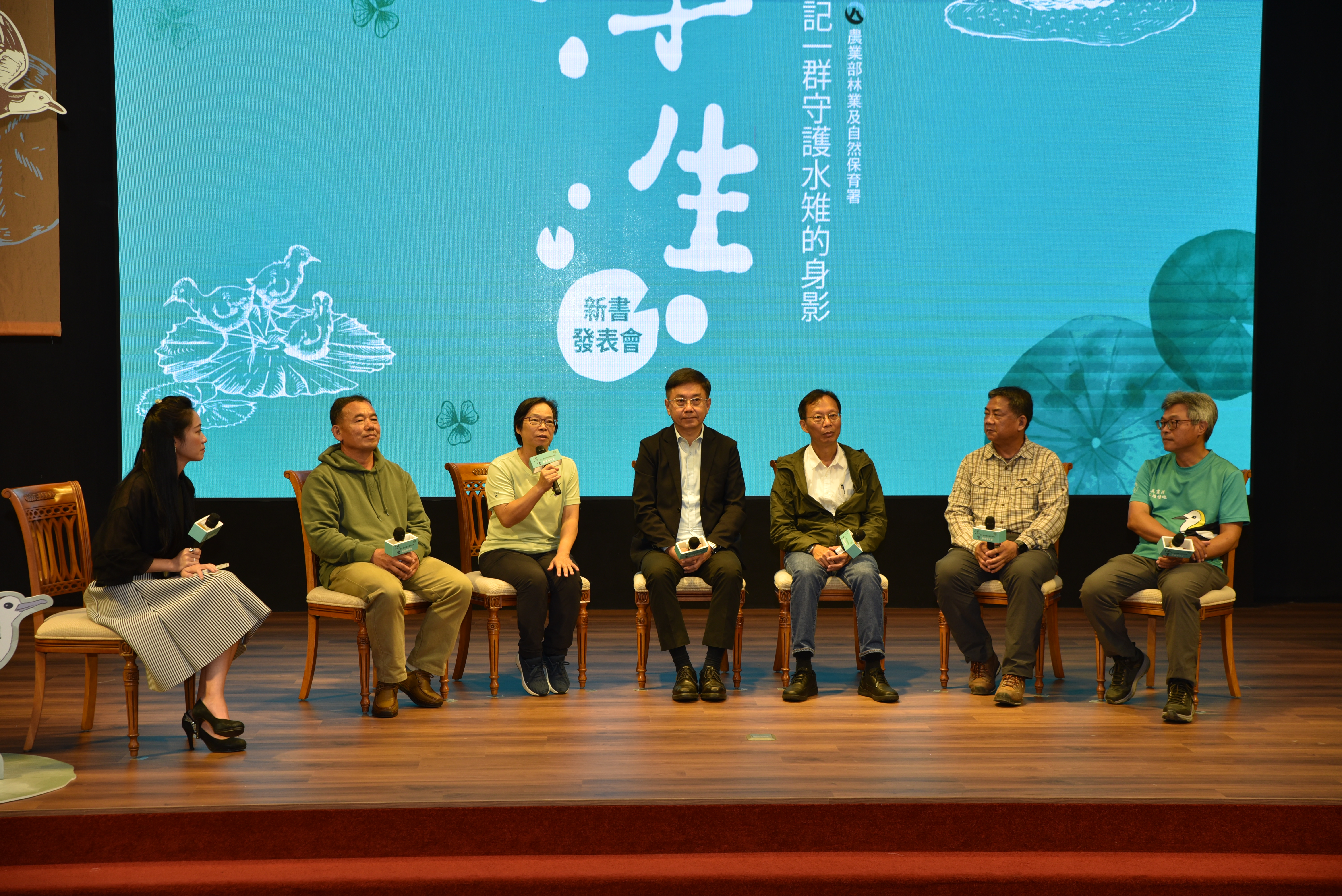 新書發表會中除了播放作者的導讀影片外,更邀請書中多位參與水雉保育的夥伴現身說法,包括林業保育署林華慶署長、財團法人慈心有機農業發展基金會蘇慕容執行長、水雉生態教育園區李文珍主任、高雄野鳥學會林昆海總幹事、臺南社區大學吳仁邦專案經理及官田菱農林丙火先生,現場一同分享他們與水雉保育的淵源。