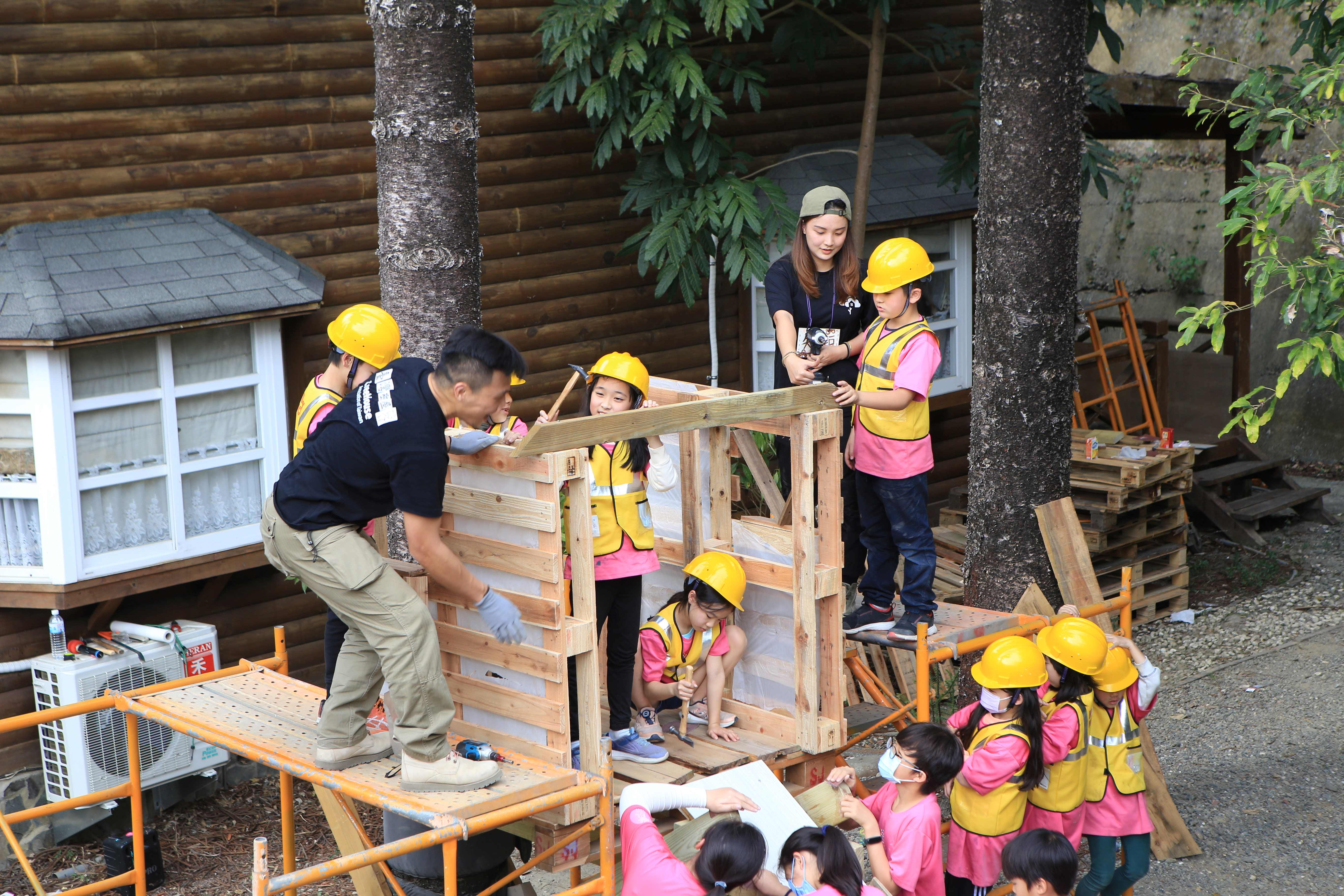 課程搭建遊具使用的建材木料來自臺南市文資建材銀行,建材銀行是將舊材留存、建檔、媒合,提供建築物拆除後的建築舊材獲得再次利用的契機,賦予廢棄舊建材新生的機會。學員在三天二夜的課程中將能體驗綠色低碳排放的生活模式,認識森林作為乾淨再生能源的潛力,學習碳足跡與木材碳匯的關聯性,思考能如何做到零碳排的生活,並在日常中運用修復使用(Repair)技能,延長物品壽命,讓生活能夠更永續,為兒童節假期留下難忘回憶。