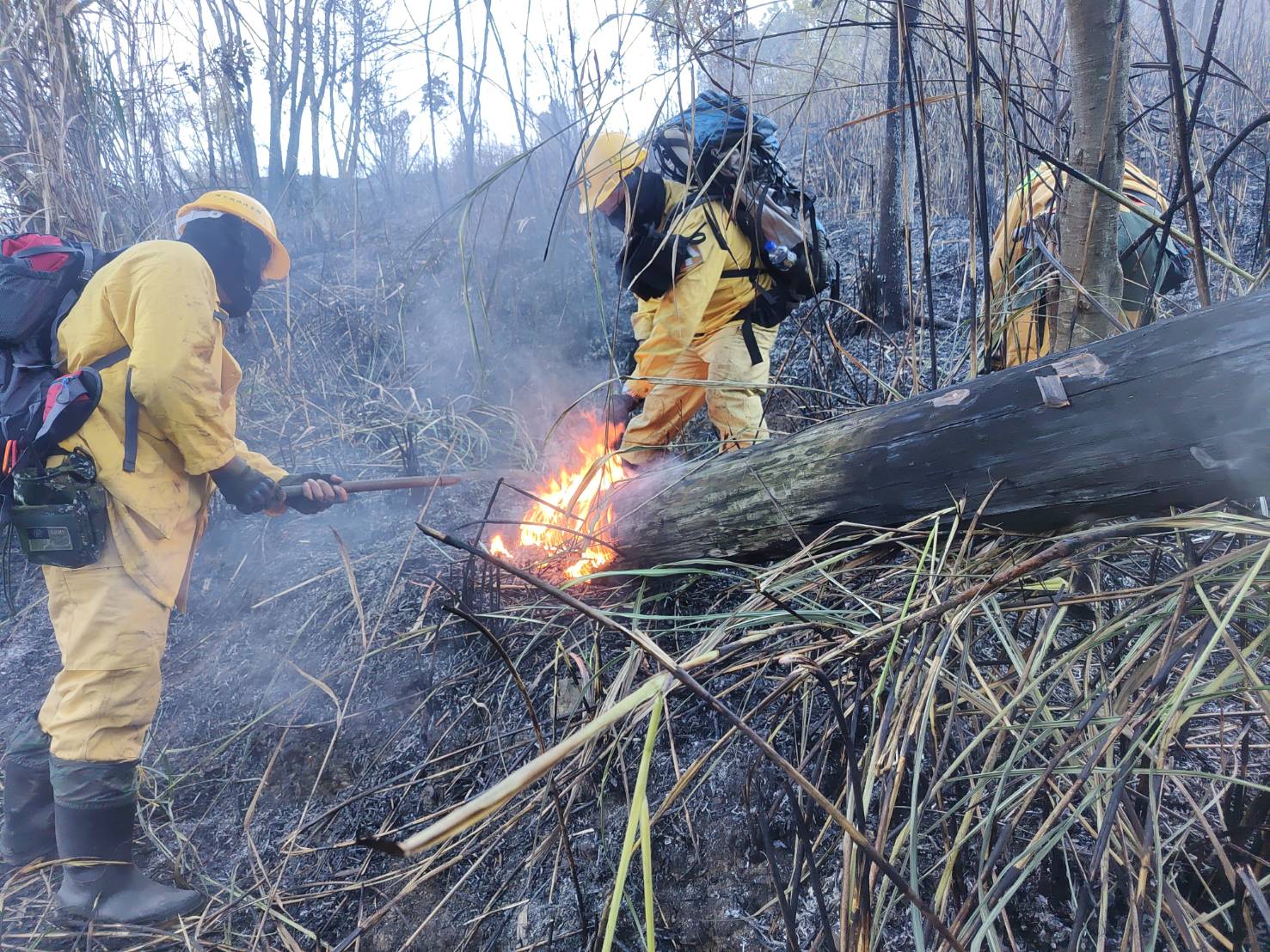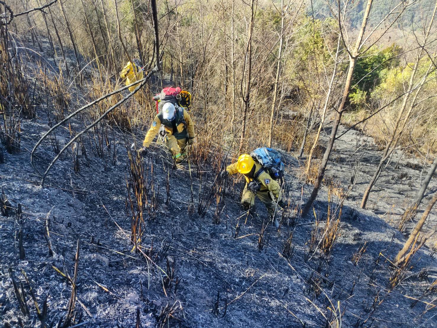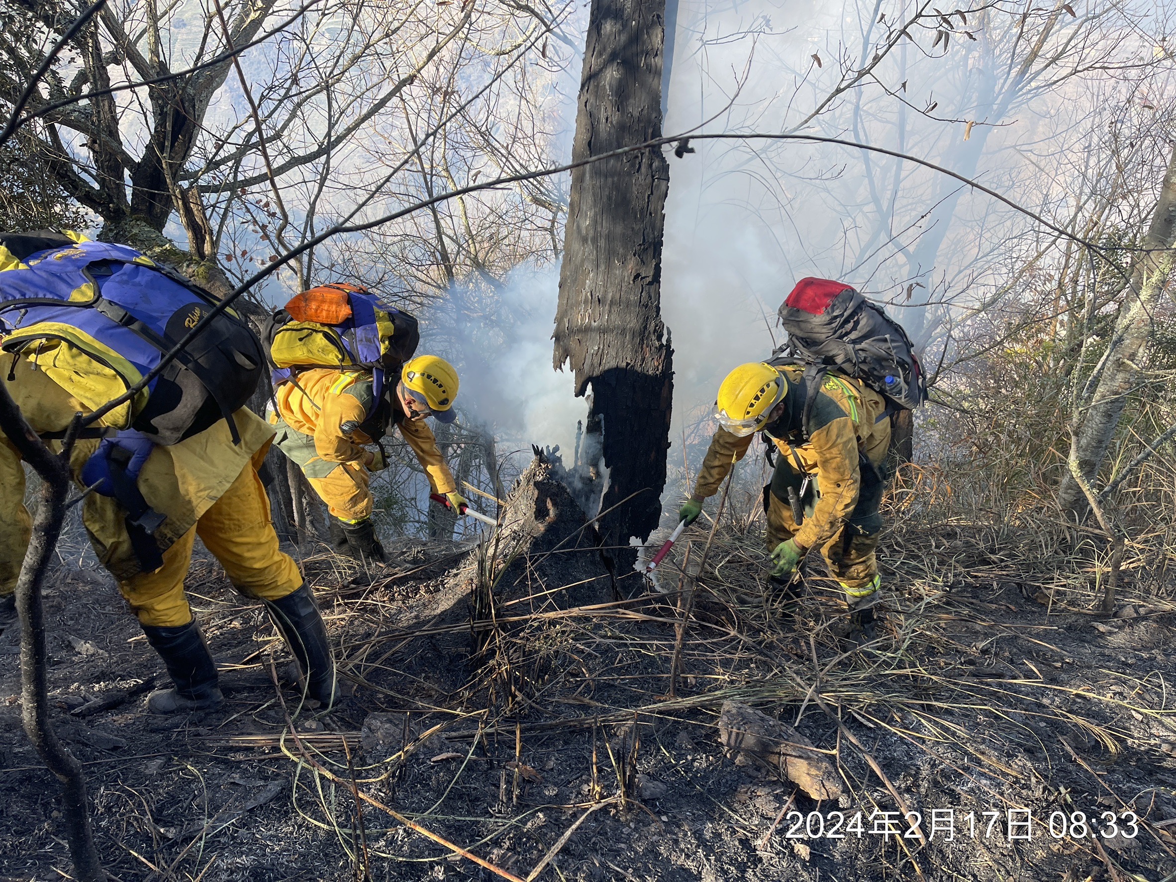 昨(2/16)日深夜,林業及自然保育署臺中分署接獲臺中市政府消防局通報,臺中市和平區梨山地區大甲溪事業區第66林班地傳出森林火災,林業保育署臺中分署立即派員勘查,因夜間山區視線不佳,搶救不易,故於今(2/17)晨5時立即集結人力前往滅火,現已動員47人進行滅火作業,同時申請空中勤務總隊直升機進行空勘及空中滅火作業,目前延燒面積初估約6.3公頃。 林業保育署臺中分署表示,火災現場為造林地及針闊葉樹林,雜草繁多,輕質燃料充足,因此火勢較為猛烈且有多處煙點,該分署已啟動森林火災搶救機制,成立火場指揮所觀測火情及調度指揮救火作業,並集結森林護管員涉水過合歡溪,步行約2小時抵達火場,目前森林救火隊已達現場進行地面直接滅火,阻絕火勢擴展,同時空勤直升機已出動進行空中灌灑作業,每次吊掛2公噸的水,已投水5次,陸空攜手期能儘速撲滅森林火災。 林業保育署臺中分署表示將持續全力搶救,早日撲滅火勢。同時提醒大家,依據森林法第53條規定,放火燒毀他人之森林者,最高可處10年有期徒刑,失火燒毀他人之森林者,最高可處2年有期徒刑,且除負刑責外尚須負民事賠償責任,呼籲民眾注意用火安全,共同保護珍貴森林資源。
