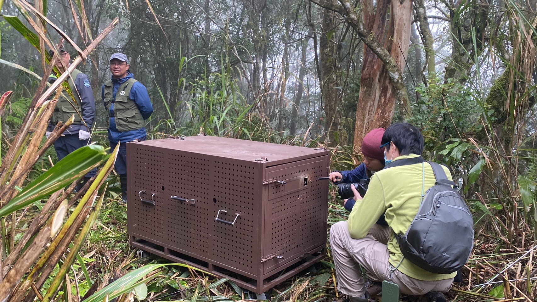 去(112)年8月底,臺東縣海端鄉紅石部落族人在產業道路旁的樹叉上,發現受困套索的臺灣黑熊,在林業及自然保育署臺東分署、野灣野生動物保育協會及部落族人救援脫困後,經近7個月的專業醫療照養,復原情形良好,評估健康無虞,今(14)日在飄著薄霧的山林中,部落族人在籠邊輕輕的呼喚Lanihu(拉尼琥),以救援者族名命名的臺灣黑熊,伴著祈福與歡呼聲,順利野放重返山林。